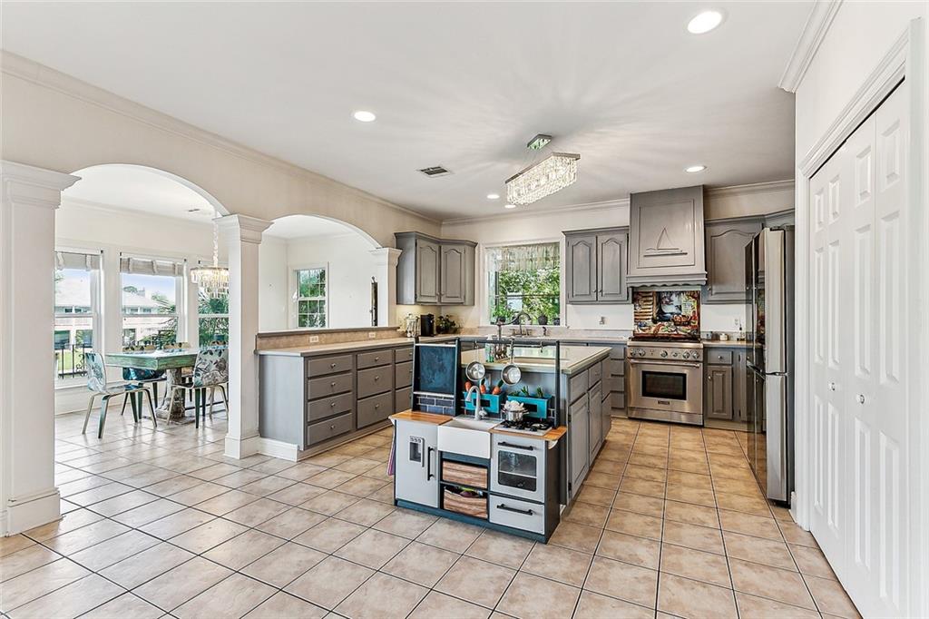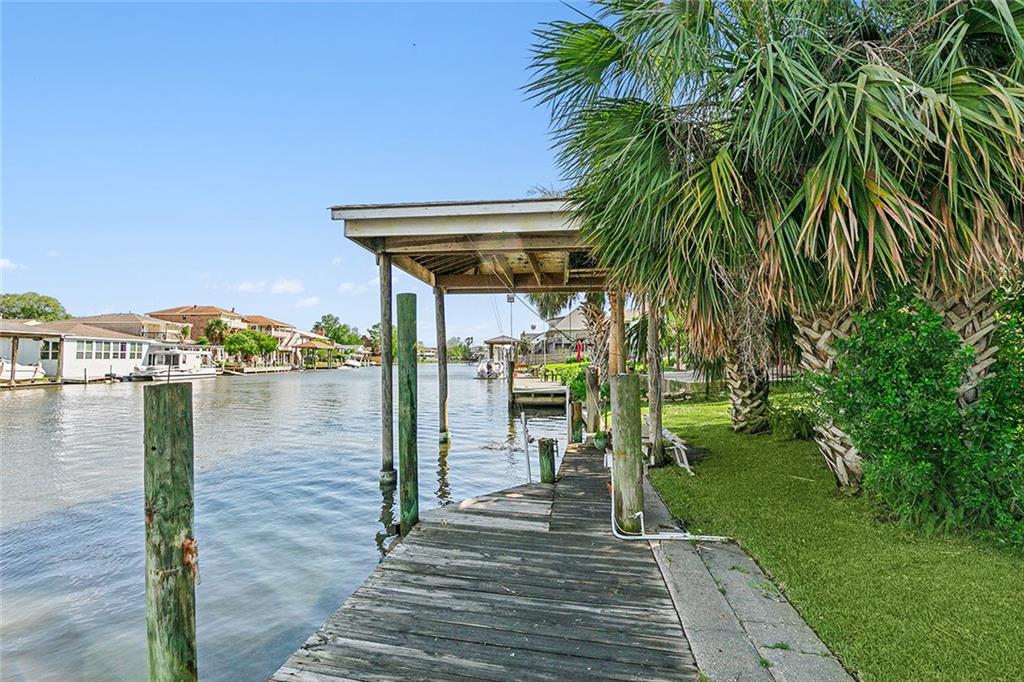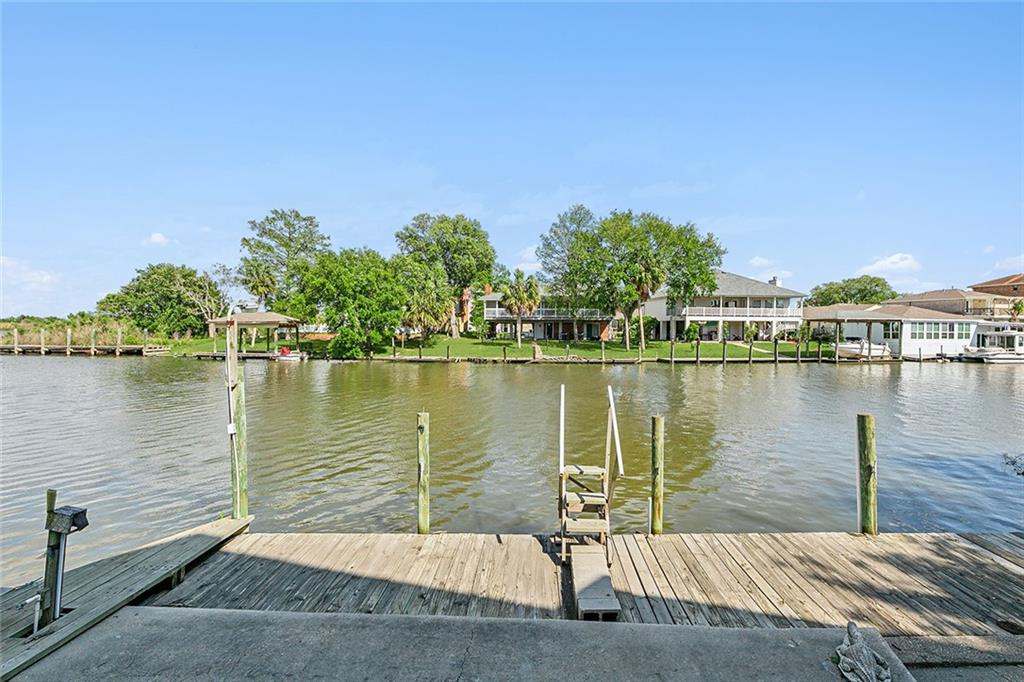 Located in a must see to believe waterfront community just 25 minutes from downtown New Orleans and 26 minutes from Slidell, this property offers the perfect mix of tranquility and accessibility. This carefully cared for Venetian Isles home is situated on two lots with a huge deck, an updated seawall, a boat lift and docking area - you are literally moments to Lake Borgne and the Intracoastal Waterway from this deck. Tremendous fishing, bird watching, kayaking and more, at your door step. This raised Acadian home features oak hardwood floors in the living spaces and stairway, three bedrooms, three and a half bathrooms (two with bathtubs), a sprawling kitchen in the main living space, and another kitchen downstairs facing the covered patio, deck, and water view from every room. Lower level also features a woodworking shop, multiple covered secured parking spaces and a pull thru garage. High-end updated stainless steel appliances including a smart fridge, Thermador gas range & dishwasher, a microwave and smart washer and dryer included with the sale. Electric elevator lift opens inside the home for easy living, has a 500 pound cargo rating. Yard is plush and includes fig, pomegranate, grapefruit and pear trees, grape vines, two rose arbors, and jasmine plantings. Multiple off street parking spots, updated furnace and HVAC, new energy efficient windows - come check this paradise out!
