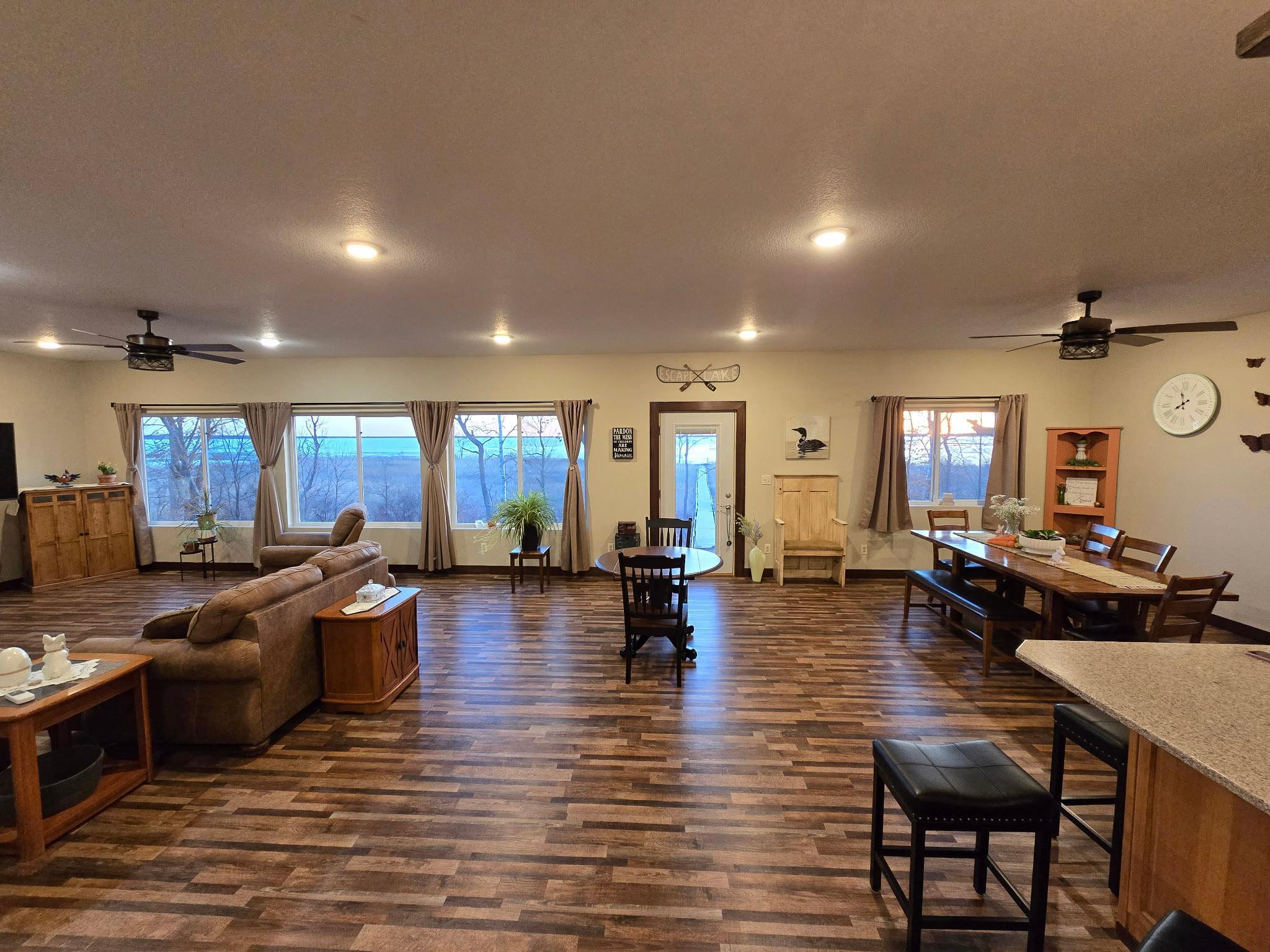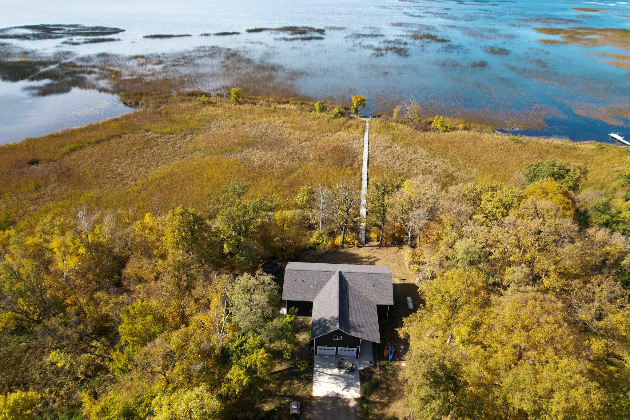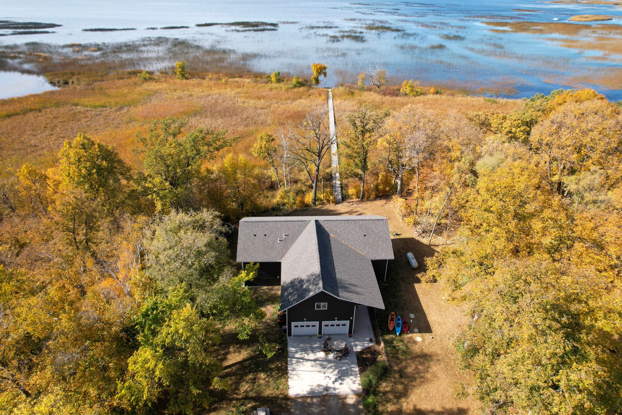 Discover luxury lakefront living on Rush Lake with this stunning 5-bedroom, 3-bathroom single-family home built in 2021. Situated on 9 private acres with 600 feet of lakefrontage, this modern home offers panoramic views and unmatched privacy.