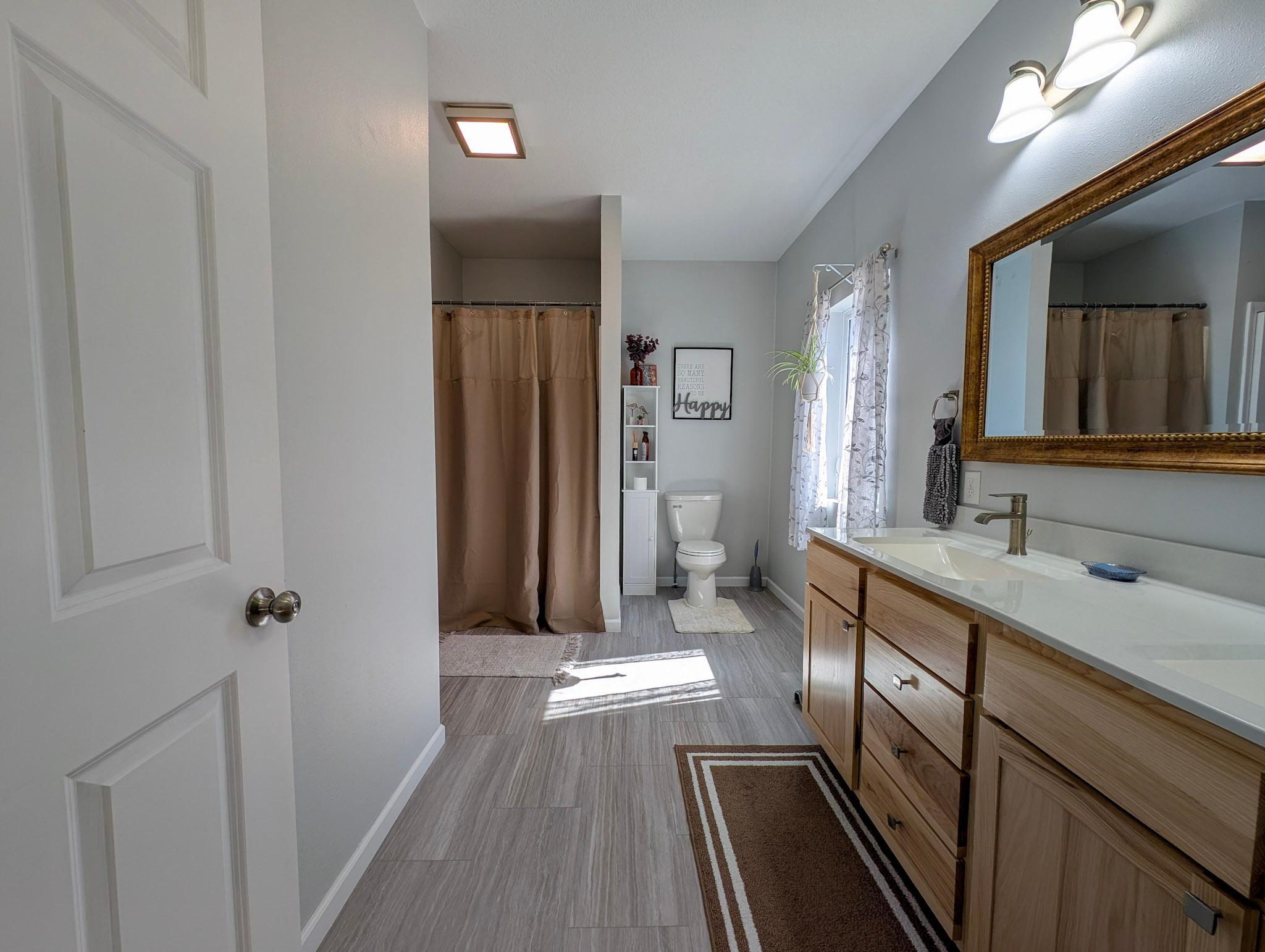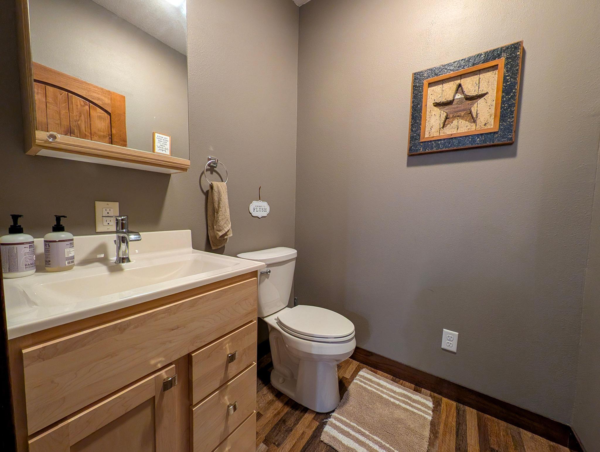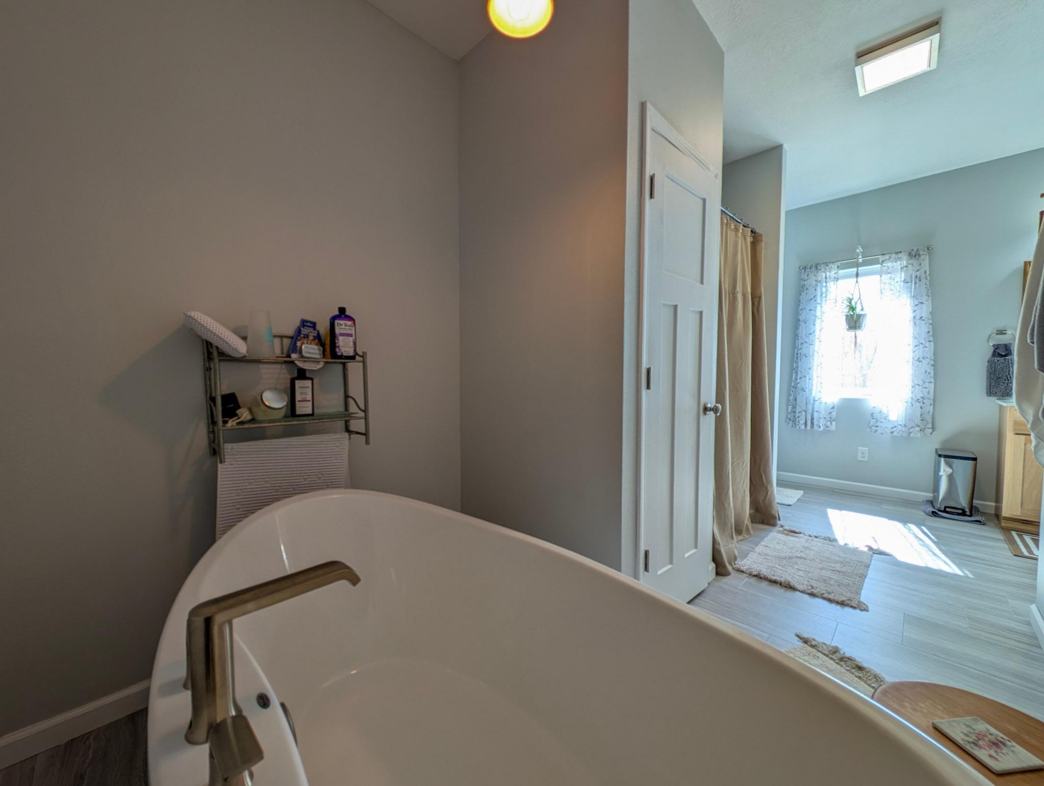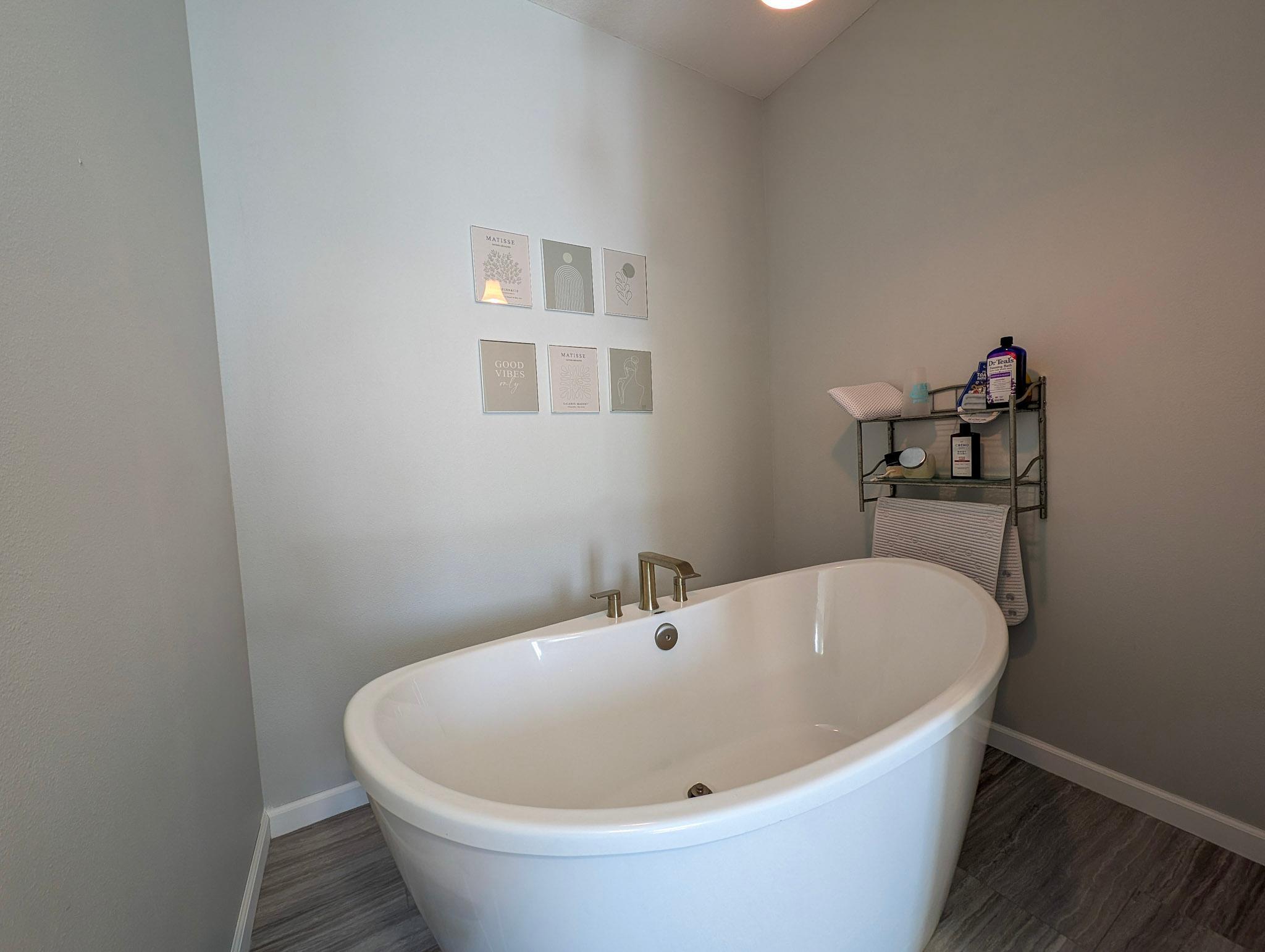 The spacious main-level primary suite includes a private en suite bathroom with a walk-in shower, double vanity, and soaking tub. Additional bedrooms are in the lower level, making this the ideal layout for families or guests. Outside, the level lakeside lot offers endless potential, including space for a future shed or outdoor entertaining area.