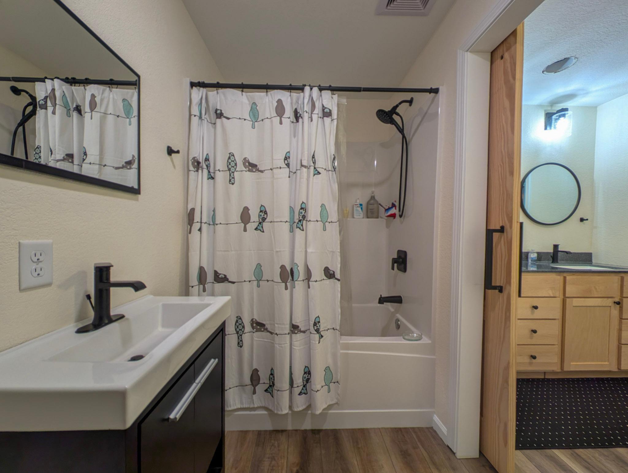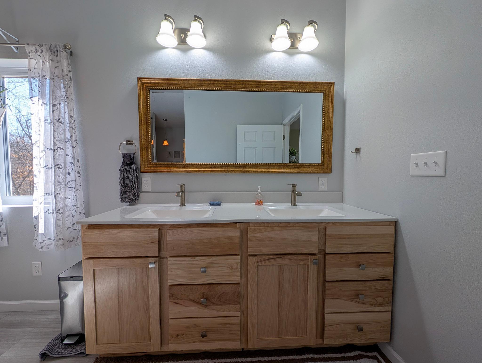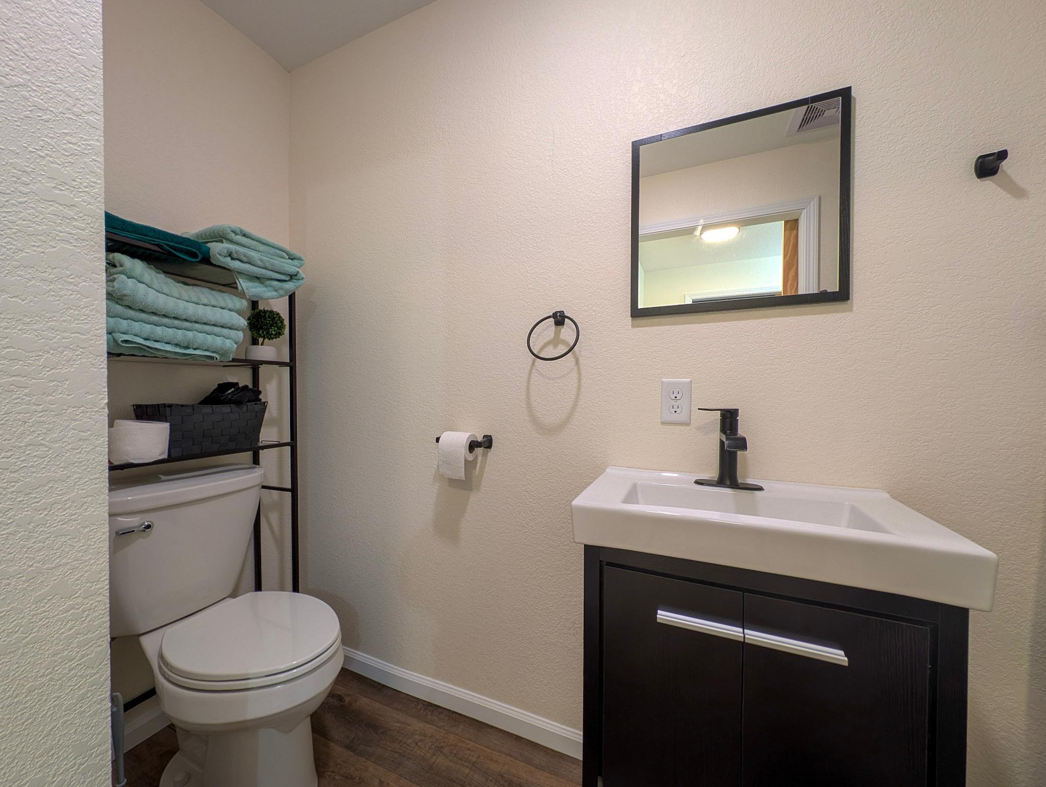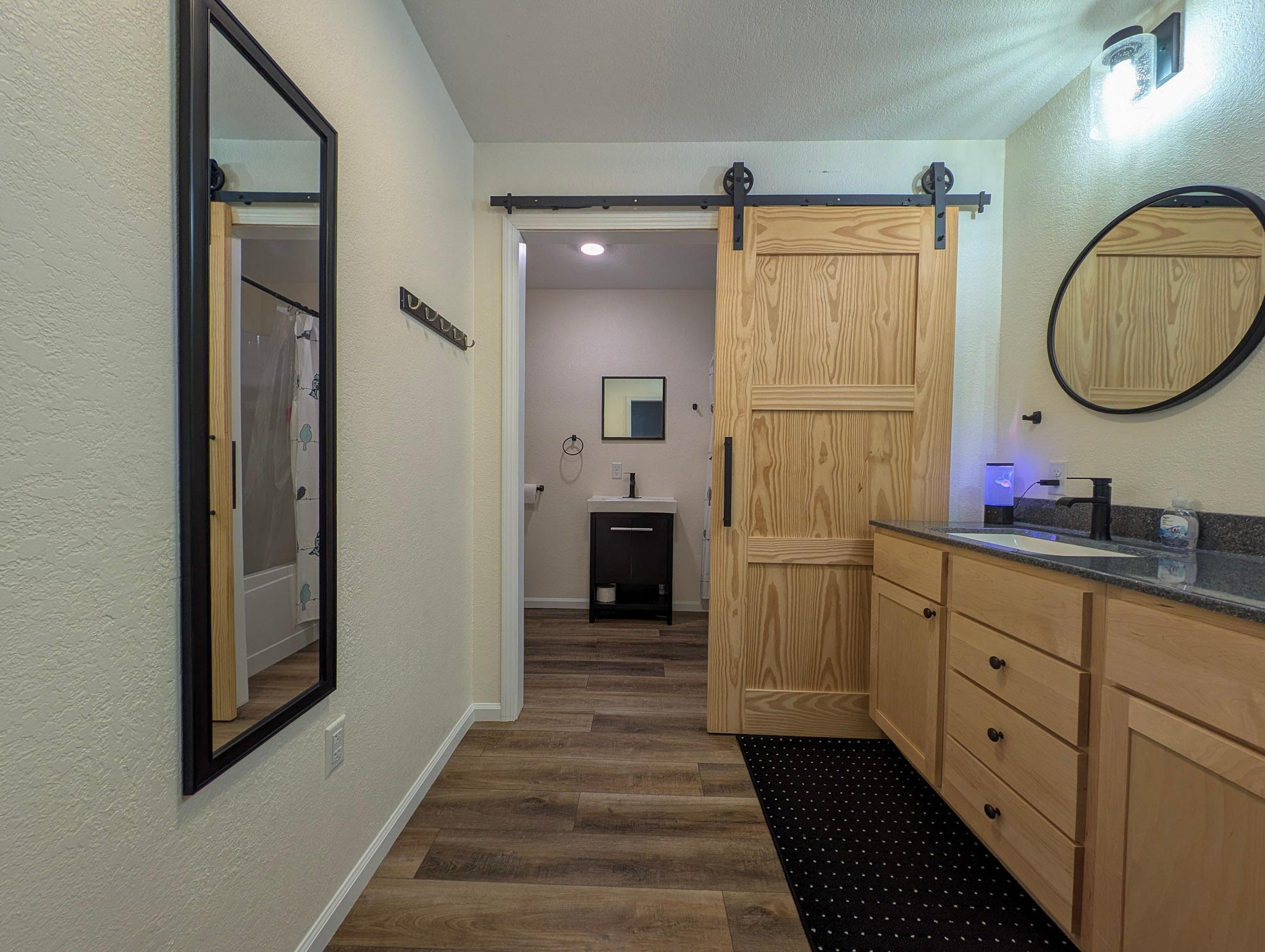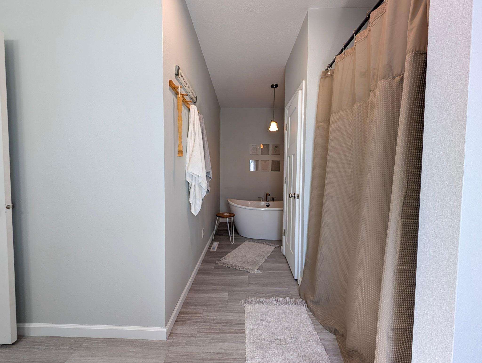 The spacious main-level primary suite includes a private en suite bathroom with a walk-in shower, double vanity, and soaking tub. Additional bedrooms are in the lower level, making this the ideal layout for families or guests. Outside, the level lakeside lot offers endless potential, including space for a future shed or outdoor entertaining area.
