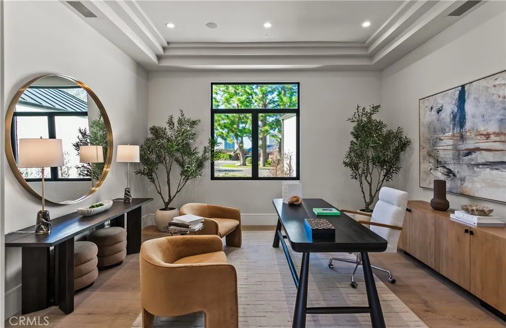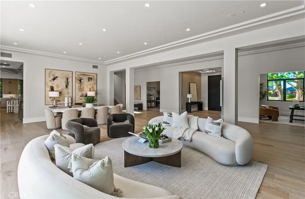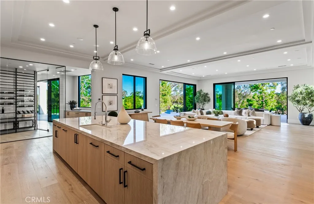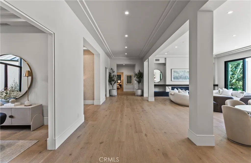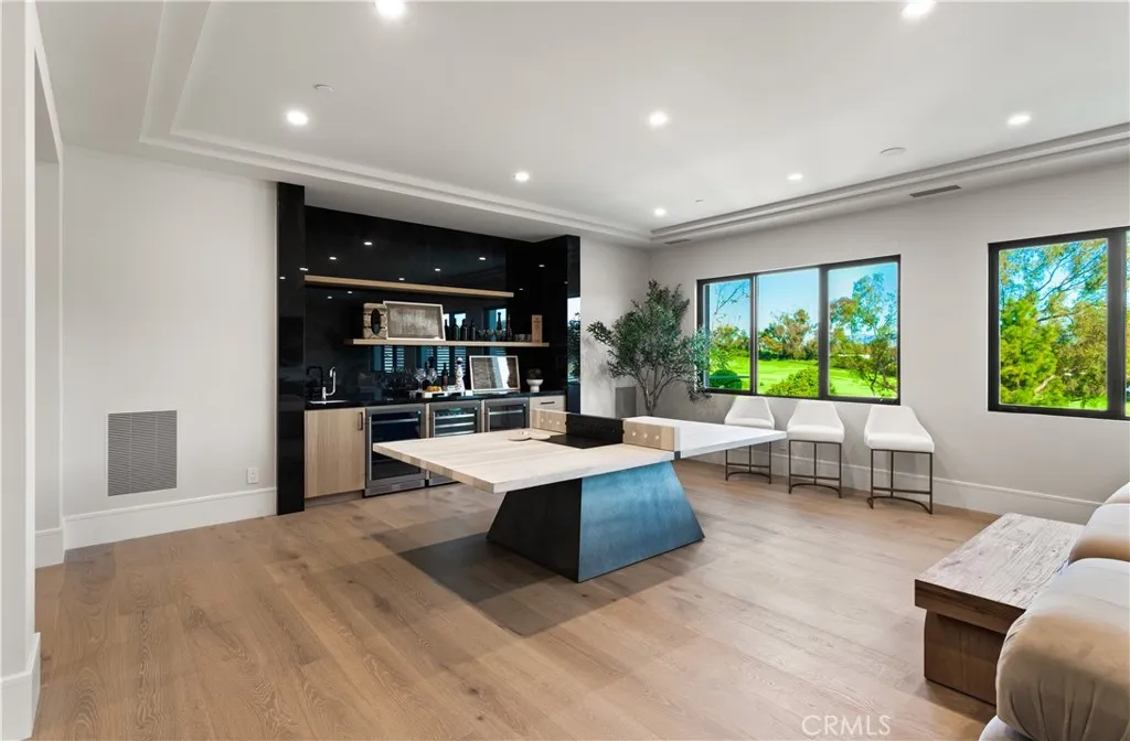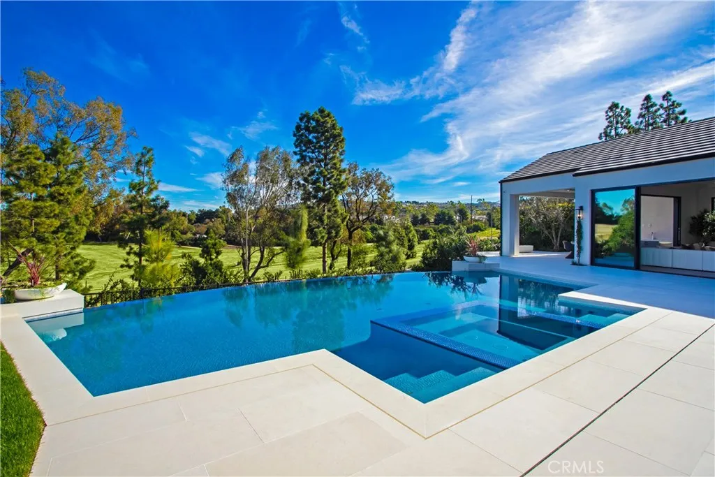 Just completed and set within one of Southern Californias most coveted enclaves, this newly constructed residence is a striking expression of refined architecture and modern coastal elegance. Offering exceptional luxury and an unmistakable sense of prestige, it presents a rare opportunity to own a premier estate within the highly sought-after Big Canyon community. Situated on an expansive pie-shaped lot, the home enjoys commanding views of the manicured fairways of Big Canyon Golf Course and the cityscape of Fashion Island. Expertly designed and meticulously executed, the residence spans ~10,106 square feet, seamlessly balancing grand-scale entertaining with intimate, private retreats. The floor plan includes six bedroom suites, seven bathrooms, and a six-car garage, with the option to add a vehicle lift for additional capacity. Soaring ceilings, wide hallways, and generous living spaces create an atmosphere of openness and architectural harmony throughout. A dramatic formal entry, flanked by two private offices, introduces the homes refined interiors. Beyond, the great room exudes coastal elegance, integrating with outdoor living areas through walls of glass. The family room forms the heart of the home and flows into a chefs kitchen appointed with a statement island, premium appliances and fixtures, an oversized walk-in pantry, and a striking glass-enclosed wine display. Two bedroom suites are positioned in a private main-level wing, which also includes a laundry and mud room with direct access to the two-car garage. This wing encompasses a well-appointed guest retreat and