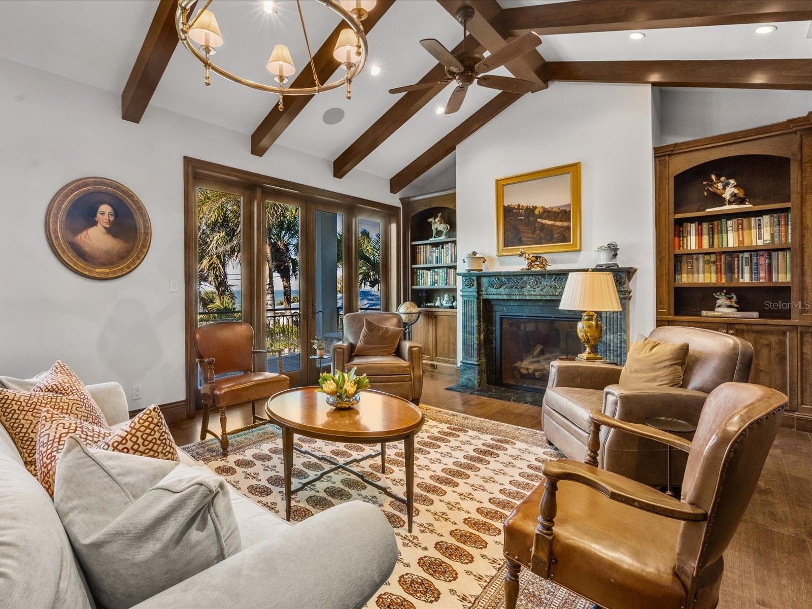Set along one of Casey Key’s most coveted stretches, 3210 Casey Key Road presents a rare Gulf-to-Bay estate where water defines nearly every moment of daily life. Enjoy your private beach with rare, grandfathered cabana and your private bay frontage with dock and irreplaceable covered boat lift. Spanning almost 5,400 square feet under air across three-plus levels, this 2018-built residence offers four bedrooms, four full baths, a powder bath, multiple living and bonus spaces and, last but not least, an indoor half basketball court, all framed by impact-rated glass and serviced by a three-stop elevator. Arrival begins through a lushly landscaped circular motor court leading to a coastal-inspired façade and a covered entry accented by wood inlay ceilings. Inside, engineered wood floors, crown molding, and curated architectural details introduce interiors that balance sophistication with warmth. The dining room captures Gulf views through an oversized window, while the library doubles as a refined retreat with beamed ceilings, built-ins, a fireplace, and French doors opening to a Gulf-facing terrace. At the heart of the home, the great room unfolds around a stone-clad fireplace and opens through Euro-wall glass doors to expansive outdoor living. The chef’s kitchen is both beautiful and highly functional, anchored by two oversized islands and finished with quartz countertops, tile backsplash, custom cabinetry, and a premier appliance suite including Wolf, Sub-Zero, Miele, and Vent-A-Hood. A walk-in pantry with additional prep space, a light-filled breakfast nook overlooking the bay, and a well-appointed laundry room complete the main living level. Two private primary suites on the main floor offer exceptional flexibility, each opening to terraces with pool and Intracoastal views. One features a steam shower and tailored walk-in closet, while the other is styled as a spa retreat with chandelier-lit marble finishes, a freestanding soaking tub, and a custom-designed dressing room. Upstairs, a lounge-style bonus room with wet bar and Gulf views creates an ideal gathering space, accompanied by two guest suites, both enjoying tranquil Intracoastal outlooks. The expansive lower level introduces remarkable versatility, with bonus living areas including a dedicated craft room and extensive storage rarely found in coastal homes. An indoor half-court basketball court makes this amenity driven property even more interesting. Outside, the estate truly comes into its own. A heated saltwater infinity-edge pool and spa anchor the backyard, complemented by an outdoor kitchen, pergola with gas firepit, outdoor shower, and pass-through bar for effortless entertaining. A Trex boardwalk leads to the dock and rare and irreplaceable covered boat lift, offering direct Gulf-to-Bay boating with no fixed bridges. On the beach side, a grandfathered cabana is the perfect venue for enjoying specular everyday sunsets. Situated on approximately 0.82 acres, the property provides both scale and privacy, framed by mature landscaping and sweeping water views on both sides. Set on the serene barrier island of Casey Key, this Gulf-to-Bay estate offers effortless access to boating, beach, and the dining and cultural scenes of Venice and Sarasota. More than a home, 3210 Casey Key Road is a refined coastal retreat where sophisticated interiors, resort-style amenities, and exceptional waterfront living come together.