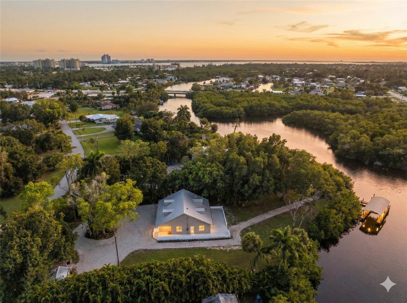 One or more photo(s) has been virtually staged. Beyond the trees and just steps from the water’s edge, 1313 Driftwood Drive invites you into a world where everyday life feels like a vacation. This rare Gulf-access property in North Fort Myers offers a stunning blend of comfort, space, and waterfront convenience—all tucked away in a peaceful, private setting. Featuring 4 bedrooms, 2 bathrooms, and a private dock with a covered boat lift, this is the kind of home that lets you launch into the river within minutes and unwind the moment you arrive.