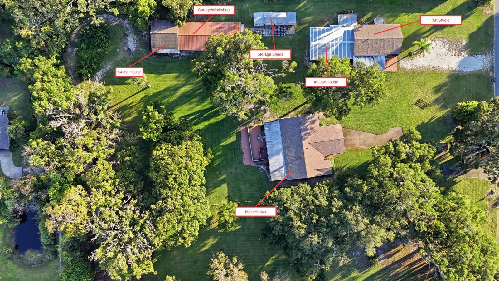 A welcoming primary residence featuring 2 bedrooms, 2 baths, an updated custom kitchen with cherry cabinets, granite countertops, upgraded appliances, pine wood floors, and thermal double-pane windows, a 2-car carport completes this comfortable central home perfect as the anchor residence for your compound or as the premium unit while renting out the others. This Florida room is what entertainers dreams are made of! Or your own private sanctuary. Room for a hot tub, for outdoor entertainment center overlooking your gorgeous property, fire up the Blackstone, a craft area.. need we say more?