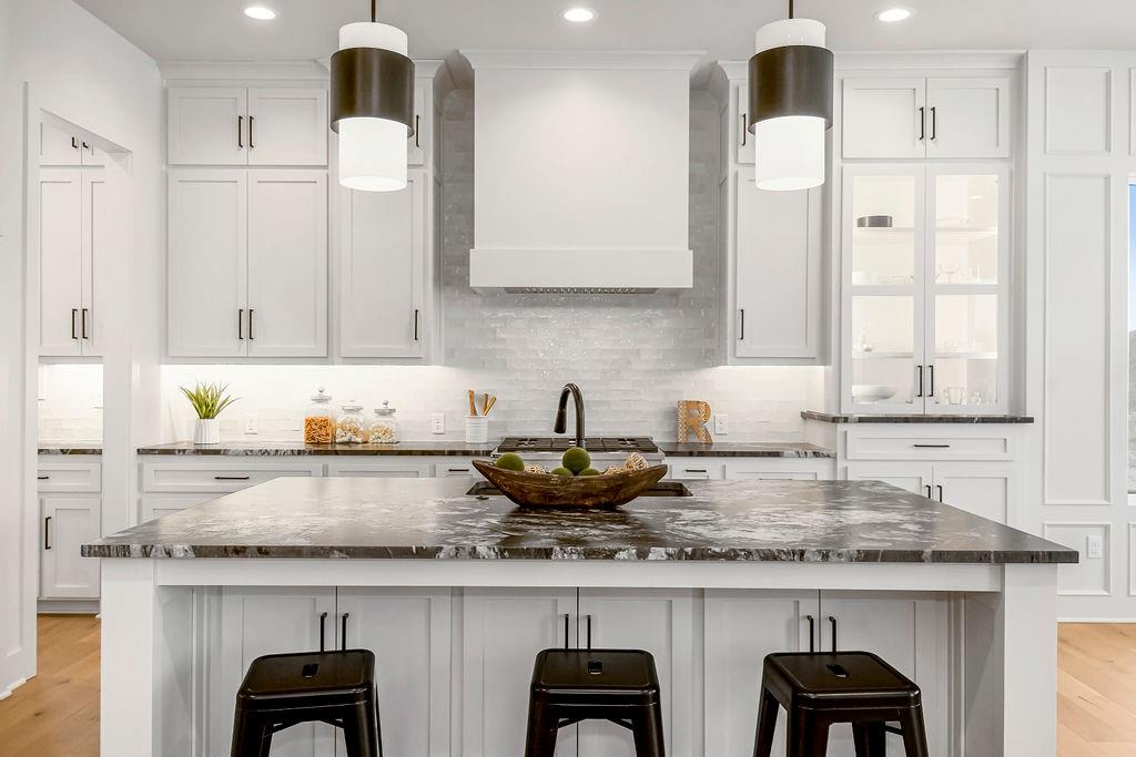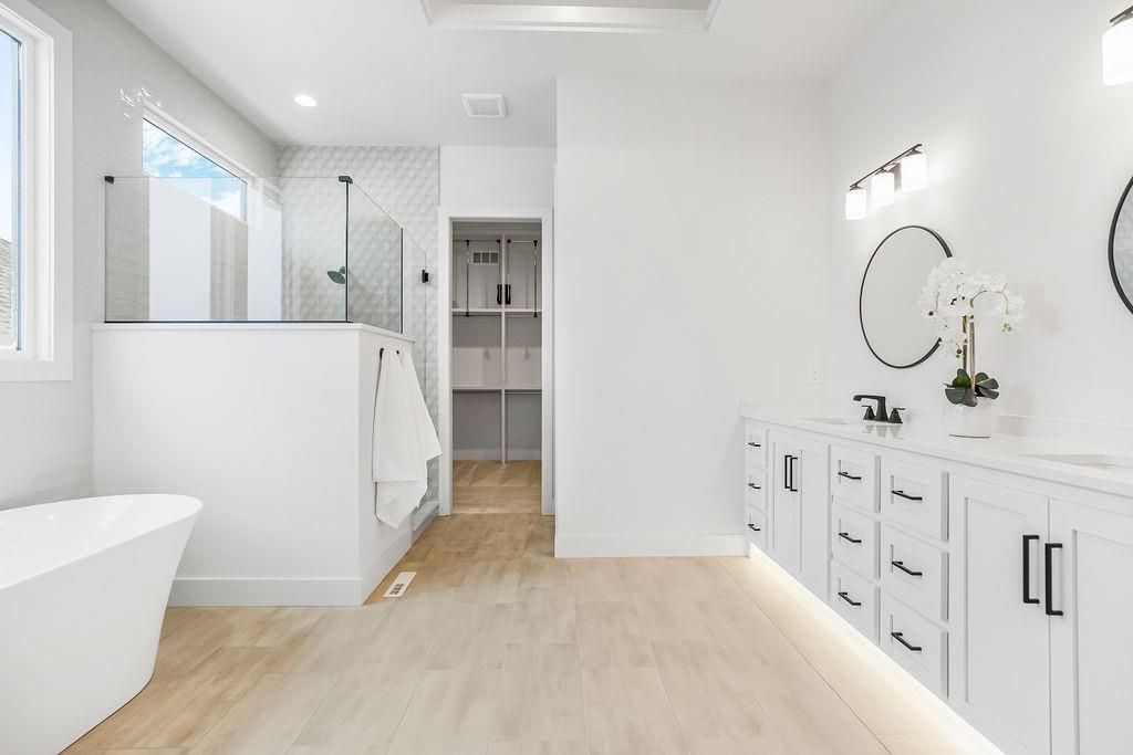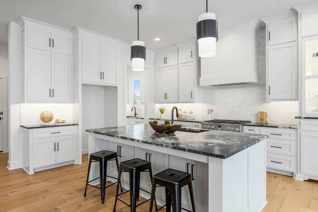 Adjacent to the hearth room, a gourmet kitchen steals the show with an oversized island perfect for entertaining, a custom hood over the range, a pantry with a sink and window plus ample shelving for all your storage needs.