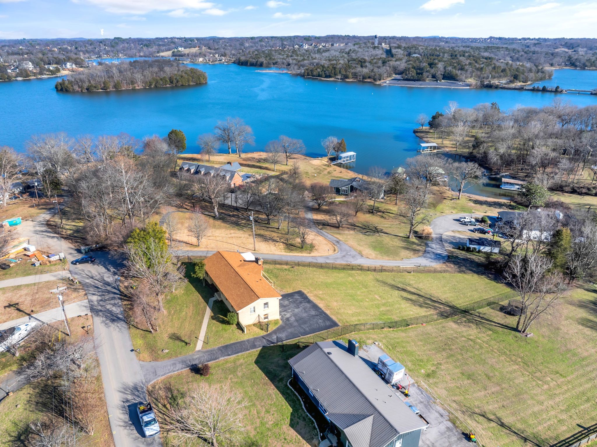 Lakeside Community with Multi-Million Dollar Lake Homes and Zoned for Wilson County Schools. Close to area Conveniences, such as Shopping, Grocery, Restaurants, Hospital, Airport and who can forget THE LAKE!! Shutes Branch Boat Launch is Visible from the Backyard and only 2 miles away by car! Home Rests on a Corner Lot at the end of a Dead End Street and Boasts Nearly 3,000 sqft of Living Space with Year Round views of Old Hickory Lake from Many Windows. There's a Full Finished Daylight Walk-out Basement with Views of the Lake, Full Bath, Kitchenette/Wetbar/Laundry room, Living/Rec Room w/Fireplace and Den/office/etc w/closet. Main Floor has 3 Bedrooms, All with Walk in Closets- 2 Full Baths, Large, Bright Living Room, Separate Dinning Room, 2nd Living Room/Den with Fireplace & Views of the Lake, and Kitchen. Items in and around home could use updating and/or replacing -Please use Caution when Touring Back Deck. It has been Sturdied up for Showing Purposes Only. Do Not Allow Children on Deck. Neither Seller nor Listing Agent has Knowledge as to Condition of Any Mechanical Units, Electrical, Septic, Plumbing, Chimneys, etc. Key Features: Wilson County, Views of Lake, No HOA, Convenient Location, 2 Wood Burning Fireplaces, Hardwood Floors, Wood Doors, Large Lot, All Brick, Large 2 Car Garage & Newer Roof.
