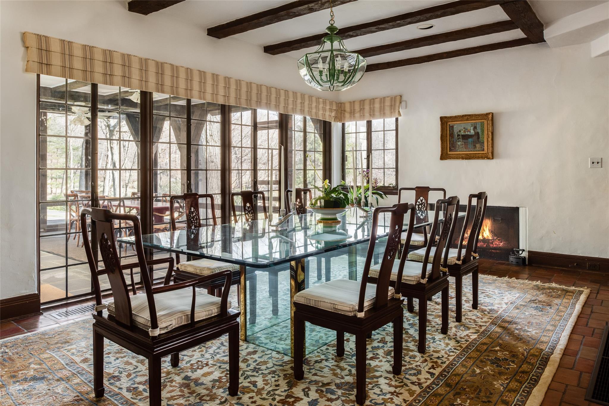 Nestled in the heart of the picturesque Hudson Valley, this stunning Tudor-style mansion is a true dream estate. Boasting an impressive 9,481 sq ft of living space, this magnificent property is situated on 50 acres of meticulously landscaped gardens, making it one of the most sought-after locations in the county. The estate features a 3-acre lake with a charming boathouse, a sparkling pool, a tennis court, a serene Japanese garden, and a guest house for visitors. The sprawling grounds also include rolling lawns, a quaint orchard, and vegetable and berry gardens, creating a botanical paradise that is sure to impress even the most discerning buyer. Steeped in history, the property features a cobbled drive lined with stones salvaged from old Bronx streets, adding to its unique charm. The interior of the home is equally impressive, with a breathtaking great room featuring a cozy fireplace, 40-foot vaulted oak-beamed ceilings, and towering glass doors that open up to the picturesque lakeside. With 11 bedrooms, including a recently renovated primary bedroom suite with an expansive bathroom, office, and den, as well as a stately oak library and multiple dining areas, this estate is perfect for entertaining guests in grand style. Whether used as a summer retreat or a primary residence, this property offers the perfect blend of luxury and comfort. Conveniently located with easy access to highways and Manhattan, this estate truly offers the best of both worlds. Don't miss your chance to own a piece of Hudson Valley history and make this extraordinary property your own.