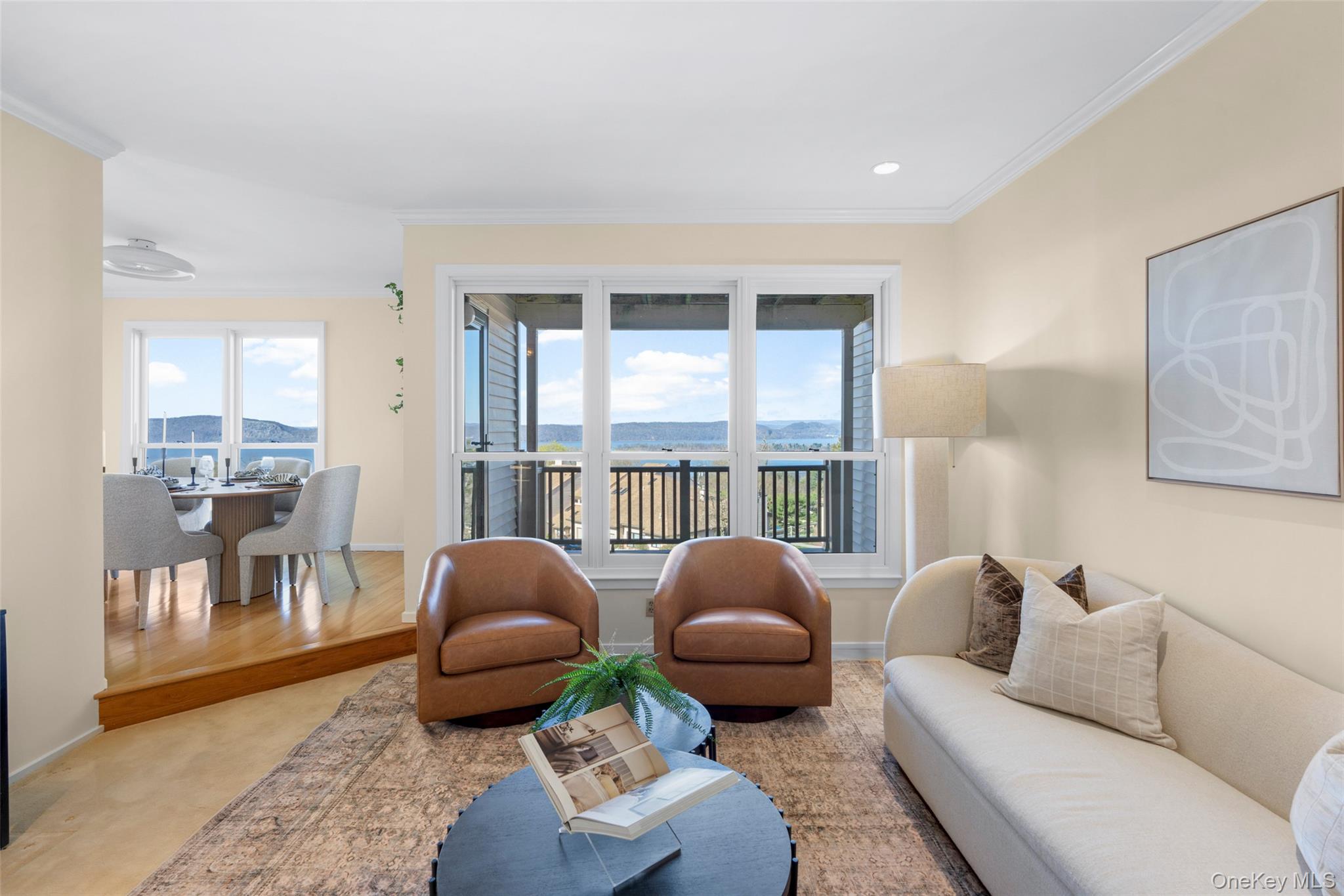 Welcome to 78 Hudson Watch Drive, a stunning 2-bedroom, 3.5-bath tri-level townhouse offering an unparalleled luxury lifestyle. Experience breathtaking Hudson River views spanning all three floors of this meticulously maintained home. Step inside to a truly inviting space featuring a spacious sunken living room anchored by a cozy gas fireplace. The layout is wonderful for entertaining, leading into a dining room with a door that opens directly to a quiet deck—for al fresco dining with a view. The eat-in kitchen is the heart of the home with stainless steel appliances and granite counters. The first floor also includes an office and a powder room. The upper level features a primary suite complete with an ensuite bath with a steam shower, spa tub, and a large walk-in closet. Step out to your balcony and enjoy the mountains and river view. There is a lovely second bedroom, hall bath and a dedicated laundry area which complete this floor. The lower level has ample space for endless possibilities. It features a large family room with a kitchenette, a full bath and sliding glass doors to a covered patio. Enjoy year-round comfort with central air conditioning throughout the home. The community offers an in-ground pool and tennis court as well as lawn maintenance for the approximately 80 homes in Hudson Watch.