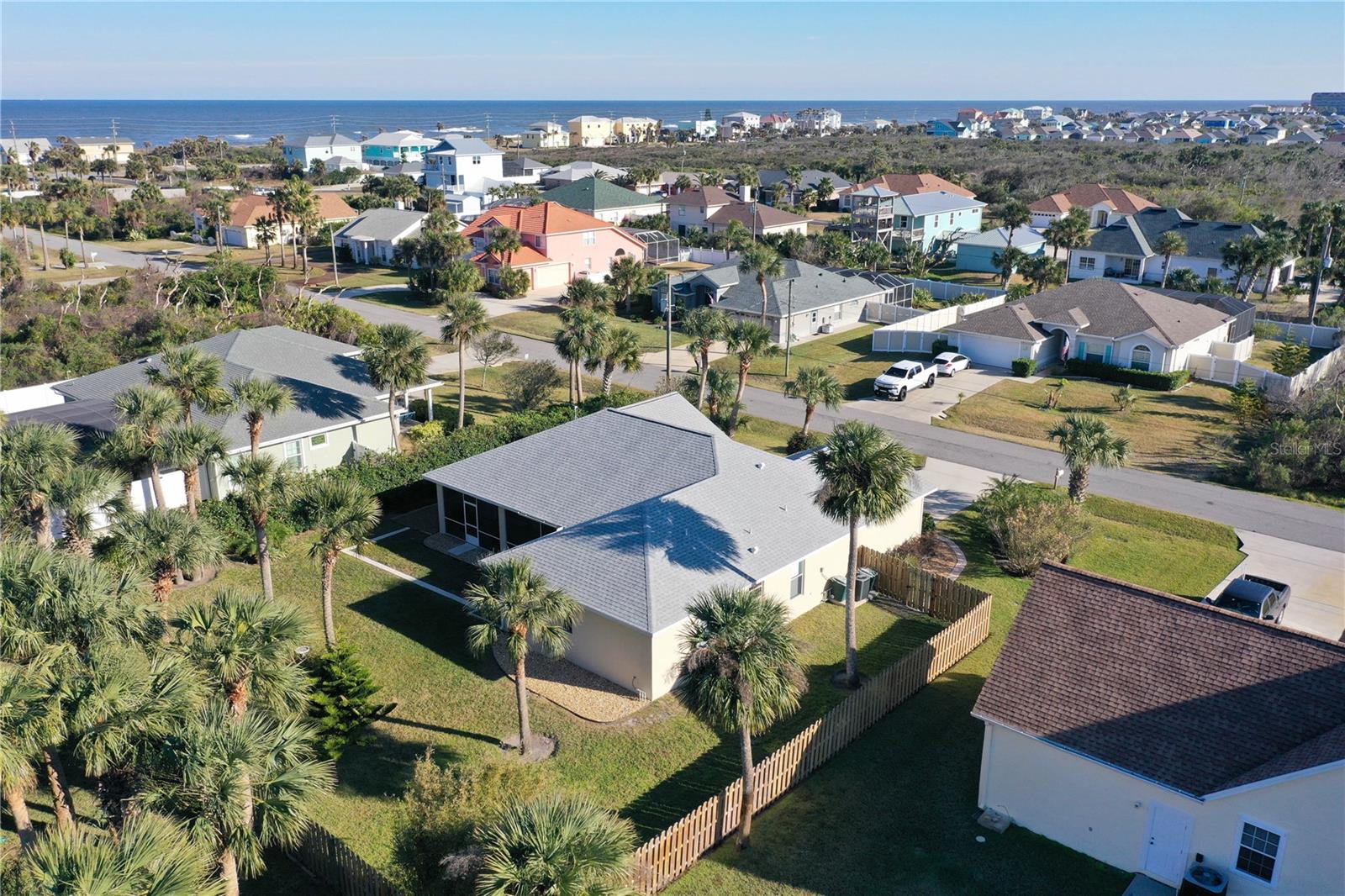 Embrace BEACHSIDE LIVING in this beautifully maintained and charming Coastal Home. Perfectly located, off A1A just south of St Augustine, Matanzas Inlet and Marineland, in Hammock area of Flagler county. DEEDED BEACH WALKOVER at A1A...less than 1000 to the ocean. This exceptionally well built, 3 bedroom, 2 full bath home features durable Concrete Block Stucco CBS construction. Recent updates include a NEW ROOF in October 2024 and new hot water heater in 2026. Nestled on a SPACIOUS WOODED LOT (100’X130’), with ROOM FOR A POOL. Maritime Estates II is a private single street neighborhood of custom homes. The covered front porch provides a perfect outside sitting area to enjoy the ocean breeze. The decorative front door welcomes you into a central living area and large formal dining area which would be perfect for family holidays and celebrations. The central living room sliding glass doors open to a large, covered screened lanai, which overlooks the wooded back yard. Continue into the spacious kitchen with an island, ample cabinet storage and countertops. Enjoy casual dining at your bright and sunny cafe dining nook with the adjacent family room for TV and entertaining. Sliding glass doors and a huge window in the breakfast nook allow a relaxing view of palm trees, native plants and birds in the back yard. The primary suite is a private retreat, offering direct access to the lanai and a luxurious en-suite bathroom featuring a walk-in tile shower, garden tub and plenty of storage with dual clothes closets and a linen closet. The split floor plan ensures privacy for guests with the secondary bedrooms sharing a full tile bath with tub/shower combination. The completely fenced backyard backs up to the serene River to Sea Preserve for added privacy. Flagler county amenities include 6 lighted pickleball courts, several points of county beach access with parking, restrooms and walkovers, Bing's Landing for boat launch and fishing. Washington Oaks Gardens State Park and miles of bike trails throughout the Hammock give you the feeling of "Old Florida" The Hammock also has its own Publix, coffee shops, restaurants and Palm Coast is nearby for big box store shopping. Don't miss this rare opportunity to own a slice of Coastal Paradise with all of the amenities and charm you have been dreaming of...call and schedule your showing today.