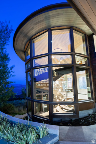 Exterior Features: Balcony, Deck; Covered, Double Pane Windows, Lighting, Patio: Covered, Sliding Glass Doors, Stained Glass Windows