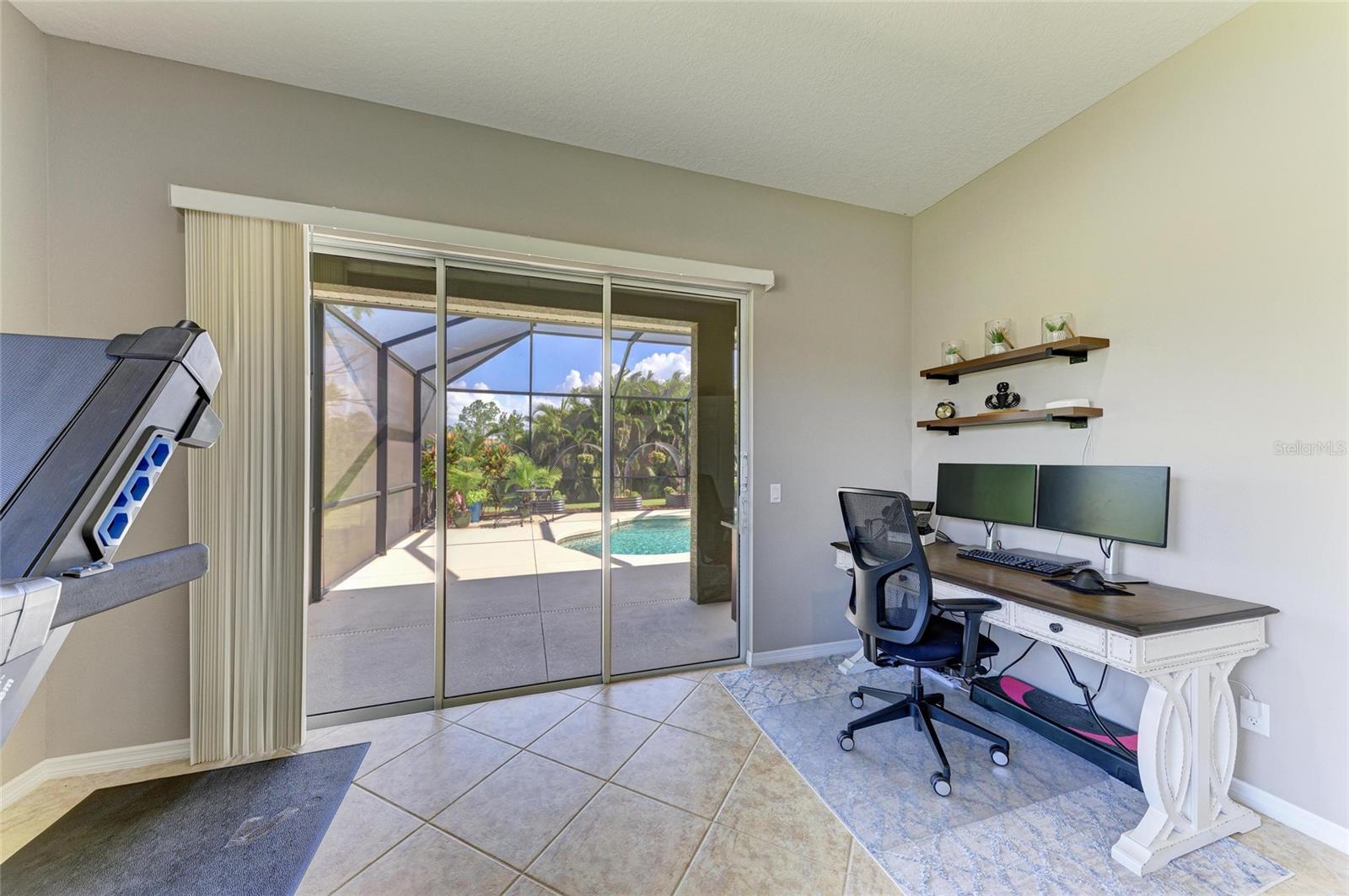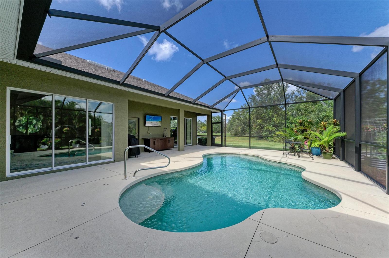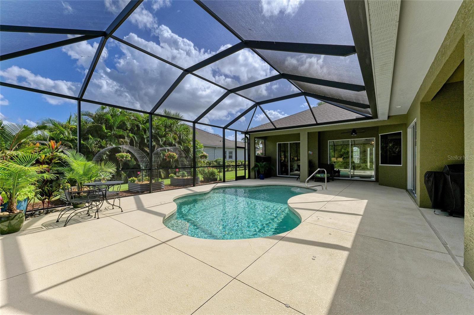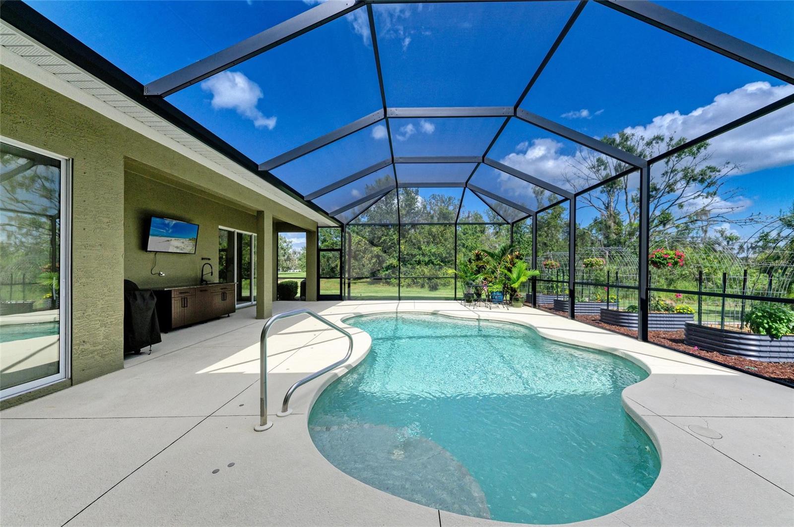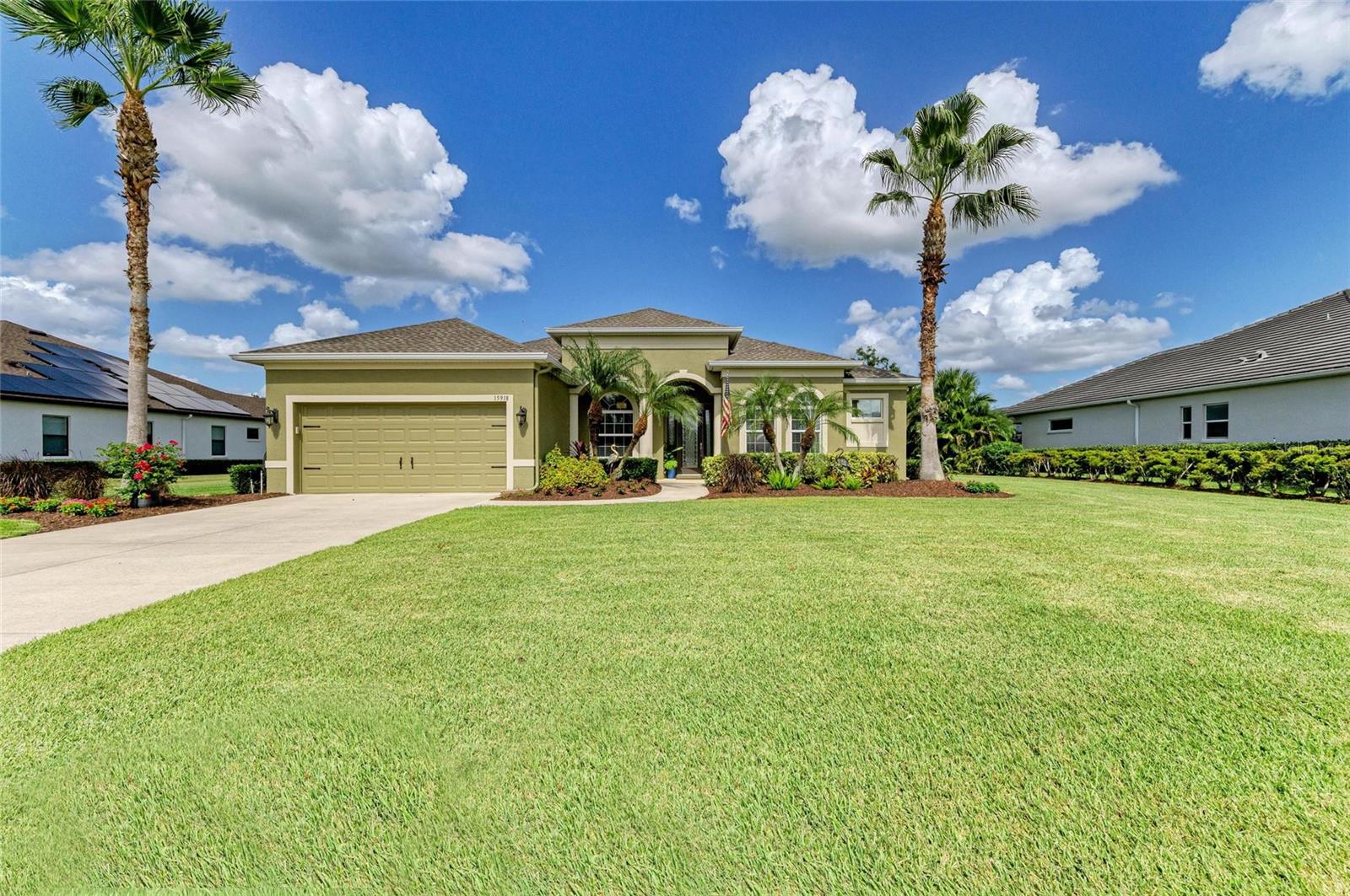 Welcome to Twin Rivers, a sought-after community celebrated for its estate-sized lots, custom homes and direct access to the Manatee River. Perfectly positioned on over 1/2 an acre with lots of privacy from lush preserve and pond views with no direct neighbors to your rear. This plan, the Barbados floor plan built by Medallion homes in 2014 consists of 4- bedrooms, an office/den in front of home, versatile bonus room in back portion of home, and 3-CAR TANDEM GARAGE. Upon entering you are greeted by custom glass double doors that lead into the expansive living room and dining room, flowing seamlessly to the outdoor living area with a heated saltwater pool. The great outdoors offers a renovated screened lanai, several covered areas, custom outdoor cabinets and sink (2022) create the perfect year-round retreat. The chef’s kitchen provides abundant cabinetry, dedicated built-in desk, most appliances were upgraded (2022-2023)- plus updated glamorous pendant lighting for a fresh modern touch. In addition to the breakfast nook and family gathering room with sliders to pool, a separate butler’s pantry is off the kitchen that opens to great room and is separated by doors to dining room. The primary suite offers a walk-in closet and a luxurious bath with dual sinks, newer granite countertops, soaking tub, linen closet, and zero entry shower with frameless glass shower. A separate guest wing hosts two bedrooms shared with a guest bath and is separated with a pocket door for privacy. Beyond, there is a 4th bedroom showcasing built-in shelves that can be easily removed and the third bath serves as a pool bath. The expansive yard, fences are allowed, offers a dedicated area that a gardener enthusiast will love. The newer Vego raised-beds garden with automatic and adjustable irrigation system, adds charm and convenience for herbs, flowers, and vegetables. Interior upgrades include laminate flooring (2022) in all bedrooms, fresh interior paint (2022), with select rooms refreshed in 2025, and updated lighting fixtures and fans throughout. Thoughtfully maintained, home features a NEW ROOF (2022), pool screen restoration (2023), and recent updates to major systems, including a Gulf Stream electric pool heater (2022), whole-home water filtration and softener system (2022), Smart irrigation controller (2022) and hurricane shutters for added peace of mind. Twin Rivers is known for its peaceful setting with abundant wildlife and community amenities that include a riverfront area with boat launch, fishing pier, playground, kayak storage, parks, sports courts, and recreation areas. With low HOA fees, no CDD, and a prime location near Rye Road, the Gamble Creek Farmer’s Market, and water activities along the Manatee River—plus easy access to St. Petersburg, Tampa, and Sarasota—this home offers the ideal blend of quality, comfort, and natural beauty.