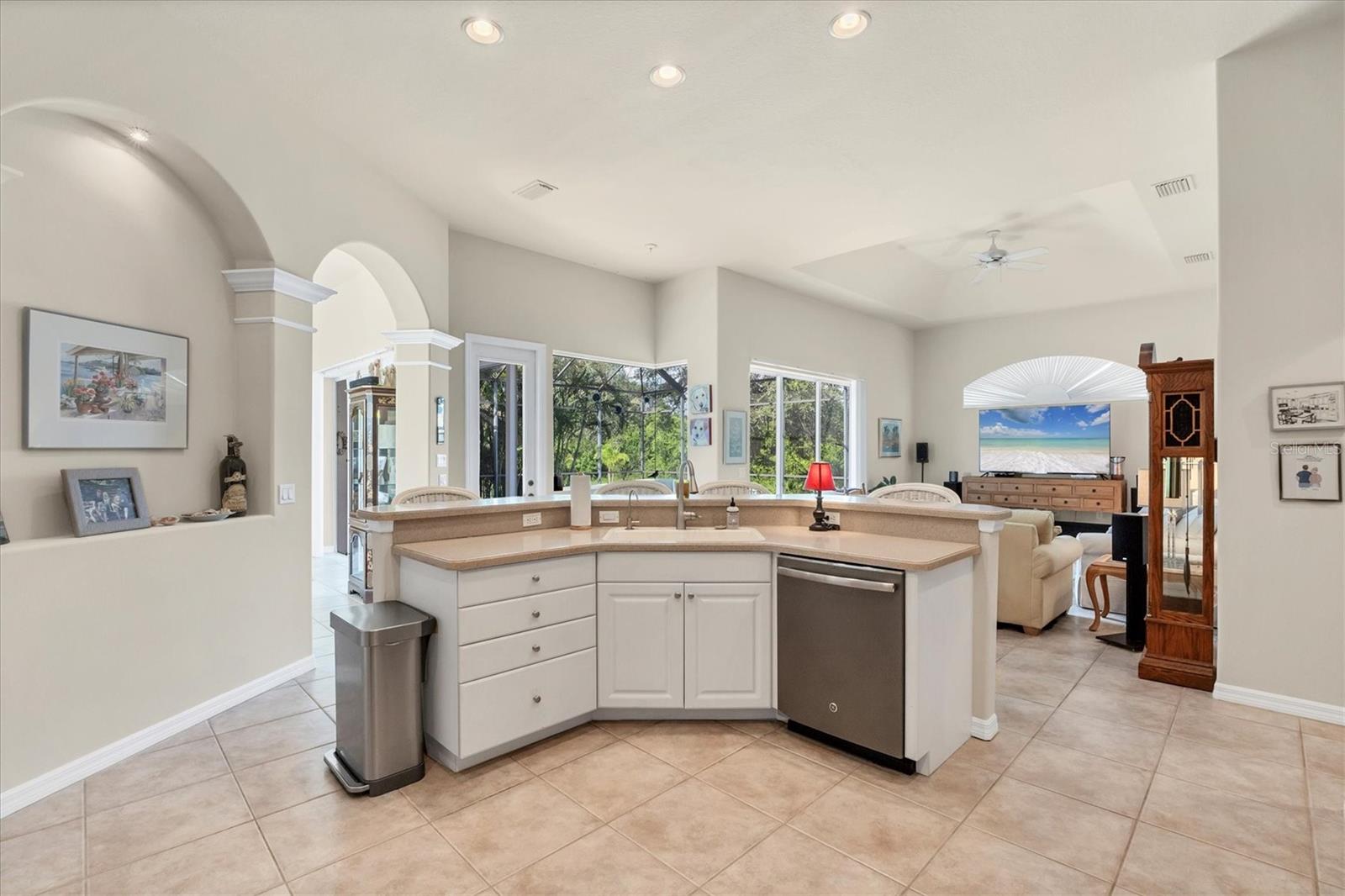 Nestled in a quiet, picturesque cul-de-sac lined with luxury homes and golf course estates, this Grand Florida residence offers timeless elegance, exceptional construction, and a lifestyle of comfort and convenience. The beautifully landscaped roundabout sets the tone for this inviting neighborhood, perfect for walking, biking, and enjoying nearby amenities. This spacious home boasts an expansive open floor plan with soaring 12-foot tray ceilings, two generous living areas ideal for entertaining, and a large kitchen with abundant cabinetry and counter space. The home features oversized guest and primary bedrooms, providing comfort and privacy for family and visitors alike. A standout feature of this property is its seamless indoor-outdoor living. Sliding doors from three separate locations open to the stunning pool lanai, creating a true extension of the interior. The covered lanai, also with 12-foot ceilings, offers ample shaded space for relaxing or dining alfresco, while mature tropical landscaping ensures privacy and tranquility. Enjoy breathtaking western sunsets each evening—your own slice of the Gulf Coast’s magic. Recent enhancements include a brand-new flat tile roof, new AC, and full hurricane shutter protection, including electric motorized shutters on the lanai for peace of mind during storm season. Furnishings and decor are largely negotiable, allowing for a near turnkey opportunity. This exceptional home is just a short walk or bike ride to shopping, dining, and three full-service marinas, with easy access to historic Boca Grande, miles of pristine beaches, and a variety of public and private golf clubs. World-class boating and fishing are right at your doorstep. Don’t miss your chance to own this impressive Florida home in a coveted location that perfectly blends style, privacy, and coastal living.