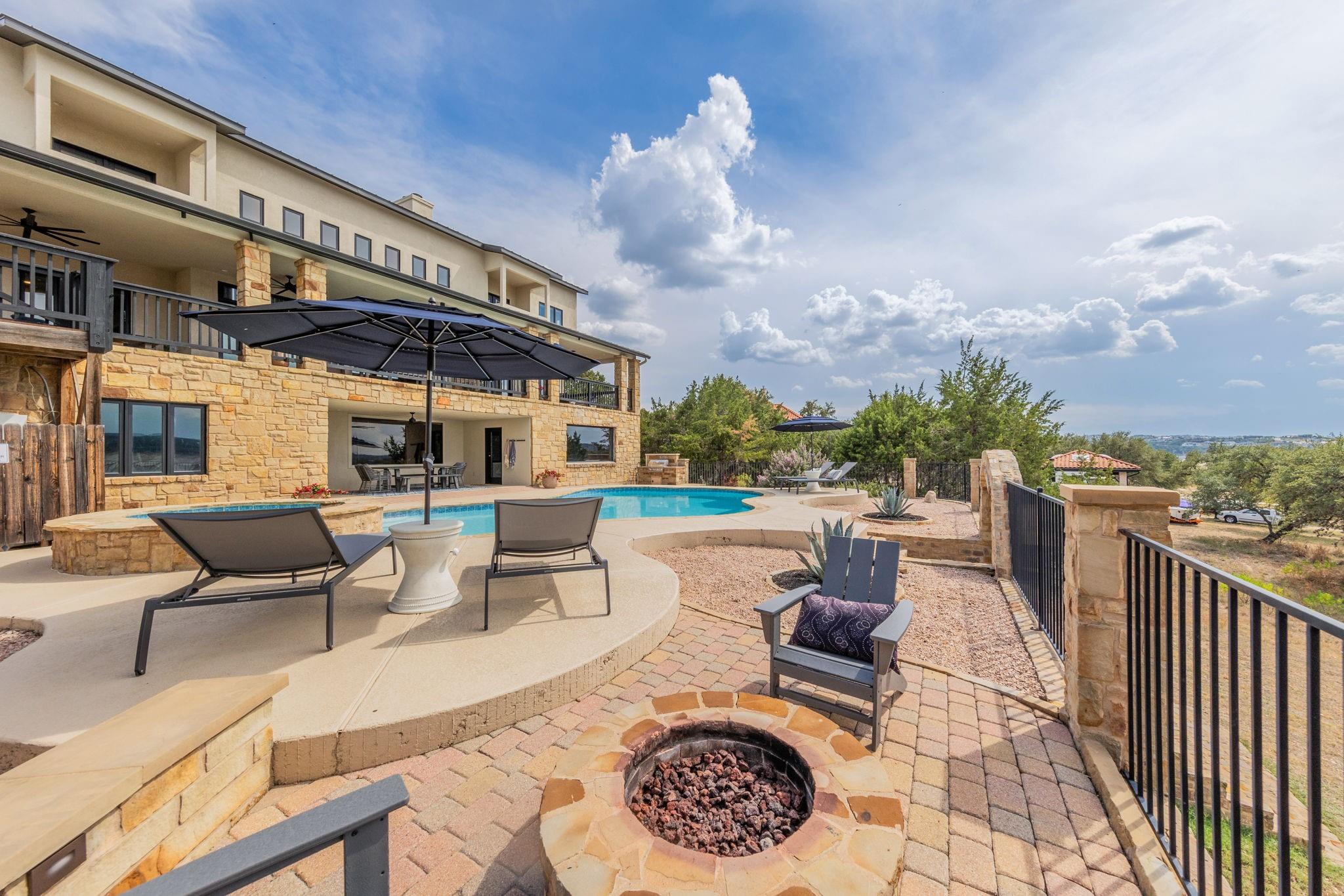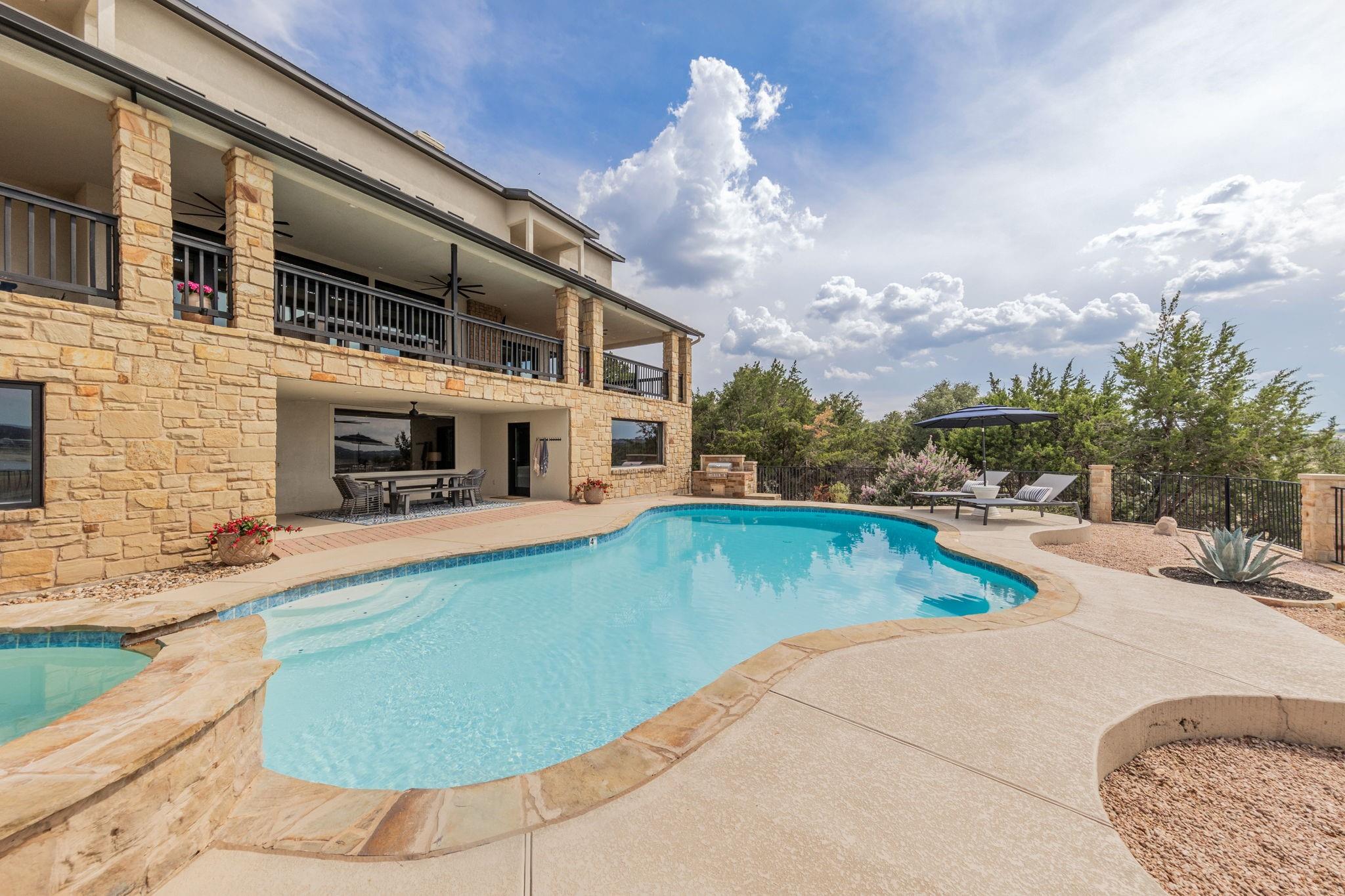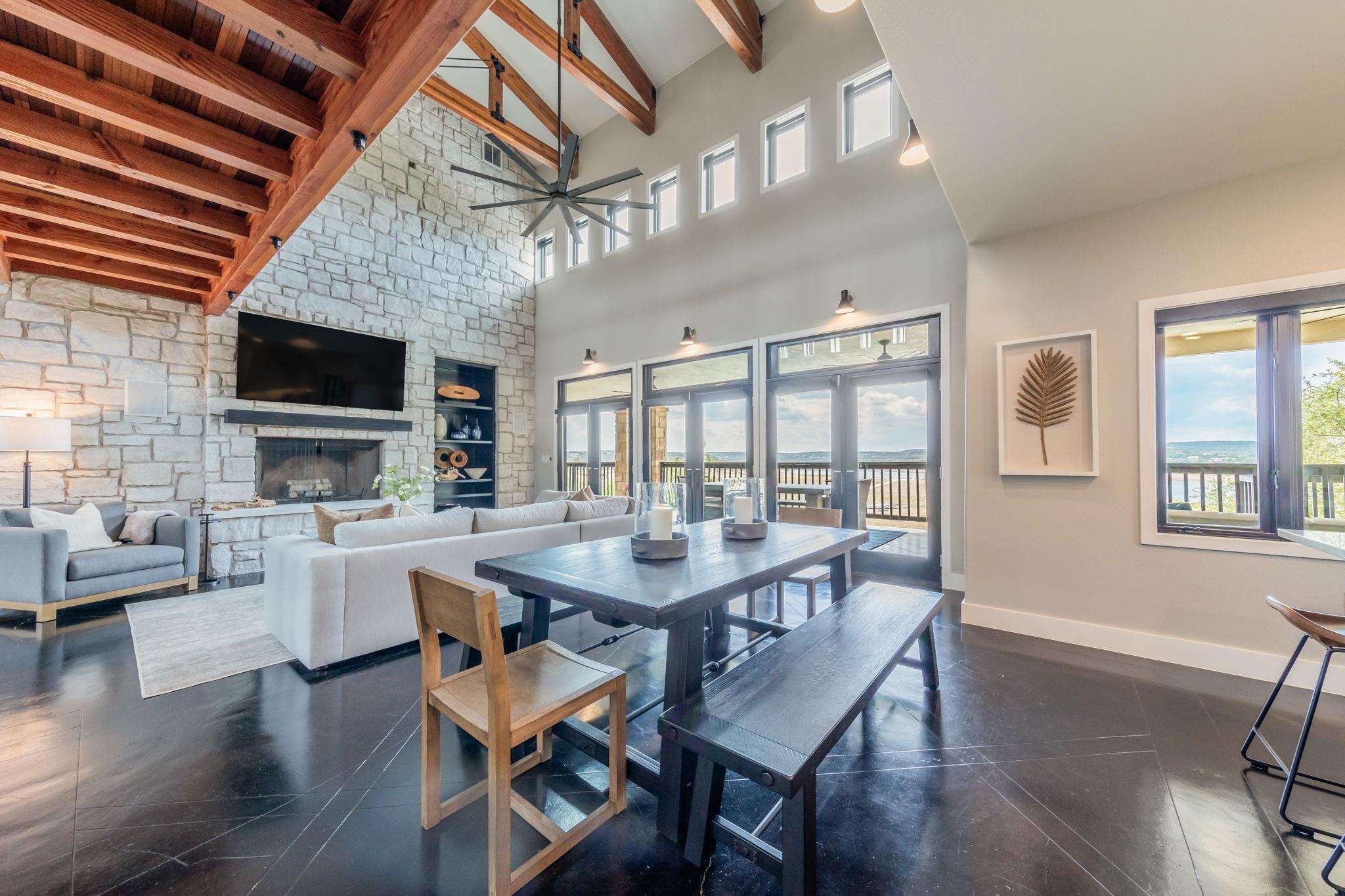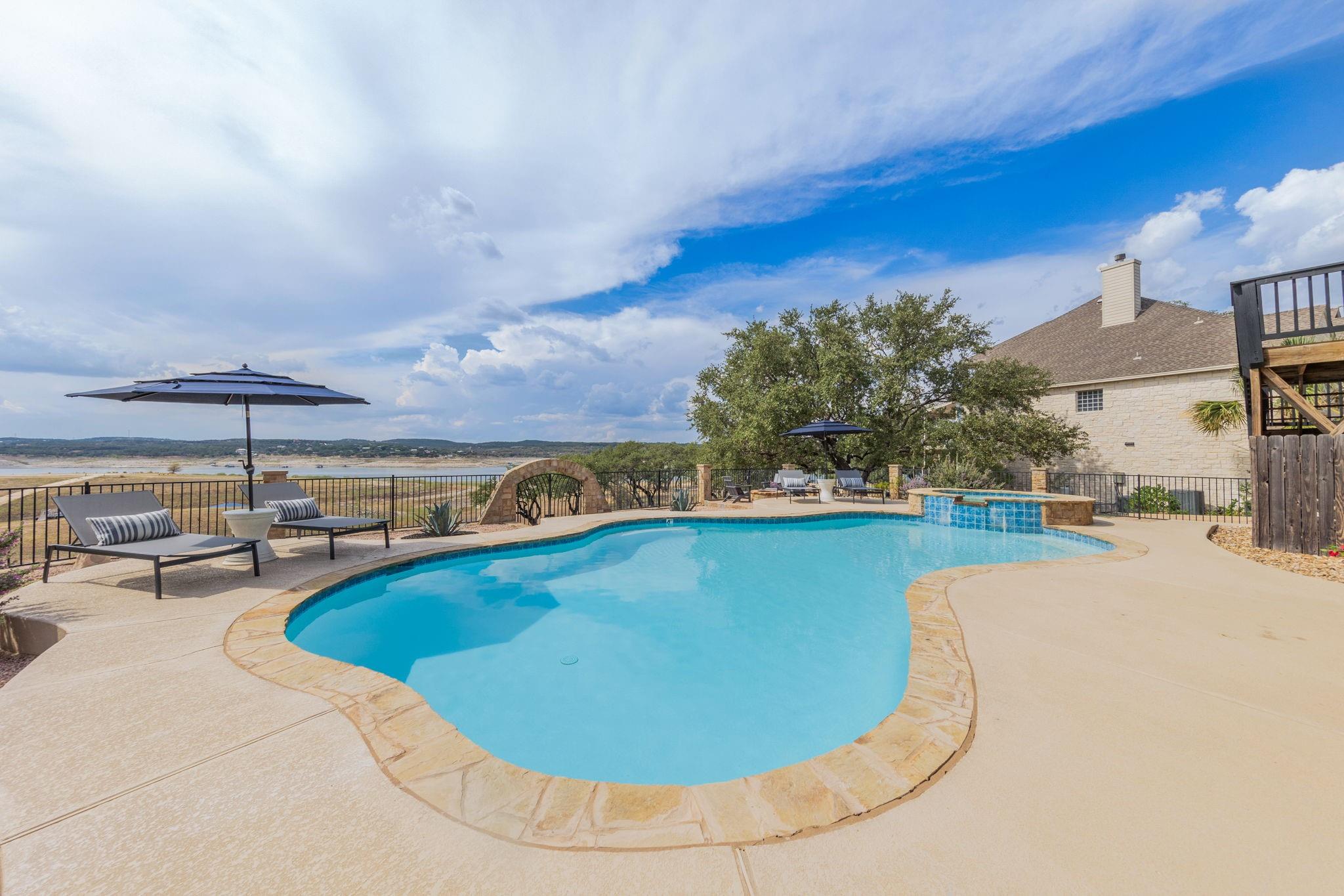STR'S ALLOWED - Luxury Lakeside Home Experience the ultimate retreat in Point Venture! This stunning lakeside home offers breathtaking panoramic lake views and world-class amenities, including one of Texas' top nine-hole golf courses. This expansive 4,400 sq. ft. home sits on a sprawling 1.7-acre lakefront lot. The gourmet kitchen is a chef’s dream, boasting a new GE Cafe Stove, fridge, and dishwasher, custom wood cabinets, and a walk-in pantry/laundry room, all with a view of the lake. The open living area, highlighted by a beautiful fireplace and a wall of glass doors/windows, brings the dramatic lake scenery indoors. The luxurious primary suite offers a walk-in closet, built-in wood cabinets, and a spa-like ensuite with a soaking tub, huge walk-in shower, and double vanities. Step out onto the 930 sq. ft. second-floor balcony with an outdoor fireplace for a perfect evening under the stars. Each secondary bedroom has its own covered patio with lake views, and the fourth bedroom is equipped with 2 sets of built-in twin bunk beds and an ensuite bathroom. Outdoor living is unparalleled with a 240 sq. ft. covered patio, heated pool, hot tub, built-in propane grill, and fire pit, all surrounded by majestic Live Oak trees. Additional features include a 2.5-car garage, surround sound, commercial-grade fiber internet, WIFI thermostats, three HVAC systems, two 240-A tankless water heaters, a metal roof, and stucco exterior. Located just an hour from downtown Austin, this home offers convenient access to the city’s vibrant culture. The HOA provides exclusive access to a 60-acre waterfront park with a boat ramp, disc golf, playground, golf course, sports bar, swimming pool, tennis and pickleball courts, marina, and a live music lakefront bar/restaurant. Updated in 2022 with a $200K remodel, this home is ready for you to enjoy!