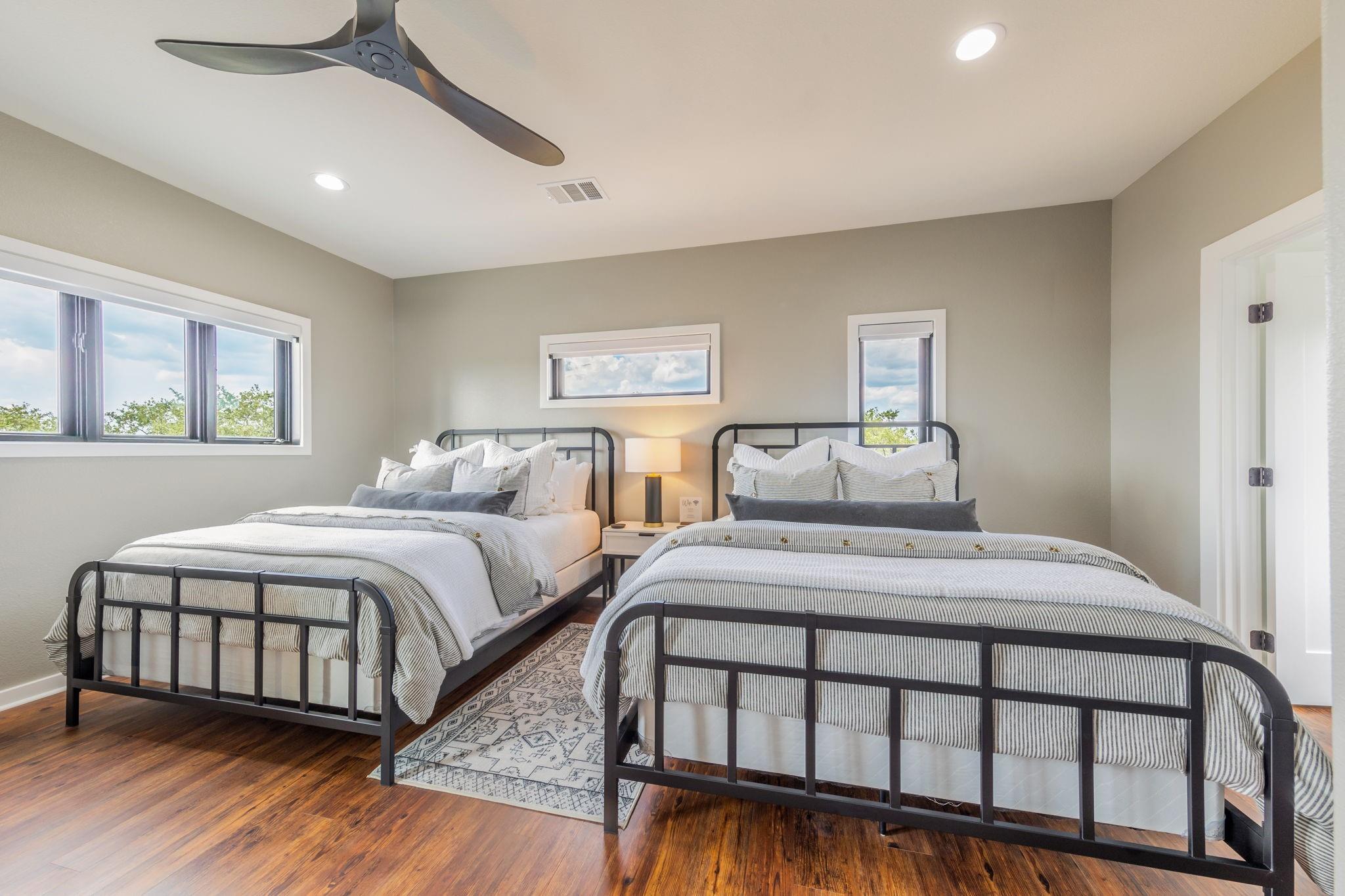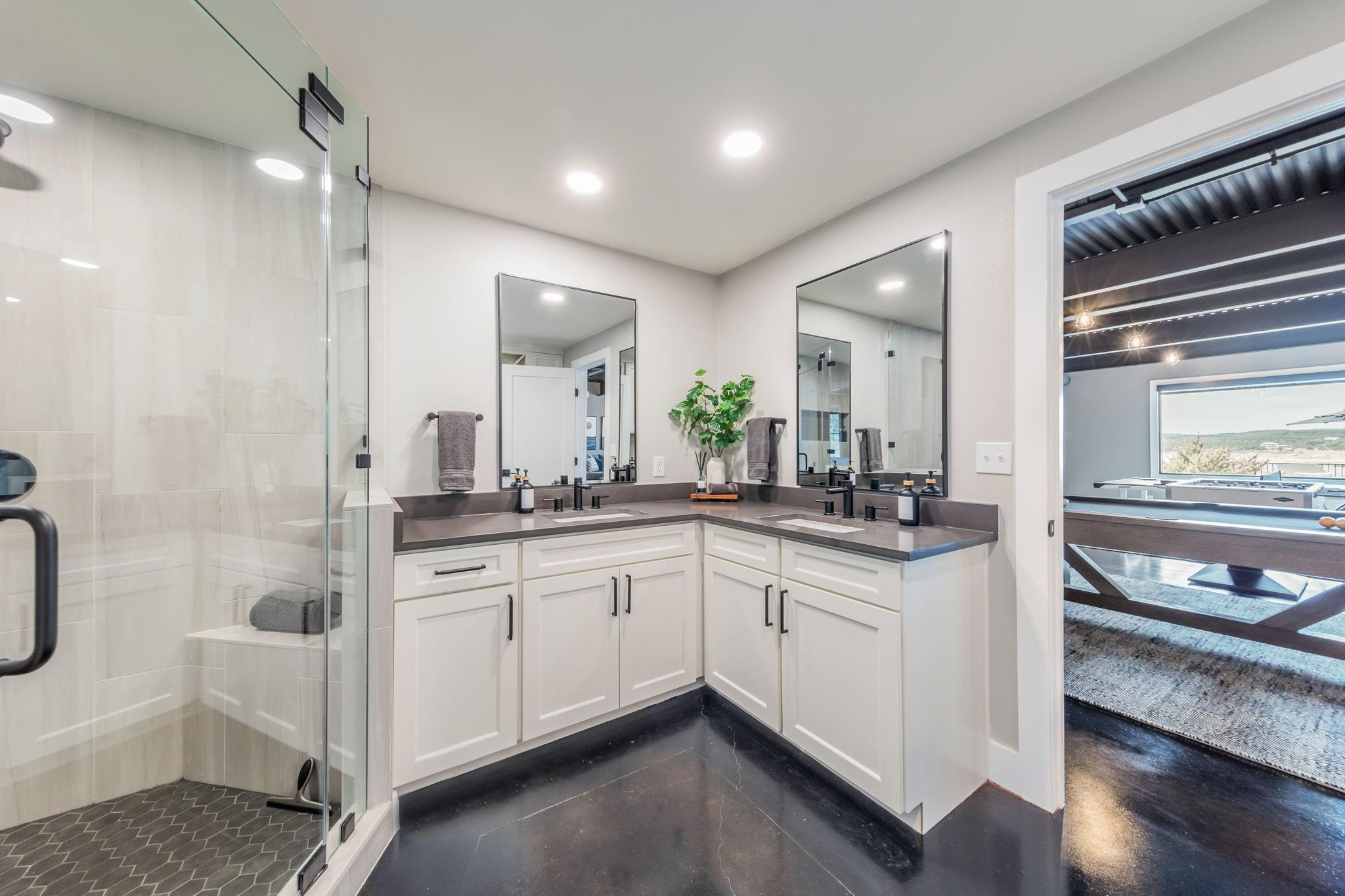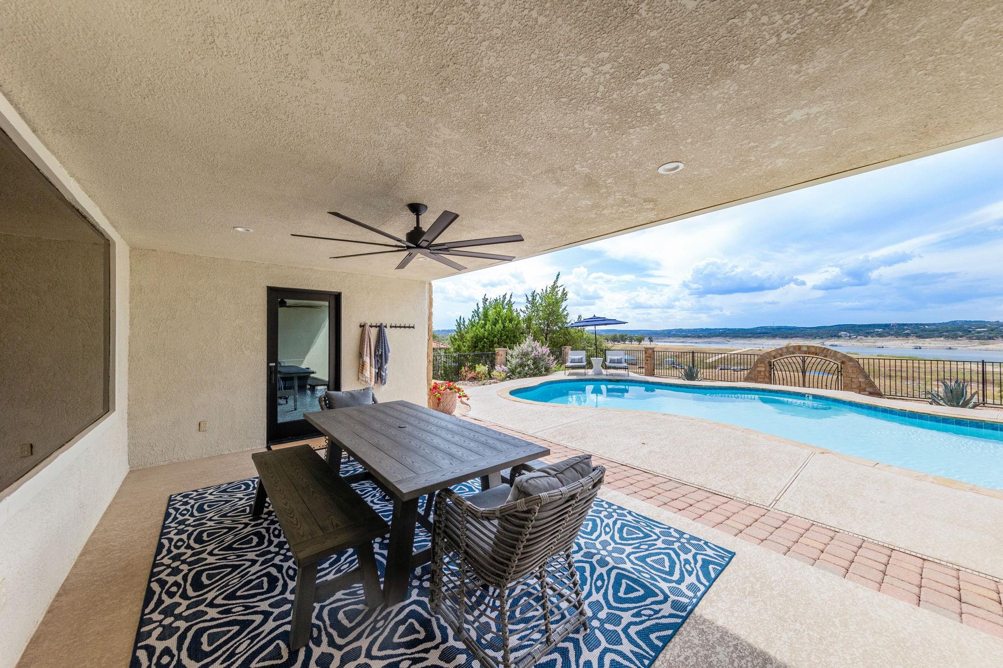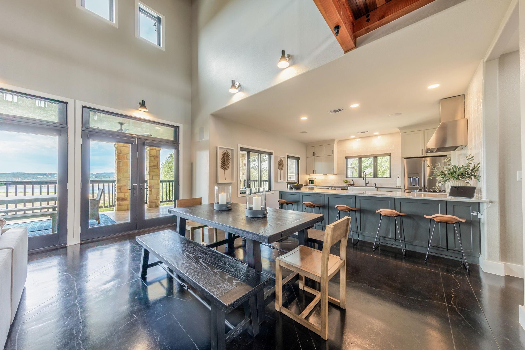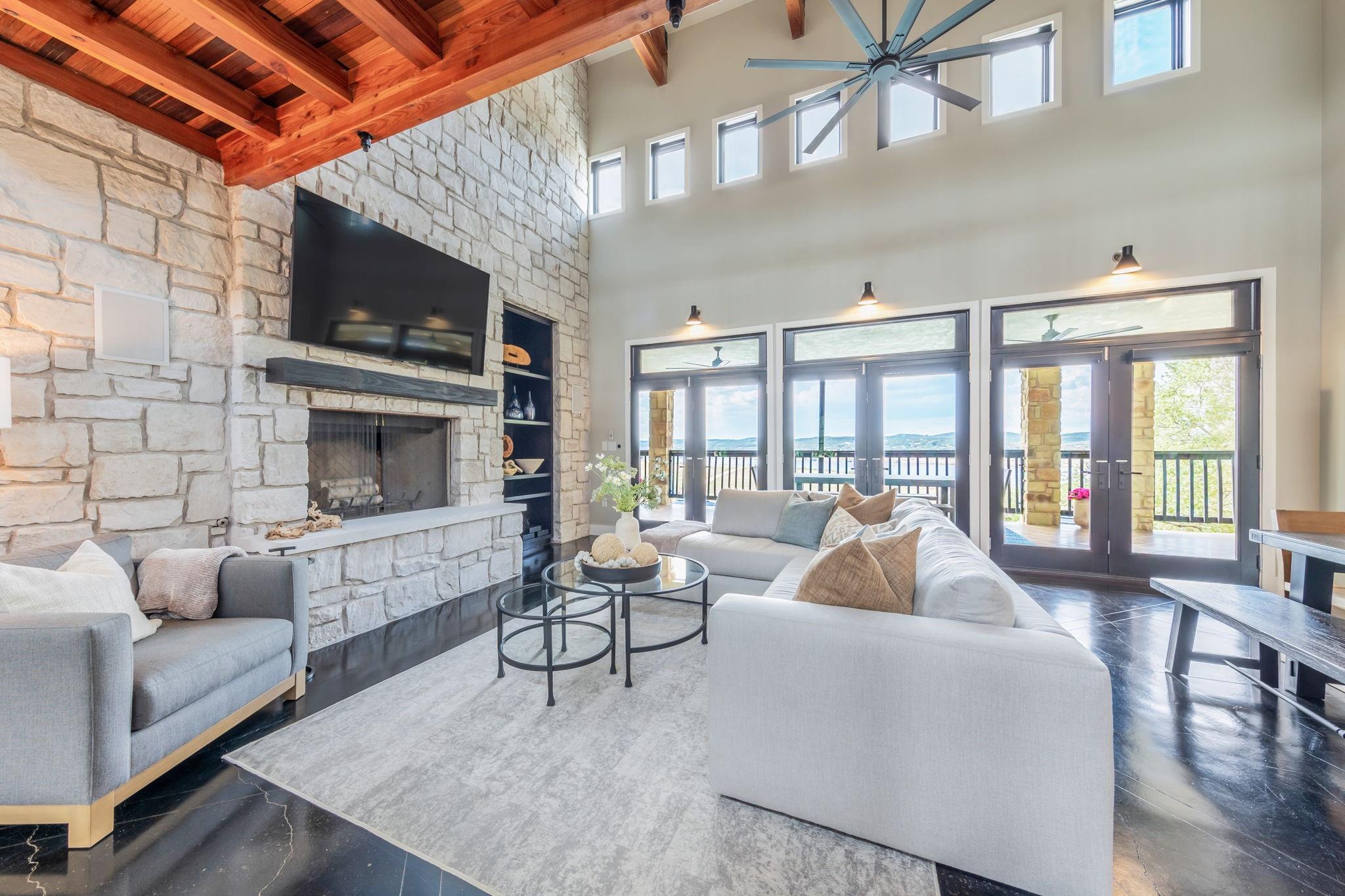 STR'S ALLOWED - Luxury Lakeside Home Experience the ultimate retreat in Point Venture! This stunning lakeside home offers breathtaking panoramic lake views and world-class amenities, including one of Texas' top nine-hole golf courses. This expansive 4,400 sq. ft. home sits on a sprawling 1.7-acre lakefront lot. The gourmet kitchen is a chef’s dream, boasting a new GE Cafe Stove, fridge, and dishwasher, custom wood cabinets, and a walk-in pantry/laundry room, all with a view of the lake. The open living area, highlighted by a beautiful fireplace and a wall of glass doors/windows, brings the dramatic lake scenery indoors. The luxurious primary suite offers a walk-in closet, built-in wood cabinets, and a spa-like ensuite with a soaking tub, huge walk-in shower, and double vanities. Step out onto the 930 sq. ft. second-floor balcony with an outdoor fireplace for a perfect evening under the stars. Each secondary bedroom has its own covered patio with lake views, and the fourth bedroom is equipped with 2 sets of built-in twin bunk beds and an ensuite bathroom. Outdoor living is unparalleled with a 240 sq. ft. covered patio, heated pool, hot tub, built-in propane grill, and fire pit, all surrounded by majestic Live Oak trees. Additional features include a 2.5-car garage, surround sound, commercial-grade fiber internet, WIFI thermostats, three HVAC systems, two 240-A tankless water heaters, a metal roof, and stucco exterior. Located just an hour from downtown Austin, this home offers convenient access to the city’s vibrant culture. The HOA provides exclusive access to a 60-acre waterfront park with a boat ramp, disc golf, playground, golf course, sports bar, swimming pool, tennis and pickleball courts, marina, and a live music lakefront bar/restaurant. Updated in 2022 with a $200K remodel, this home is ready for you to enjoy!
