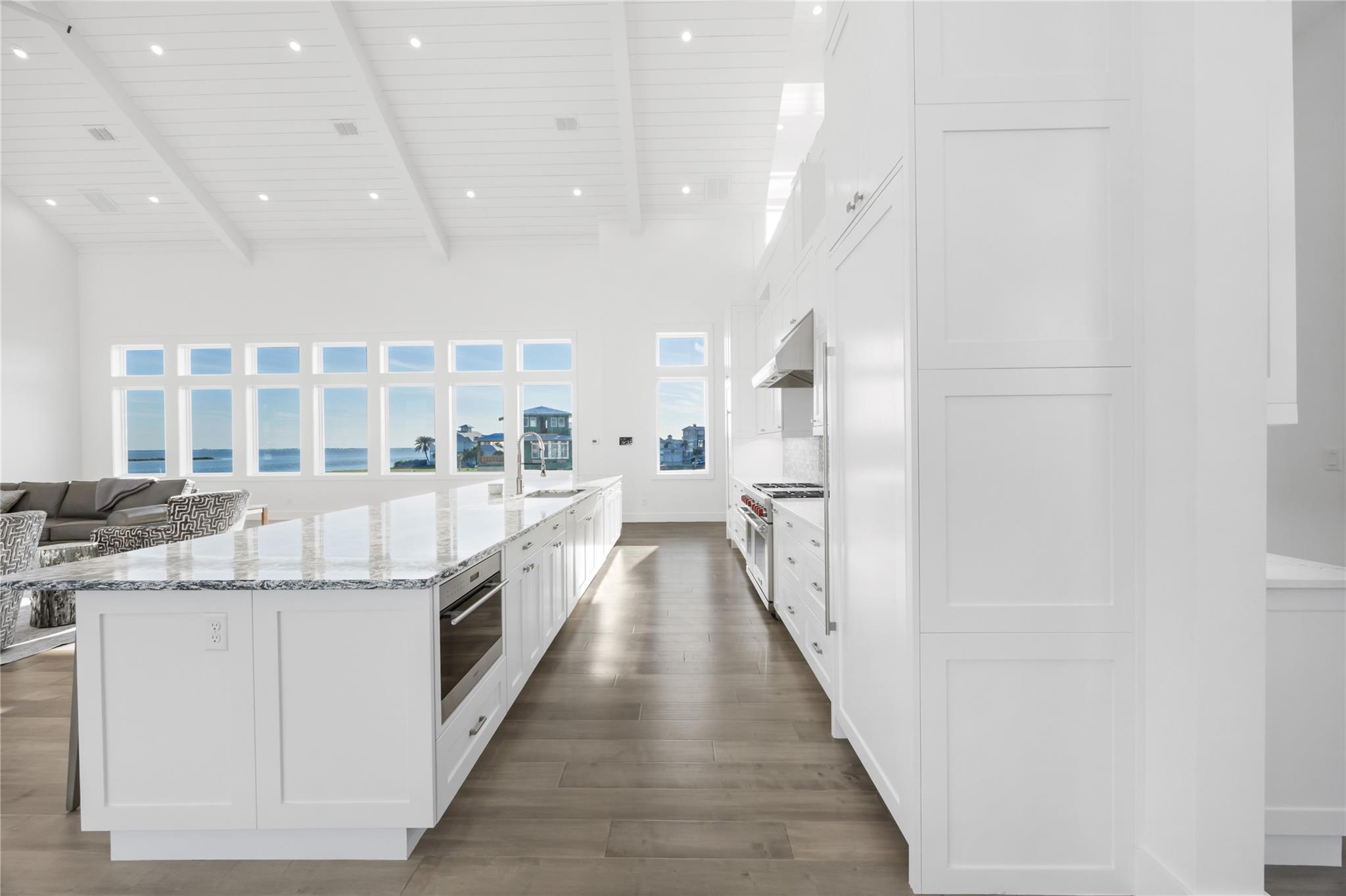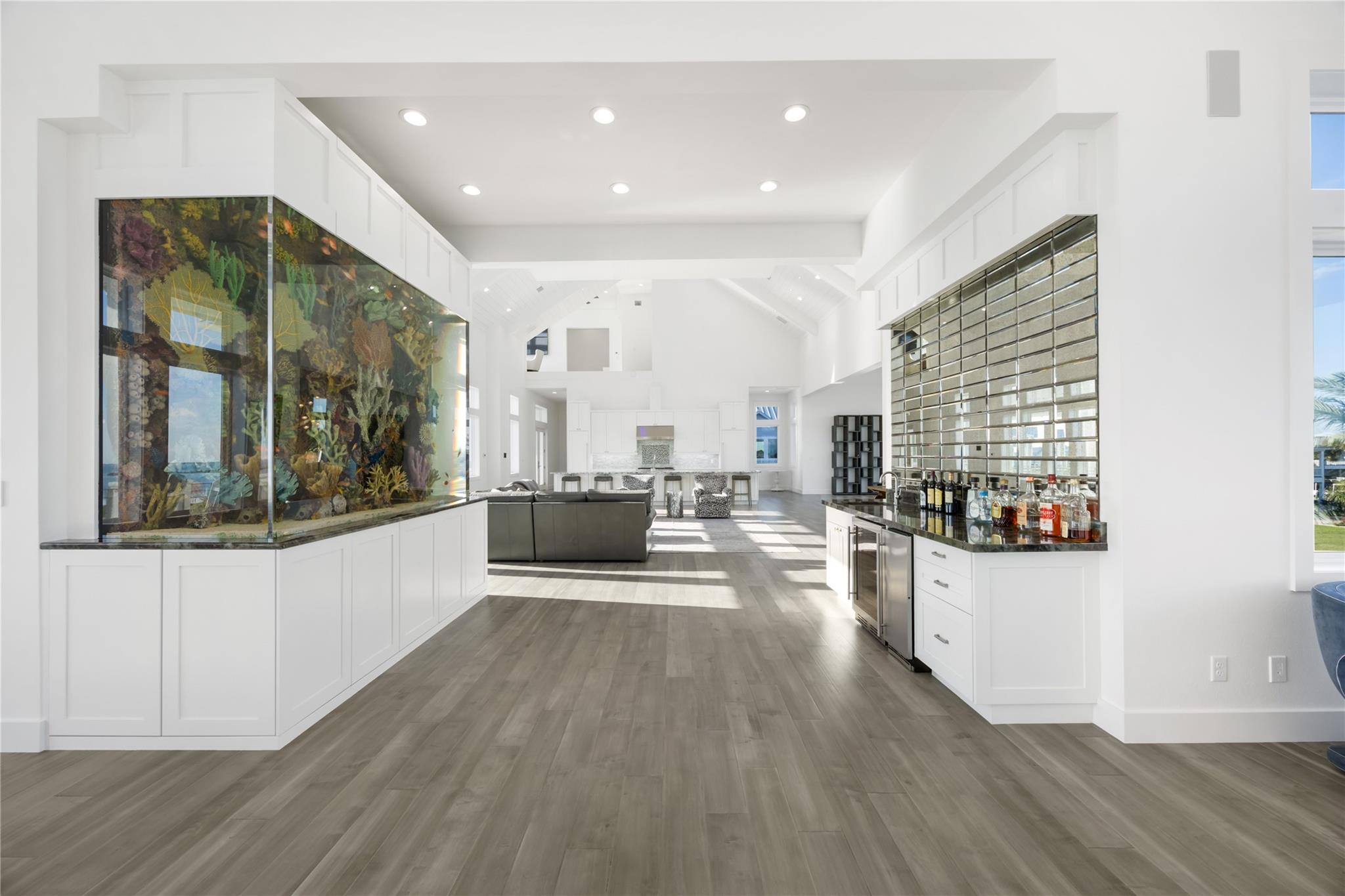 The Last Resort is a landmark waterfront estate offering an unparalleled luxury lifestyle on the Texas Coastal Bend. Spanning two waterfront lots with approximately 180 feet of coastline, this brand-new construction is positioned directly on the bay in Rockport, Texas. Crowning the home is a fourth-level observation deck—the highest vantage point in Rockport—providing uninterrupted 360-degree views of the town, bay, and coastline. A dramatic drive-up leads to a striking two-story glass foyer, immediately framing expansive water views. The main living areas feature a vaulted, beamed two-story living room with walls of windows, filling the home with light and coastal scenery. The kitchen and living space flow seamlessly together, anchored by a substantial island, Wolf range, and a fully equipped catering kitchen designed for large-scale entertaining. A custom 1,000-gallon aquarium serves as a unique architectural focal point. Offering approximately 8,000 square feet of interior living space, the home includes a luxurious primary suite with spa-like bath and private deck with sweeping views, two guest suites, two bunk rooms, and a separate guest casita. Oversized bathrooms throughout feature multiple sinks and generous counter space for everyday comfort. Designed for life on the water, the property includes a climate-controlled tackle and fishing room with a 500-pound ice maker and a $250,000 custom dock with two boat lifts and Azek decking. Four garages provide ample storage for vehicles, watercraft, and equipment. Outdoor living spans over 4,000 square feet and includes a heated pool and spa, multiple fire features, and a fully equipped outdoor kitchen. Crestron whole-home automation is integrated throughout. Offered fully furnished and turnkey, including all furniture, artwork, and appliances. Located within the Islands of Rockport, a private waterfront community with resort-style amenities.