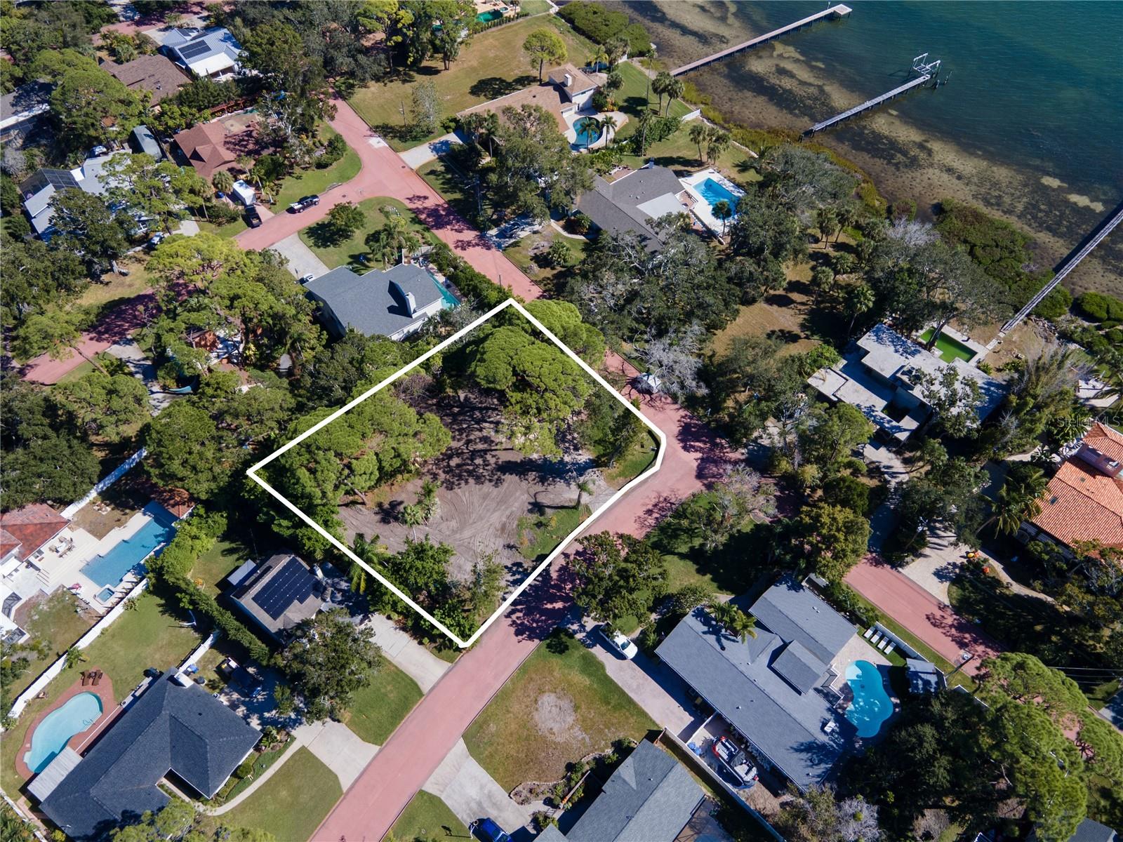 A once in a generation opportunity is NOW to create the home of your dreams in the iconic and picturesque Pink Streets of St. Petersburg. For the first time in over 30 years, one of the largest land parcels in this tranquil and coveted neighborhood is being offered for consideration. Situated at the southernmost tip of Pinellas County, and just across the street from the sparkling open waters of Tampa Bay, this estate-sized corner lot spans almost 1/2 acre, and is framed by the historic coral-pink winding streets and impressive and lush tree canopies that define the community. The lot encompasses over 19,105 square feet of land, which is truly rare-to-find in St. Petersburg. The expansive size of the parcel (156’ x 120’) presents a unique opportunity for discerning builders, architects and future owners to design and create a residence of unparalleled creativity and grandeur, perfectly placed in this elegant and peaceful setting. The lot’s generous size provides flexibility for thoughtful design in scale and style in this neighborhood known for it’s distinctive aesthetic and charm. The Pink Streets community was developed in the early 1900s, and is celebrated for its rich history and iconic winding concrete pastel-pink streets, dotted with magnificent homes of varied architectural styles. It is truly a hidden gem. The lifestyle here is serene and elegant, with easy walkability to waterfront views and parks overlooking the Skyway Bridge, including Katherine B. Tippetts Park, the Tocobaga Indian Mounds and Bay Vista Park with boat ramp, playground and recreation facilities. The location is superb, offering easy access to both Tampa and Sarasota and multiple airports, and just a few minutes drive to bustling downtown St. Petersburg, and our gorgeous award-winning Gulf Coast beaches. A Buildable Lot Letter has been secured from the City of St. Petersburg. The lot is located in the NS-2 zoning district, and the property in its current configuration qualifies for a new build of a single family estate plus an accessory dwelling unit. Variances to adjust the current lot to accommodate for additional structures or individual homes may be pursued with the City by the future developer or owner. Buyers to verify all building and permitting details directly with the City of St. Petersburg. Listing agent and brokerage make no guarantees regarding future development approvals or variance outcomes. Don’t miss this truly rare opportunity to build in one of St. Petersburg’s most treasured neighborhoods.