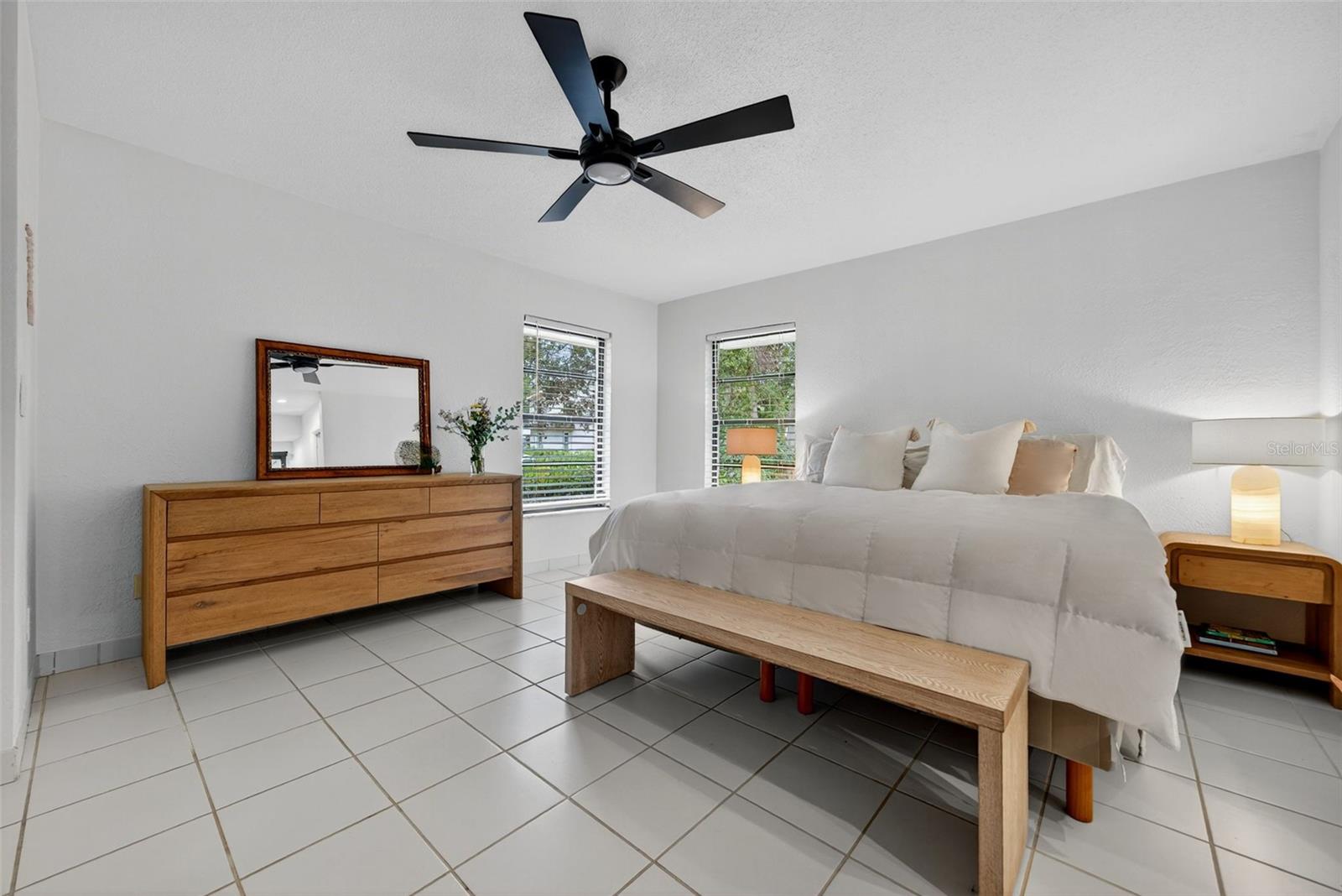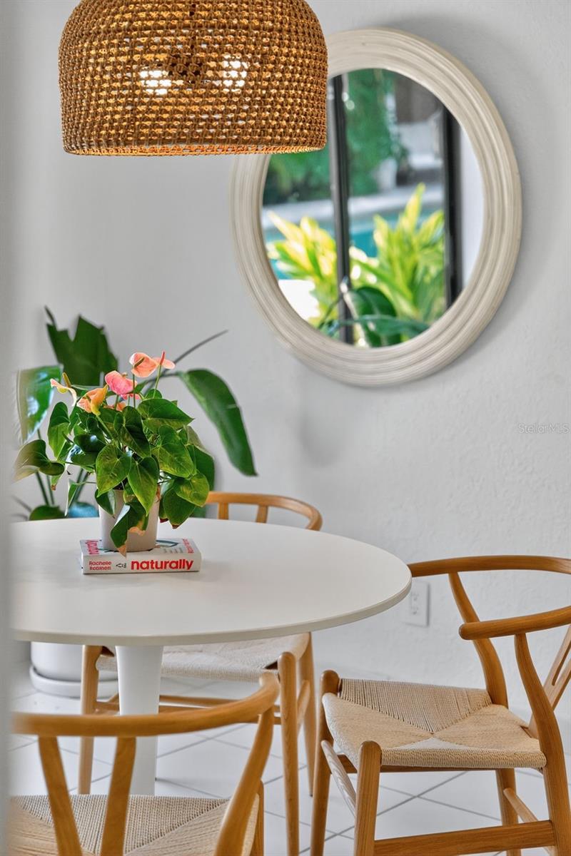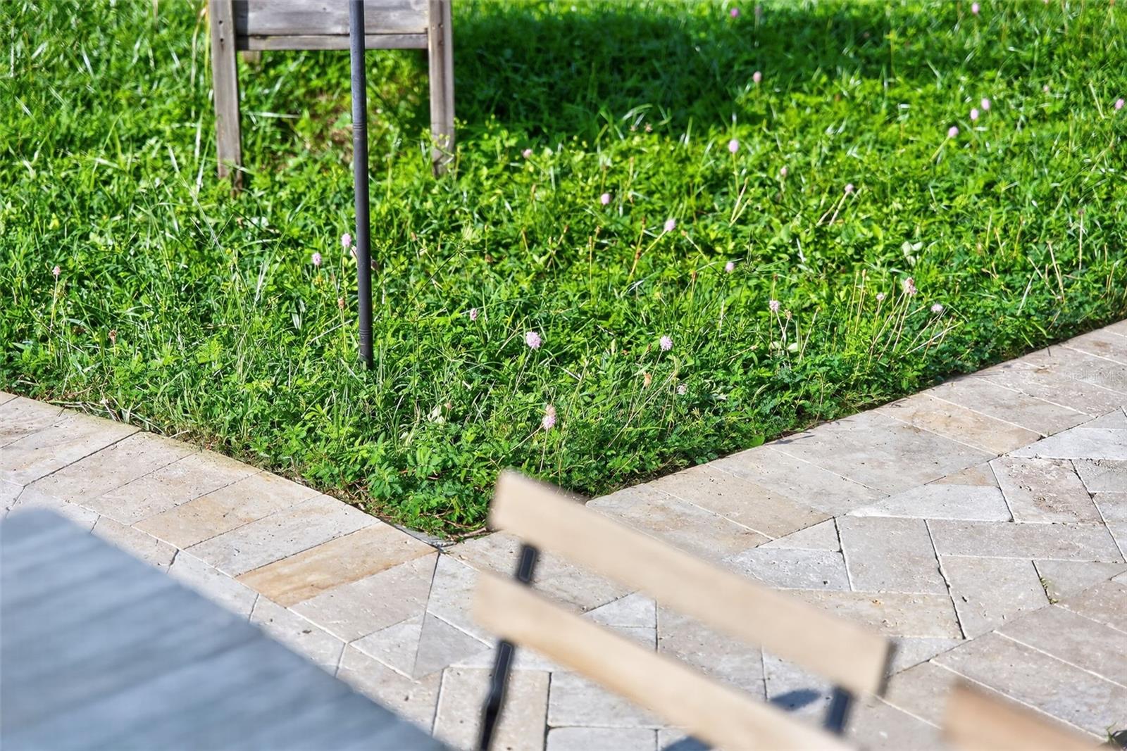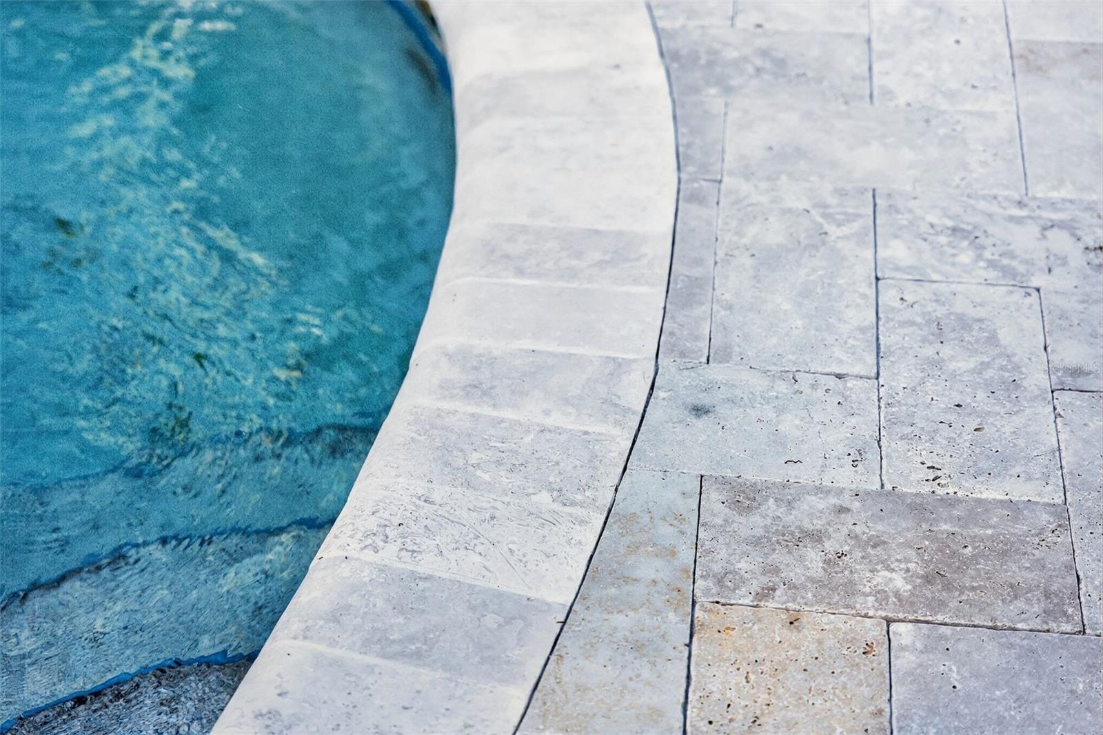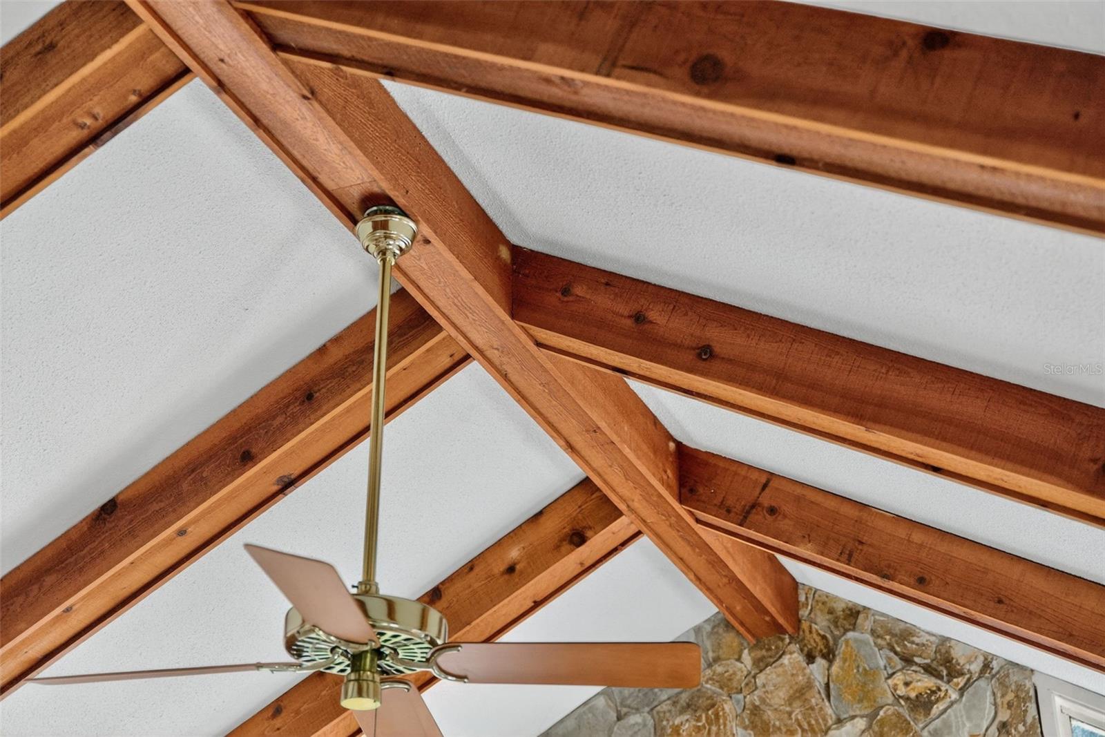 Inside, you feel one with nature with the exposed wood beams in the vaulted living room, perfectly framed around a fireplace where natural light pours in throughout the day. The thoughtful layout includes four bedrooms each with it's own walk-in closet, two and a half baths, a downstairs primary suite, and a two-car garage. Outdoors, travertine pavers add to the natural element around the salt-water pool, a tropical oasis, where flora and fauna thrive. The fenced yard offers space where native sunshine mimosa blooms with plenty of room for gardening and entertaining. You'll find plenty of Florida native landscaping for easy maintenance.