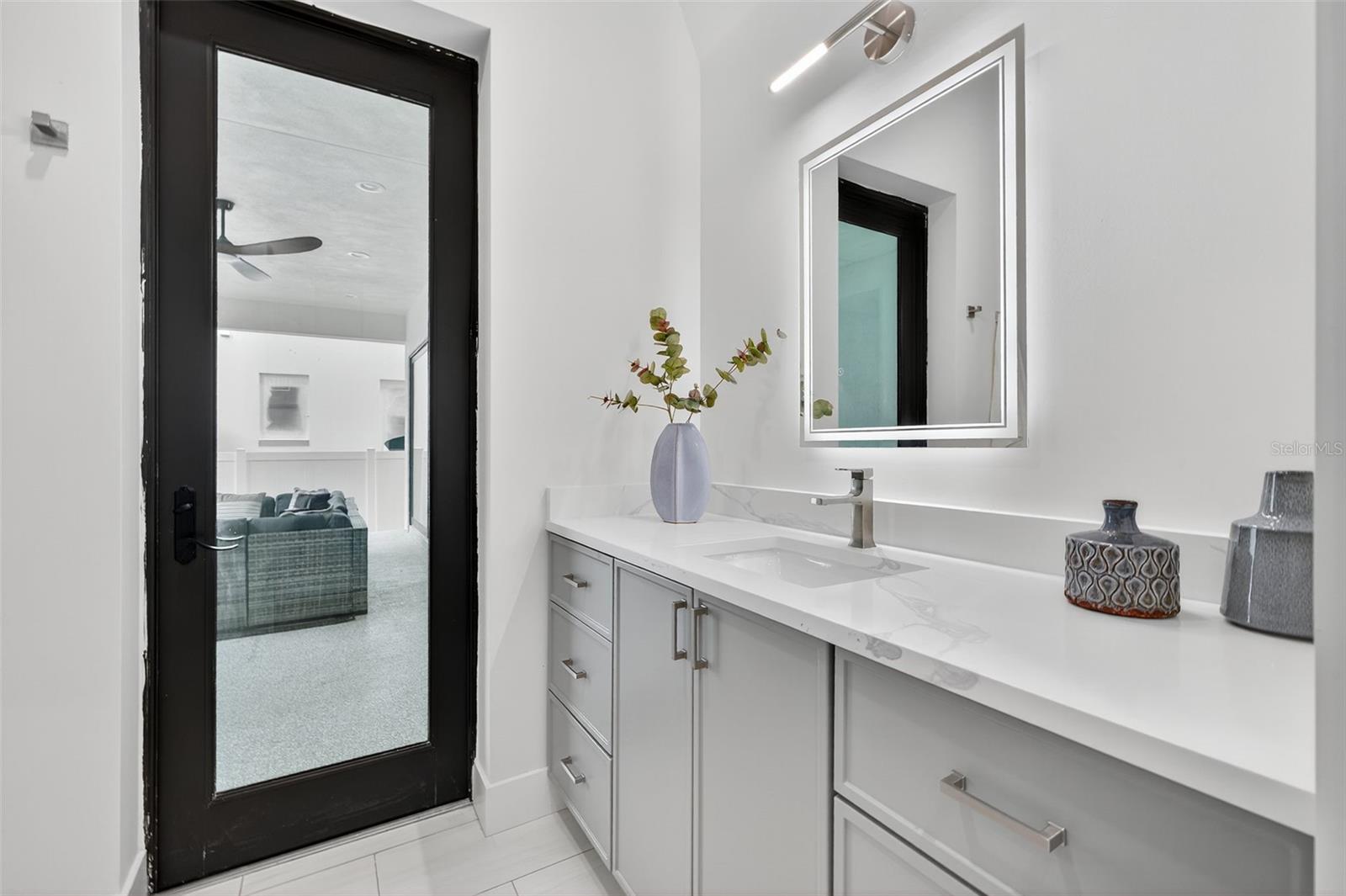 Step onto the 24’ x 11’ covered lanai to enjoy Gulfport’s breezy evenings and a beautiful yard with ample room to add a pool and spa. Rear alley access leads to the attached two-car garage, conveniently positioned next to a mudroom and full bath—perfect for guests or future poolside use.