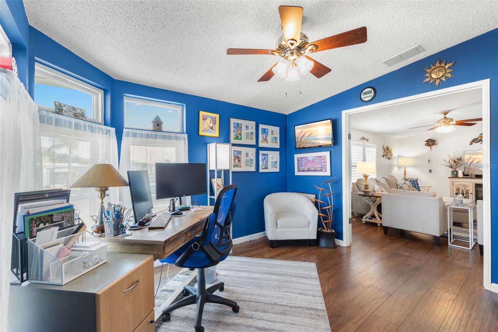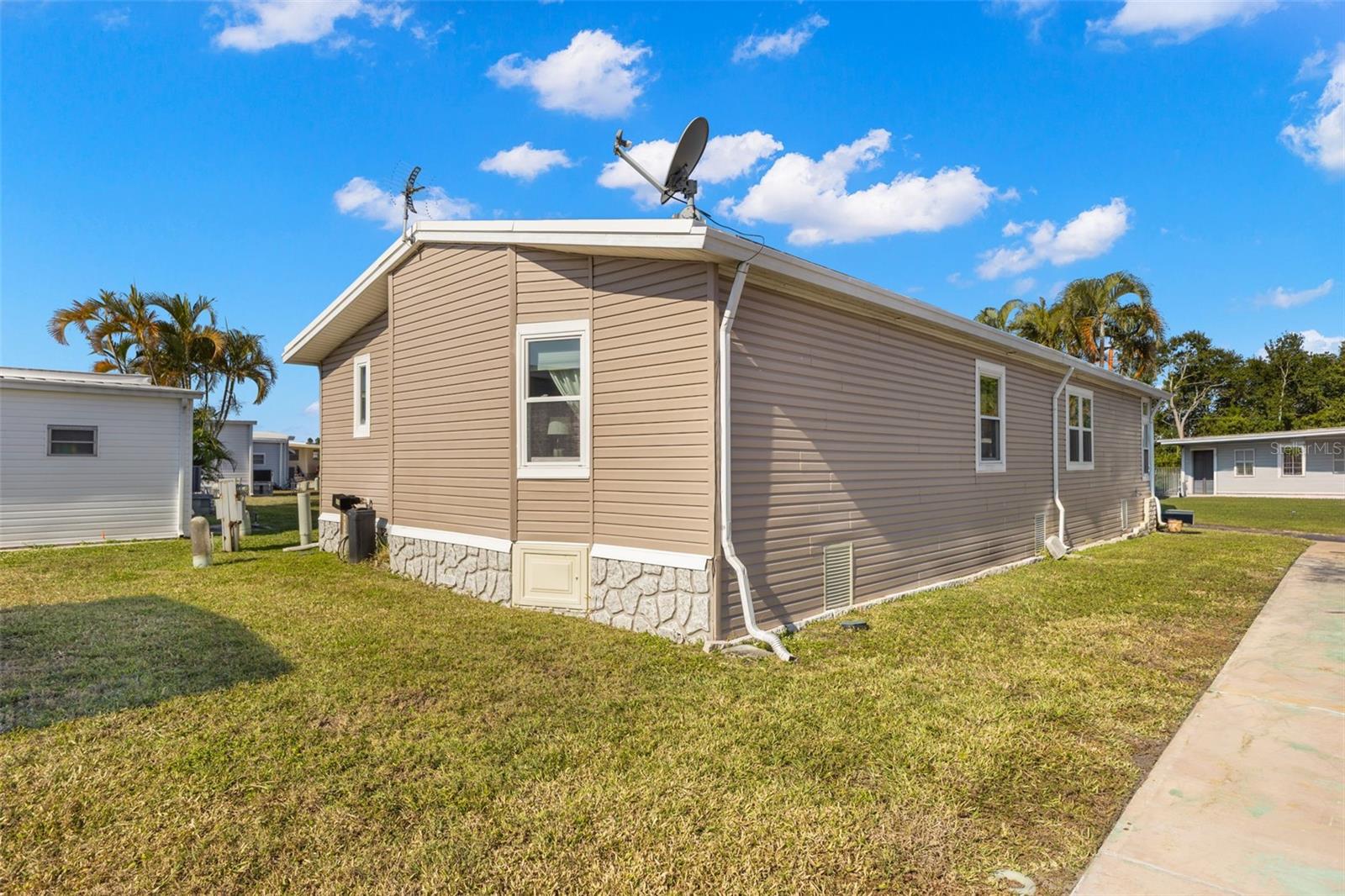 Tired of viewing homes that need to be remodeled? You will appreciate this 1997 two bed/two bath/den or office home that has been well cared for and upgraded. No flooding! With almost 1,400 sq. ft of living space, this property features 2022 HVAC system, 2022 water heater, 2008 TPO roof over shingle, updated double pained windows with 2024 double paned windows on east side of home. Beautiful kitchen with eat-in space, stainless appliances, lots of counter and cabinet space for the cook who appreciates prep space! Beautiful wide-plank laminate flooring throughout with tile in baths. Large living/dining/den area to entertain family and friends. Primary bedroom suite has full wall of closets and bath with walk-in shower. Large guest bedroom with guest bath located across the hall for easy access. Guest bath has tub/shower combo. Utility room with washer and dryer that leads to 250 sq. ft screened lanai with mature landscaping keeping the area cool and private. Irrigation system. Large shed for extra storage. Side-by-side parking with extra space for golf cart. Comes partially furnished. Located close to community waterfront park to enjoy the dolphin and manatee. Price includes share for the lot and ownership in the co-op. Annual termite protection with Home Guard. Owner has three-year paid flood insurance with two years remaining. Americana Cove is the premier 55+ factory-built housing community in the county and is located only 10 mins from popular downtown St. Petersburg, 20 mins to two airports and 5 mins to 4th St shopping, dining and many grocery stores. Two pets (dogs or cats) up to 35 pounds are welcomed! Renting is allowed with 2-month minimum. Low monthly maintenance fee of $380 includes water, sewer, trash pick up, lawn mowing, 24 hr manned gate, private streets and all amenities including 2 boat ramps, kayak launch, clubhouse, heated pool, fitness center, billiards and so much more! This friendly community of 650 homes is waiting for you!