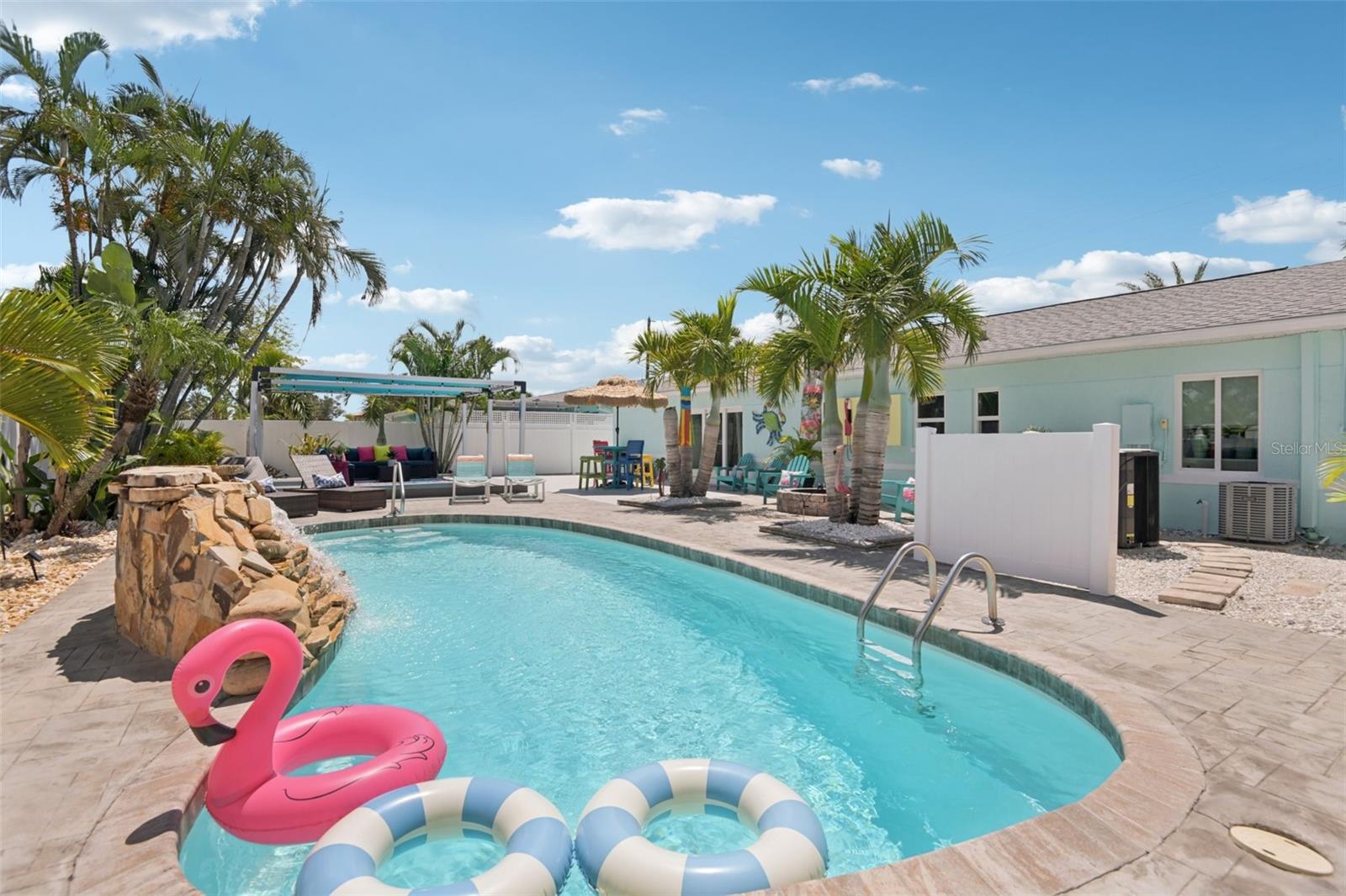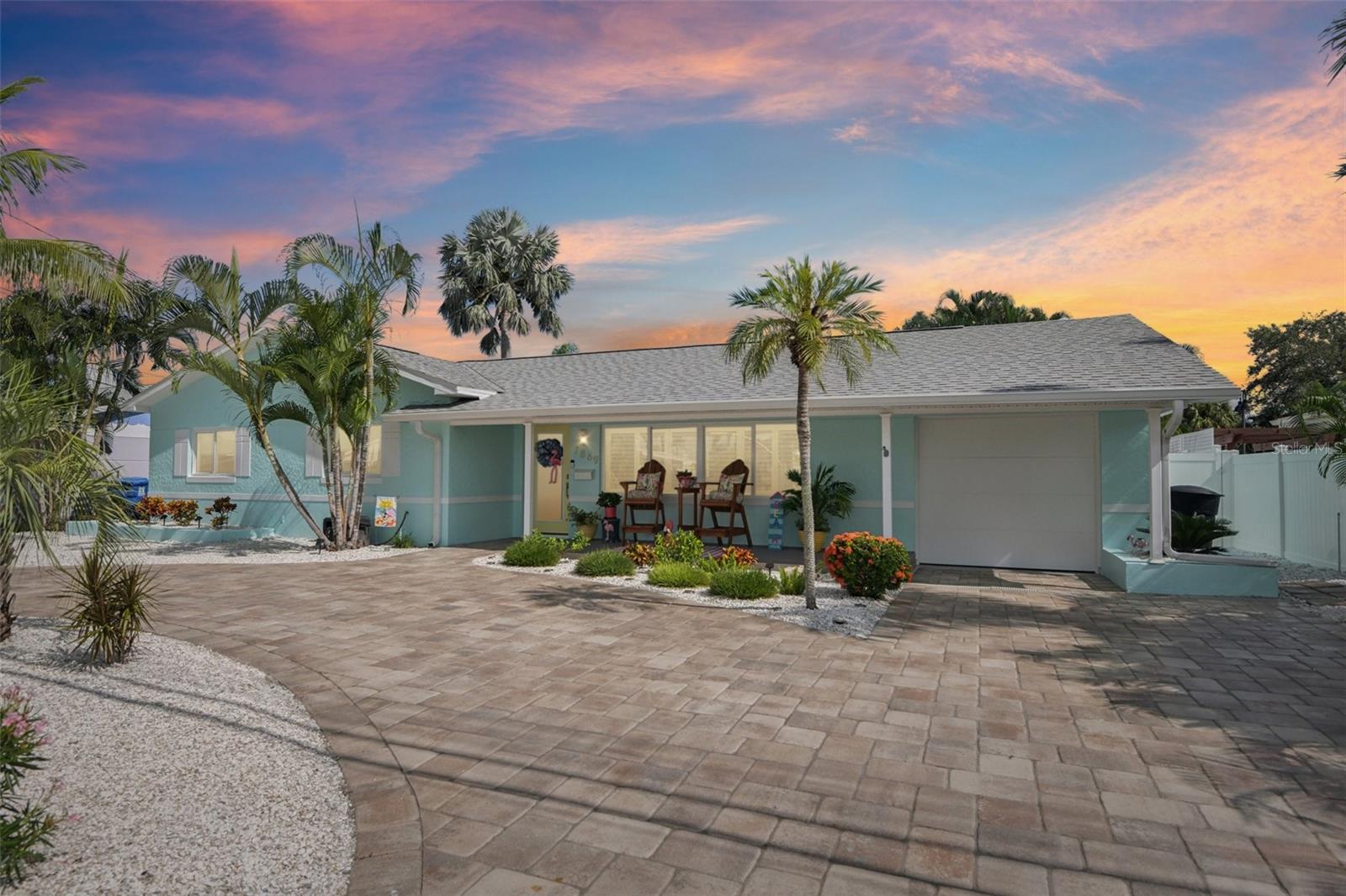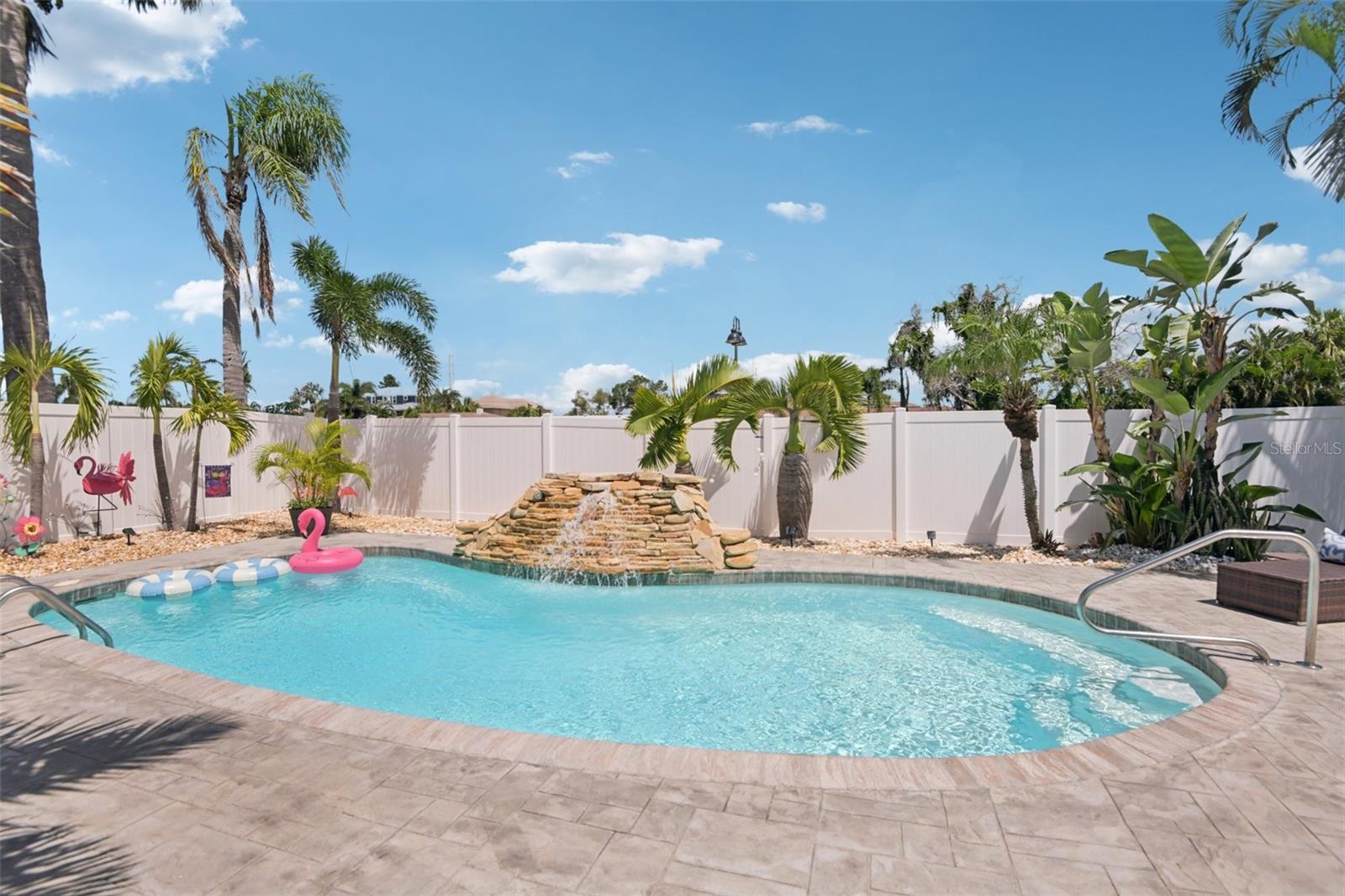 Motivated and ready to sell this beautifully renovated 3BR/2BA pool home in the coveted Causeway Isles— available and move-in ready! This coastal retreat has undergone a complete transformation with recent improvements, making it a truly turn-key property. Major updates include brand-new hurricane impact windows, doors, and a 3-panel slider, a new roof with hurricane straps, soffits, and enhanced drainage. The exterior has just been freshly painted, and the paver driveway, insulated garage door, composite front porch, and back patio add lasting curb appeal. Step inside to a light-filled open layout with luxury vinyl plank flooring, new drywall, paint, baseboards, hardware, and modern fixtures throughout. The kitchen showcases granite countertops, new cabinets, and Samsung stainless steel appliances, while the bathrooms feature stylish new vanities, sinks, faucets, and contemporary finishes. Even the garage boasts epoxy waterproof flooring for durability. The backyard is a private oasis designed for entertaining—complete with a resurfaced saltwater pool featuring a heater and waterfall, an outdoor TV on the pool deck, lush palm trees framed by a vinyl privacy fence, and a fire pit for evening gatherings. The landscaping has been thoughtfully zero-scaped with shells for a low-maintenance, tropical vibe. Additional peace-of-mind upgrades include a new pool motor and filter, a new hot water heater, and reclaimed water piping for efficiency. Perfectly located just 3 miles from the shops, dining, and nightlife of John’s Pass, and only minutes from the beaches and downtown St. Pete, this property blends style, comfort, and durability in one of the area’s most desirable waterfront communities. Homes this updated and meticulously cared for in Causeway Isles rarely last—don’t miss your chance to own a true Florida oasis. Make it yours today!