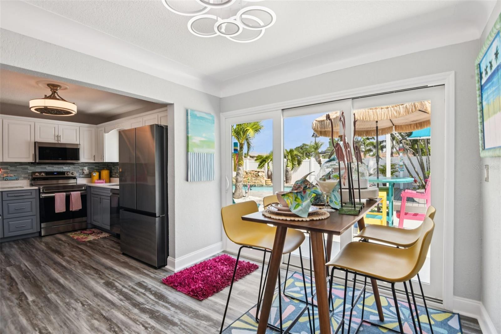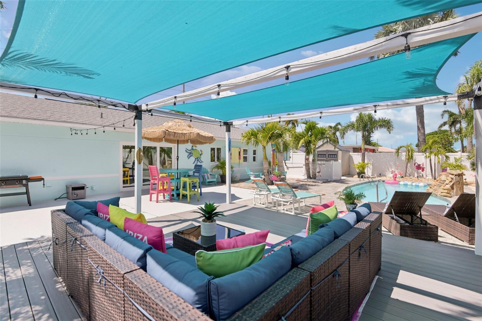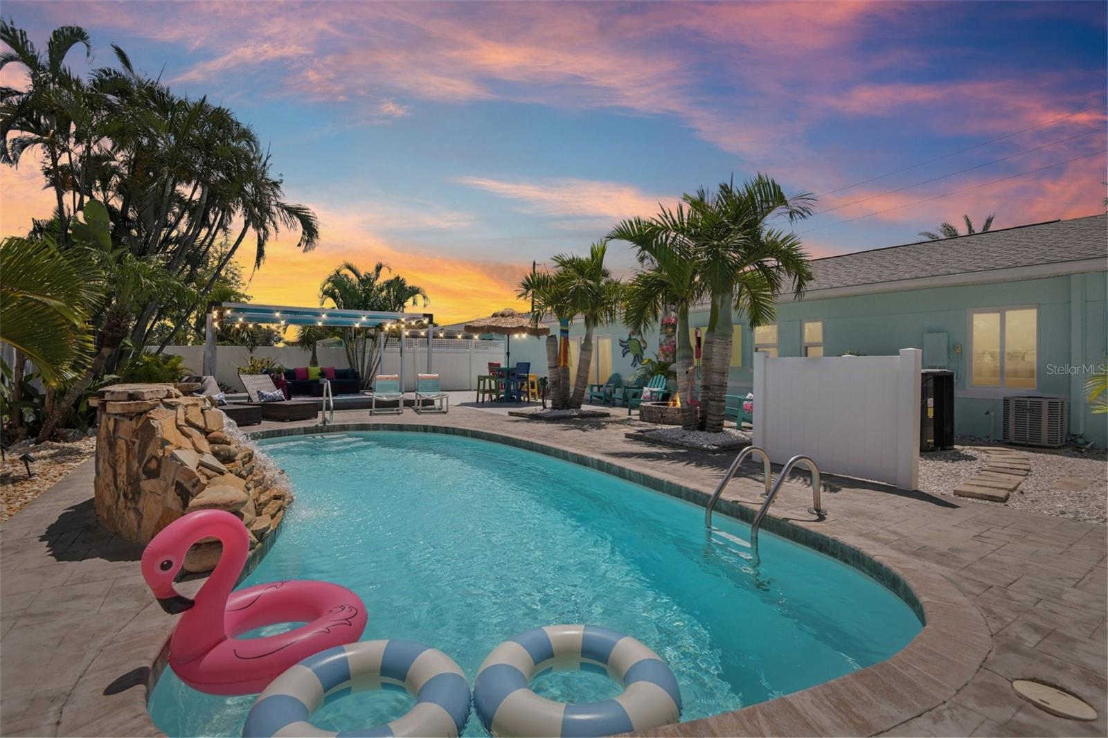 Motivated and ready to sell this beautifully renovated 3BR/2BA pool home in the coveted Causeway Isles— available and move-in ready! This coastal retreat has undergone a complete transformation with recent improvements, making it a truly turn-key property. Major updates include brand-new hurricane impact windows, doors, and a 3-panel slider, a new roof with hurricane straps, soffits, and enhanced drainage. The exterior has just been freshly painted, and the paver driveway, insulated garage door, composite front porch, and back patio add lasting curb appeal. Step inside to a light-filled open layout with luxury vinyl plank flooring, new drywall, paint, baseboards, hardware, and modern fixtures throughout. The kitchen showcases granite countertops, new cabinets, and Samsung stainless steel appliances, while the bathrooms feature stylish new vanities, sinks, faucets, and contemporary finishes. Even the garage boasts epoxy waterproof flooring for durability. The backyard is a private oasis designed for entertaining—complete with a resurfaced saltwater pool featuring a heater and waterfall, an outdoor TV on the pool deck, lush palm trees framed by a vinyl privacy fence, and a fire pit for evening gatherings. The landscaping has been thoughtfully zero-scaped with shells for a low-maintenance, tropical vibe. Additional peace-of-mind upgrades include a new pool motor and filter, a new hot water heater, and reclaimed water piping for efficiency. Perfectly located just 3 miles from the shops, dining, and nightlife of John’s Pass, and only minutes from the beaches and downtown St. Pete, this property blends style, comfort, and durability in one of the area’s most desirable waterfront communities. Homes this updated and meticulously cared for in Causeway Isles rarely last—don’t miss your chance to own a true Florida oasis. Make it yours today!