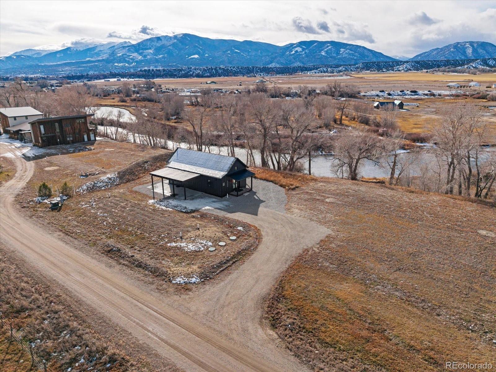 8995 Salix Road, Salida Colorado. Modern riverfront living on one of the best stretches of the Arkansas River. This custom home sits on a wide elevated bend of the river with roughly 240 feet of private frontage and unobstructed views of the Collegiate Peaks. The setting is quiet, open, and soaked in natural light, backed by cottonwoods and big sky. It feels private without feeling isolated. The home is polished, efficient, and built to frame the views. Floor to ceiling glass pulls the mountains and river straight into the living space. Concrete floors, vaulted ceilings, exposed beams, and a bold clean design give the interior a modern lodge feel. The architecture is fully custom with high end tile, quality fixtures, and a metal architectural beam that anchors the kitchen. The kitchen blends style and function with wood countertops, matte cabinetry, high quality appliances including the red Smeg fridge, and an enclosed pantry that keeps the space clean. The layout is simple and smart with one bedroom, one bath, a walk-in closet, and an open concept great room that wastes zero space. Comfort features include air conditioning, full size stackable washer and dryer, water softener, and custom window coverings throughout. Outside, the covered patio and wrap of windows give you a year-round connection to the river and surrounding landscape. The grounds include a large professionally installed wildflower garden that brings color and movement all season long. The lot is nearly flat up top with a gentle falloff to the water, offering natural privacy and a strong building position for future expansion. The septic is engineered for two homes, and the property includes plans for a larger residence. Power, well, and infrastructure are already in place. The location is minutes to Salida yet feels like a world of its own. A rare riverfront property with clean modern design, big views, and room to grow.