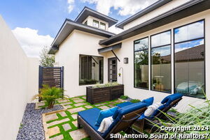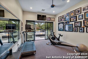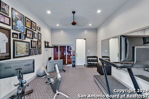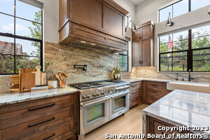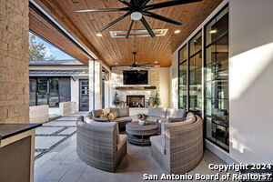 Exterior Features :Patio Slab, Covered Patio, Bar-B-Que Pit/Grill, Gas Grill, Privacy Fence, Wrought Iron Fence, Sprinkler System, Double Pane Windows, Has Gutters, Special Yard Lighting, Mature Trees, Dog Run Kennel, Stone/Masonry Fence, Outdoor Kitchen