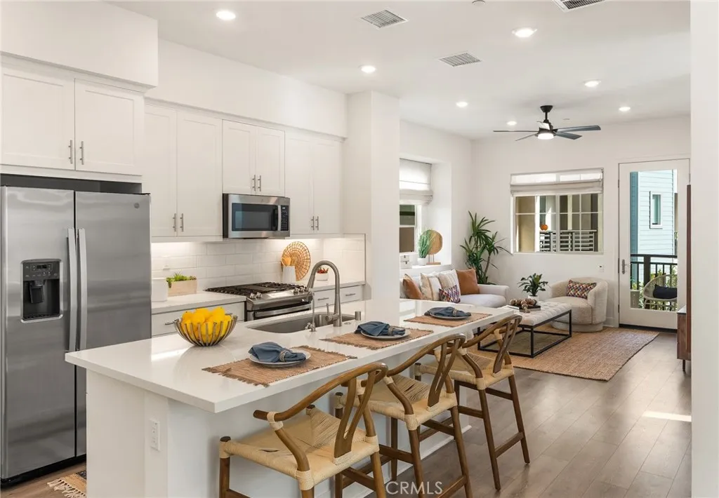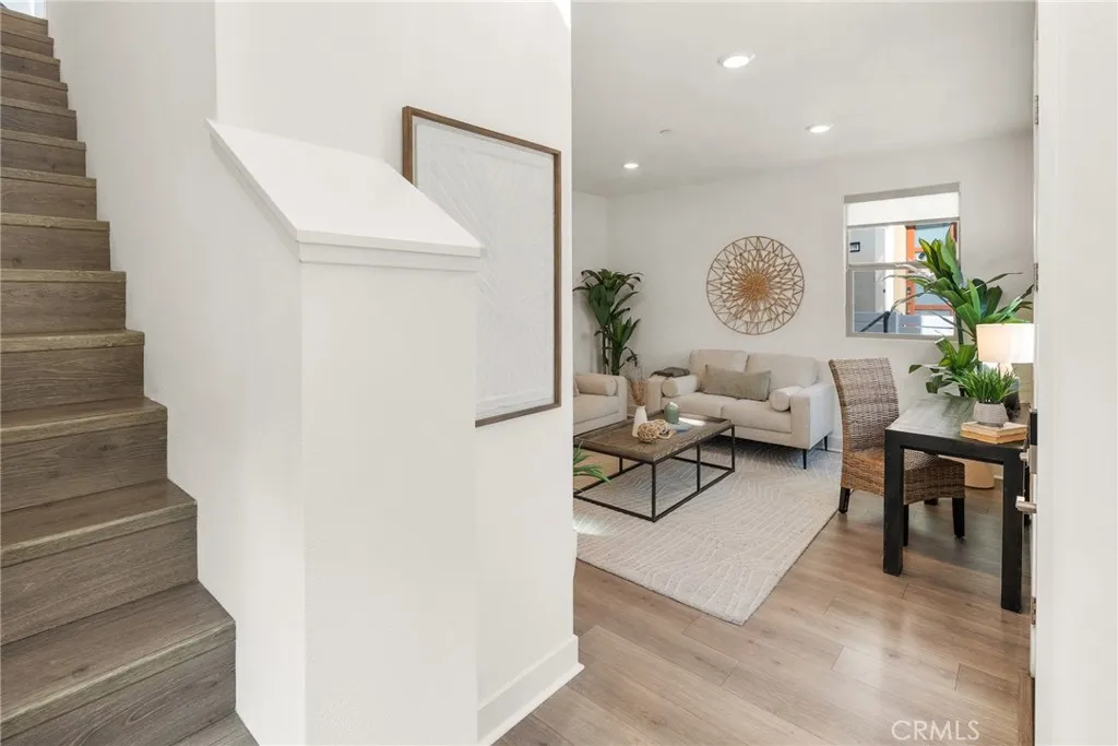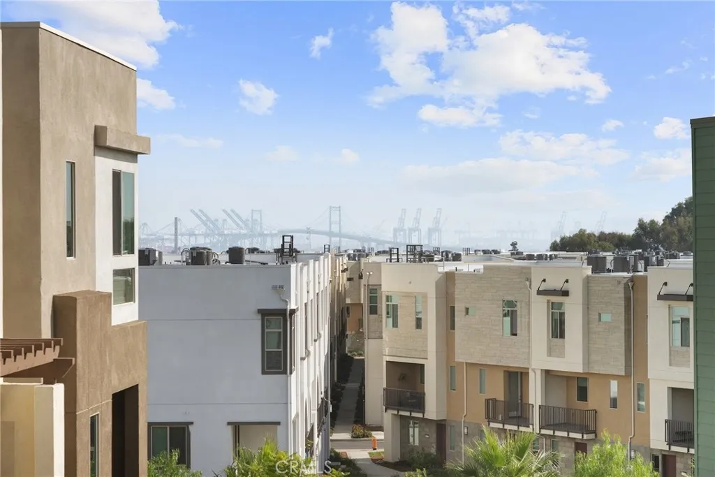RARE ANGLED LOT | 1 OF 3 IN HARBOR POINTE | BUILT 2023 Step inside a home designed for convenience and coastal enjoyment in the gated community of Ponte Vista, adjacent to Rancho Palos Verdes. Built in 2023, this modern 3-bedroom, 2.5-bath home delivers advantages rarely found in older South Bay homes: up-to-date systems and energy-efficient design. It occupies a premium lot with a unique rotated orientation, 1 of only 3 within Harbor Pointe's 94-home neighborhood. Its angled placement creates practical separation from neighboring homes, enhancing natural light exposure while providing an inviting front courtyard, side storage, and greater privacy. Featuring over $80,000 in carefully selected upgrades, the 1,709 sq ft (BTV) interior showcases the home's functional elegance. LIVING & ENTERTAINING The home's tri-level floorplan creates distinct spaces for daily routines. Stylish RevWood plank flooring flows throughout, complemented by tile flooring in the primary and guest baths. The first floor features a flexible bonus room, ideal as a home office, guest quarters, or workout space. On the second level, the heart of the home naturally blends living, dining, and cooking spaces. The kitchen features Symphony Canvas cabinetry, quartz countertops, designer backsplash, and GE stainless appliances. A spacious island is perfect for everyday cooking or casual entertaining. This level also includes a laundry area with GE washer and dryer. RELAXATION & FUNCTION Upstairs, the owner's suite offers peekaboo views of the bridge and harbor from both the bedroom and walk-in closet. An art d