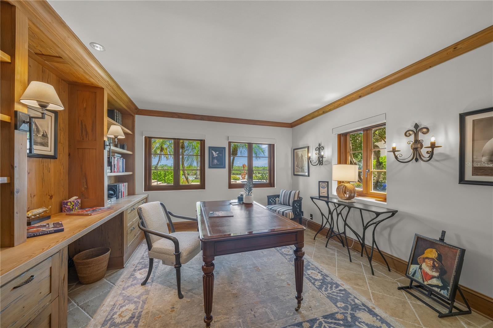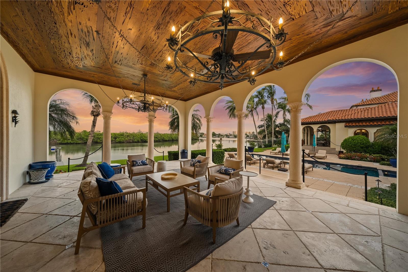 "Casa del Carnevale" This waterfront historic estate seamlessly merges history with modern luxury, offering views of Sarasota Waterway/Bay and a designated historic status. Situated in the prestigious St. Armands neighborhood of John Ringling Estates on St. Armands Key, Casa del Carnevale presents a rare opportunity to own an esteemed historical property. Offered for only the fifth time in its storied history, this exceptional estate combines Old World architectural charm with contemporary opulence. The home underwent an extensive renovation, with meticulous attention to detail and craftsmanship, utilizing top-tier materials and artisanship. Expanded from 4,000 to nearly 10,000 square feet under roof, and featuring over 7,800 square feet of air-conditioned space, Casa del Carnevale preserves its original charm while offering a reimagined layout that exceeds modern luxury standards. Set on three sprawling lots, 30,000+ square feet, the estate boasts 171 feet of waterfrontage, a private dock lift, a floating lift for jet skis and kayaks, and breathtaking views of Sarasota Waterway. The lush, meticulously designed tropical landscaping creates a private oasis that feels like you are walking in Selby Gardens on St. Armands. The residence includes five bedrooms and six and a half baths across two spacious levels with an elevator. Multiple terraces provide perfect outdoor retreats and entertaining areas, all complemented by stunning garden water vistas, a central courtyard, and an elegant 65' saltwater pool and spa with arched spraying fountains and iridescent glass tiles. Other luxury features include a three-car garage, elevator, nanny’s quarters, walk-in wine room, billiards room, office, and custom impact-glass arched windows designed to maximize unobstructed views. The chef’s kitchen boasts premium finishes, top-of-the-line appliances, a 5-Star La Cornue range and hood from France, featuring gas or electric ovens (kitchen art). Sub-Zero refrigerators, a Bosch dishwasher, a Miele microwave, a Miele built-in coffee machine, a stand-alone beverage refrigerator, and a stand-alone ice maker. Throughout the home, exposed beams, warm wood tones, natural stone, custom ironwork, Pecky Cypress wood throughout, and curated artwork create an inviting, sophisticated atmosphere. Offering furnished and instant enjoyment to create everlasting memories, Casa del Carnevale is a rare and exquisite blend of history, elegance, and modern comfort on one of Sarasota’s most coveted waterfront estates. EASY TO SHOW. CASA DEL CARNEVALE IS A MUST-SEE IN PERSON TO FULLY APPRECIATE.