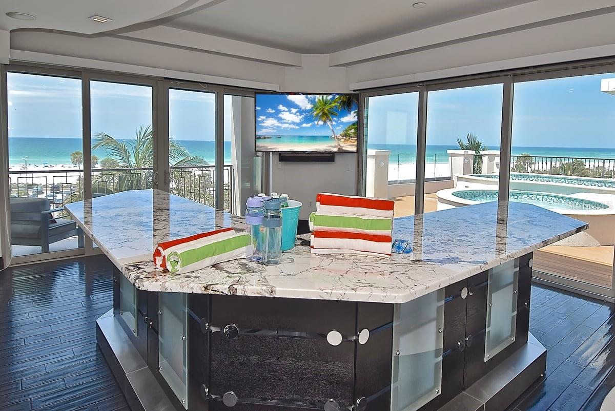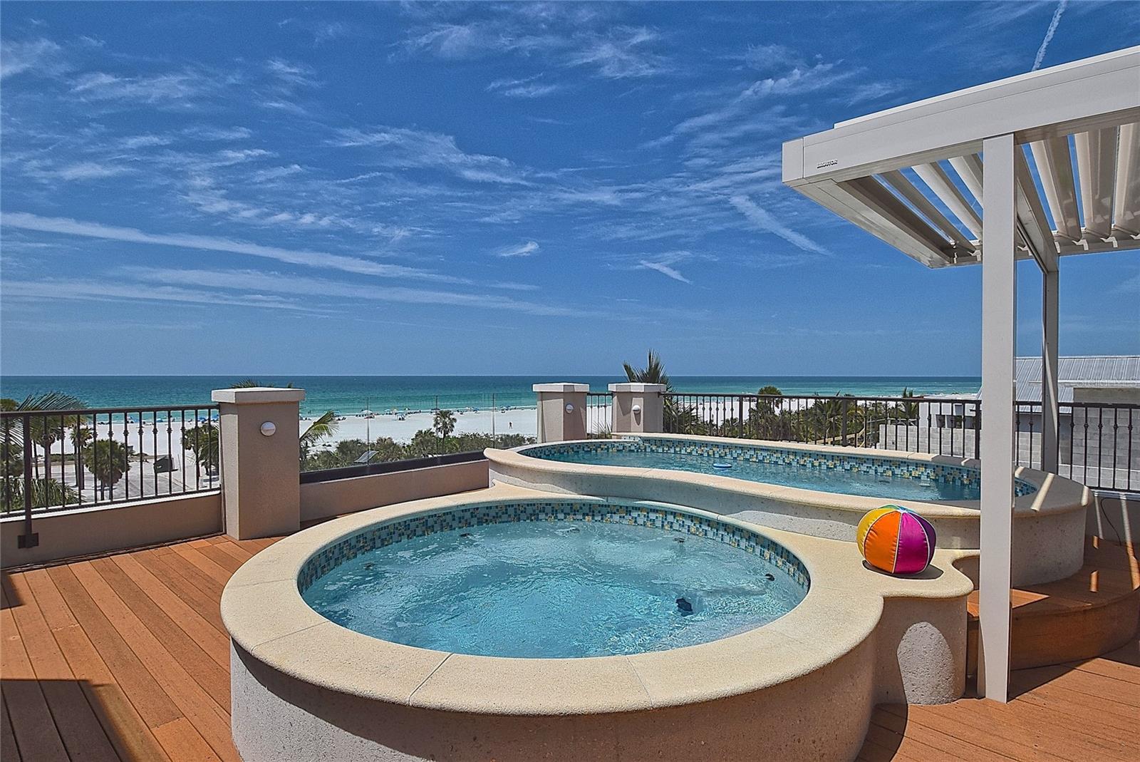 One or more photo(s) has been virtually staged. Welcome to the Exquisite Estate of Palazzi Al Mare. This breathtaking 5-bedrooms, 4 full baths, 2 half baths, 5-car garage home is the TROPHY of Gulf-front luxury with unobstructed ocean views from every level located directly in the heart of Lido Key & St. Armands Circle!