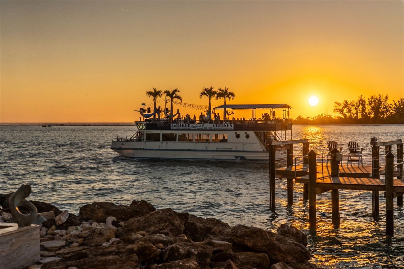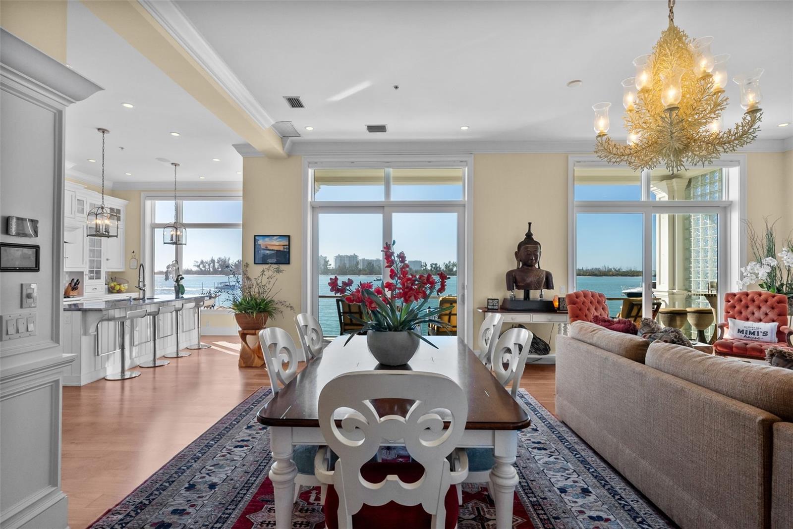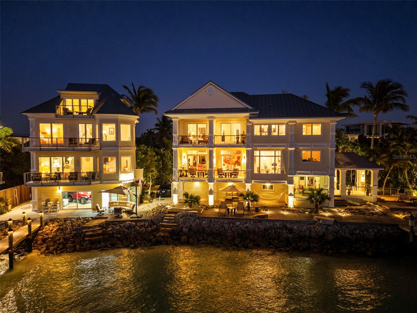 Tucked on the coveted north end of Siesta Key, this extraordinary double-lot point estate is positioned at the tip of a protected peninsula, offering panoramic water views and unforgettable sunsets. Surrounded by water and set directly across from protected parkland, the setting feels like your own private island. The property features three separate structures: a main residence, a guest house, and a separate waterfront cabana with bath. In total, the compound offers six bedrooms and six bathrooms, with gourmet kitchens in both the main house and guest house — each outfitted with high-end appliances throughout — ideal for multigenerational living, guest accommodations, or an exceptional private retreat. Throughout both residences, the finish detail is exceptional. Designer-selected materials create a cohesive and elevated aesthetic carried seamlessly across the entire compound. Custom wood flooring with intricate stone inlays, handcrafted stairwells featuring wood and stone risers, extensive crown molding, and refined architectural millwork highlight the level of craftsmanship invested in every space. Specialty stonework and thoughtfully curated finishes blend warmth with sophistication, creating interiors that feel timeless, substantial, and unmistakably high-end. Outdoor living is nothing short of spectacular. A dramatic infinity-edge pool with swim-assist system overlooks the water, enhanced by a striking waterfall feature that spills elegantly into the pool. New pool equipment (2025) supports the system. Natural rock waterfront frontage and a sculptural rock formation lead down to the shoreline, creating a one-of-a-kind coastal backdrop. Two docks serve the property — one with a double lift — offering outstanding boating access and rare protection on both sides of the point, with additional lift capacity for multiple watercraft. An outdoor shower provides added convenience after boating or swimming. Perched at the edge of the peninsula, the waterfront cabana and adjacent hot tub create a private, spa-like retreat suspended over the water — an unforgettable setting to take in sweeping sunset views. The residences were renovated separately: main house (2009) and guest house (2012). All A/C units have been renewed recently, along with the electric unit, and a new transformer (2024) services both properties. Sonos surround sound extends throughout all structures. Located on the highly desirable north end of Siesta Key, the estate offers convenient on-and-off island access while remaining just minutes from Southside Village and downtown Sarasota.