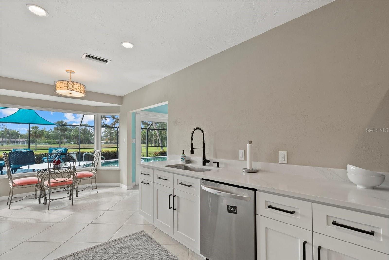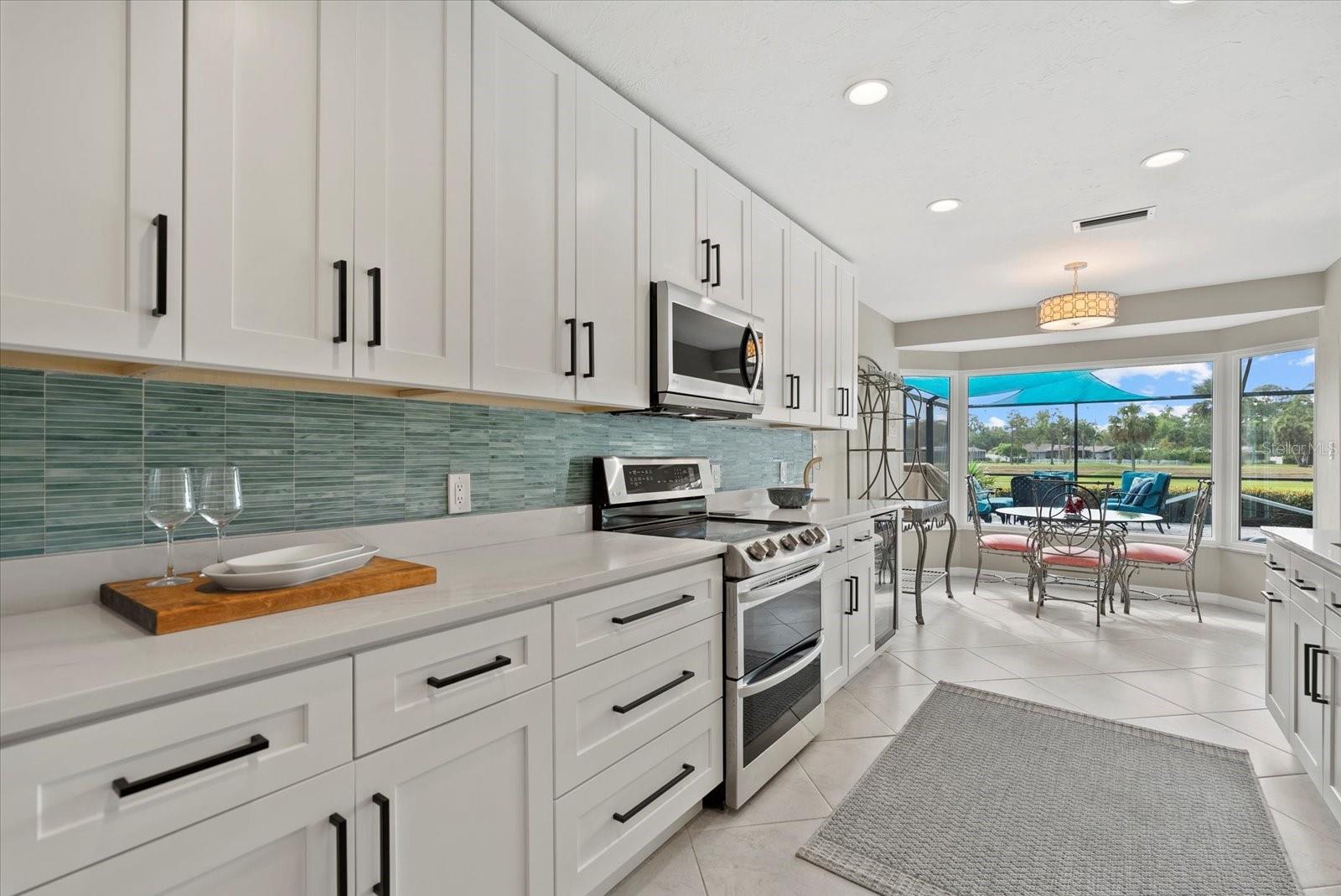 Inside, this spacious split-bedroom floor plan is designed for privacy and comfort. The newly renovated kitchen boasts quartz countertops, a cozy breakfast nook, and sweeping views of the pool and golf course.