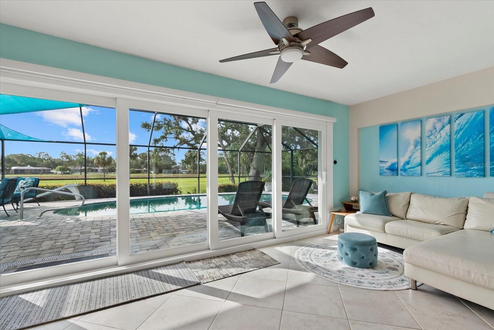 Step outside and take in the view—your private pool oasis seamlessly blends into the lush greens of the golf course. Whether you're enjoying a swim, dining al fresco, or simply relaxing, the setting is unforgettable.