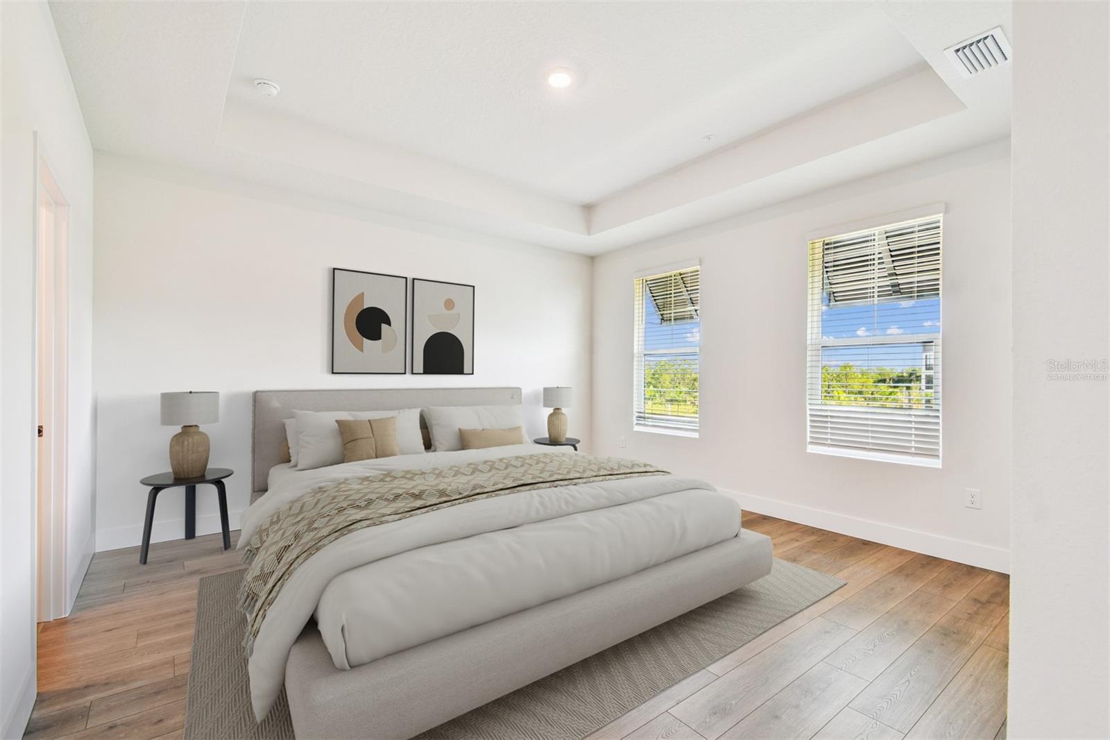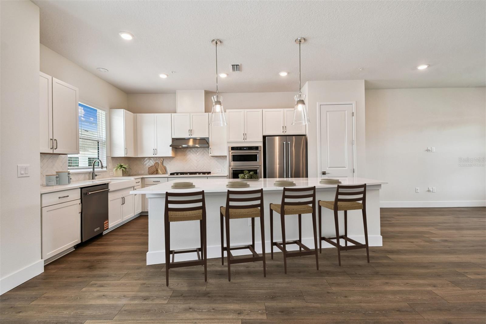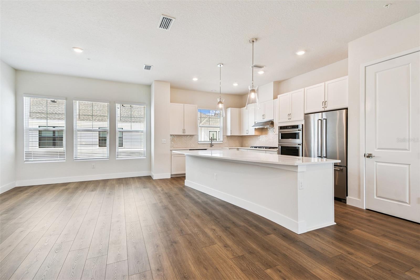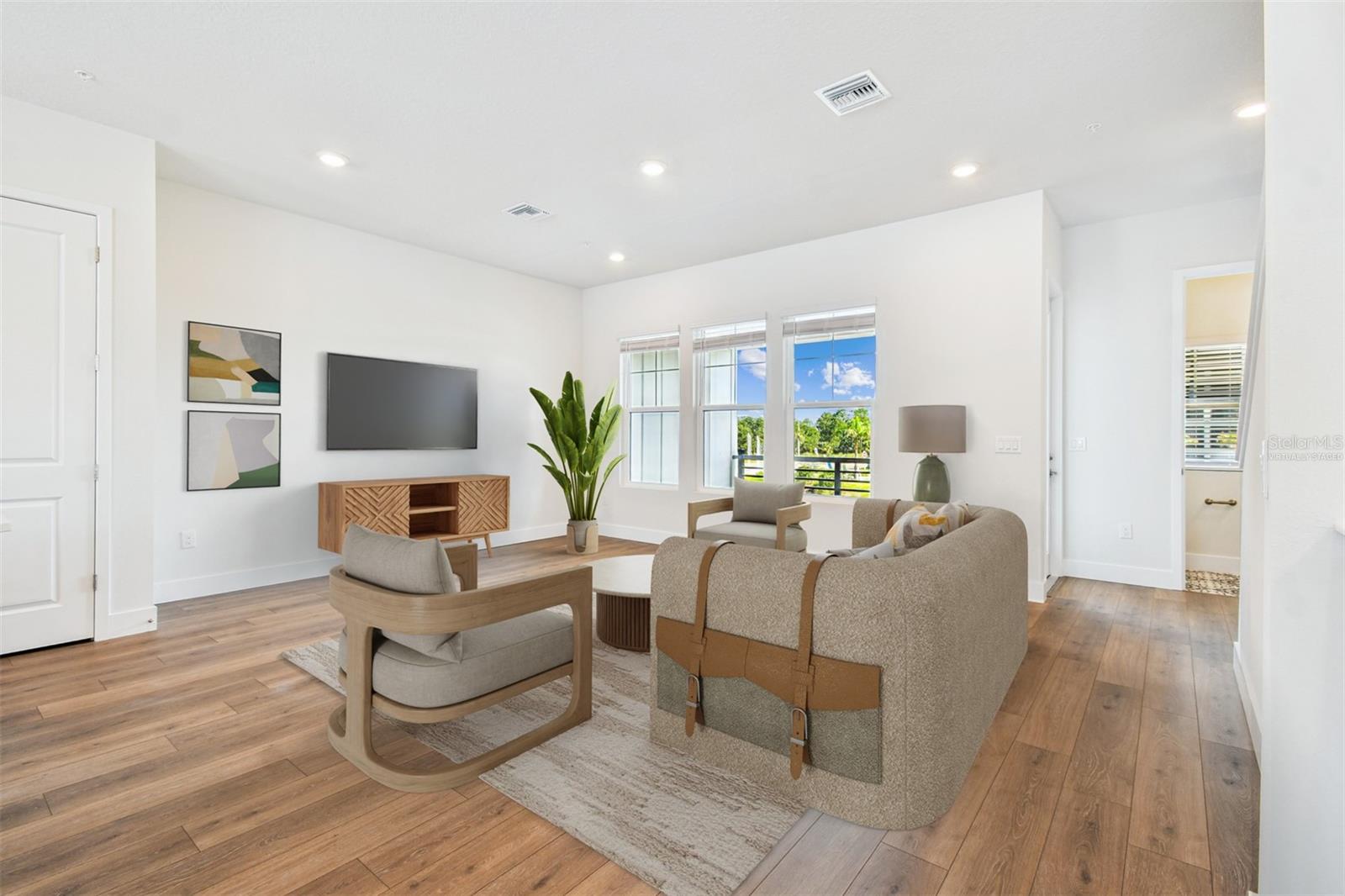 One or more photo(s) has been virtually staged. Luxury Living Meets Low-Maintenance in this 3-Story David Weekley Townhome. Step into the Rainwater floor plan, with a refined coastal living with this beautifully designed three-story townhome by David Weekley Homes, perfectly situated just half a mile from Waterside Place's vibrant shopping and dining. With preserve and water views from your private balcony, this home blends serene surroundings with luxury finishes and walkable convenience. On the first floor, you'll find a spacious two-car garage and a private study, ideal for guests or a home office. The heart of the home lies on the second floor, featuring a gourmet kitchen with KitchenAid appliances, wine cooler, and refrigerator included, flowing seamlessly into the open-concept dining and family rooms. Enjoy stunning views from the balcony and the convenience of a powder bath on this level. Laminate flooring runs throughout the main living areas, with tile in the powder and laundry rooms for added durability. Retreat to the third floor, where the owner’s suite boasts his and her walk-in closets, shower, and a free standing tub. A second bedroom with an en-suite bath, and a laundry room with folding counter complete the upper level—functionality meets comfort at every turn. Enjoy peace of mind with hurricane impact windows, Zone X flood rating, and the perks of living in a low-maintenance, gas community where the HOA covers landscaping, irrigation, exterior upkeep, and roof maintenance. Resort-style amenities include: Clubhouse, resort pool, pickleball court, fire pit, kayak and canoe racks from private dock, dog park, butterfly garden, and a water taxi to and from the Sunday Farmers Market. Call us for a tour!