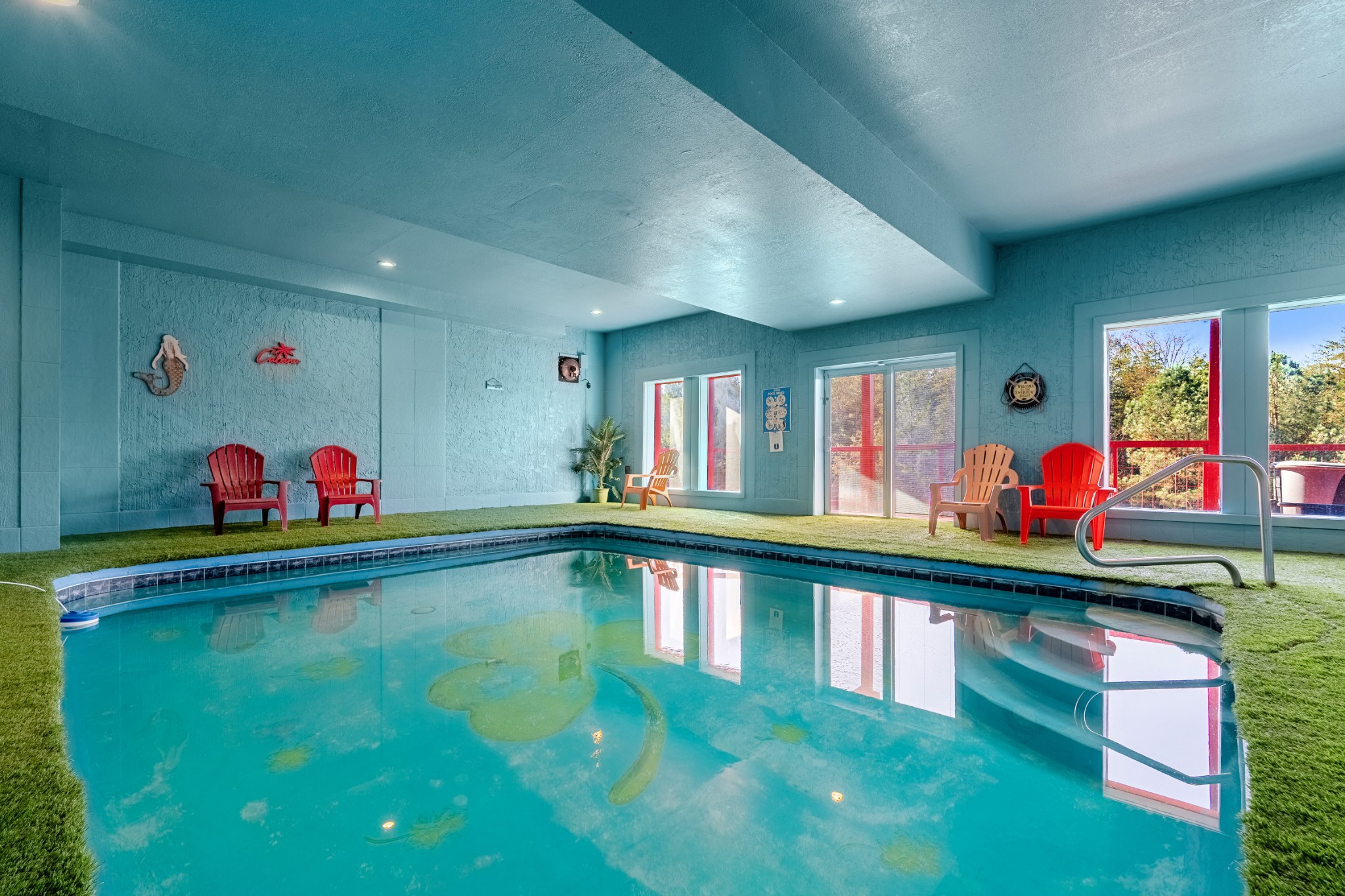 Inside, you’ll find an inviting layout with a private indoor pool, game room, and theater room—ideal for entertaining groups year-round. Multiple decks showcase the breathtaking mountain and lake views, creating the perfect backdrop for morning coffee or sunset gatherings.
