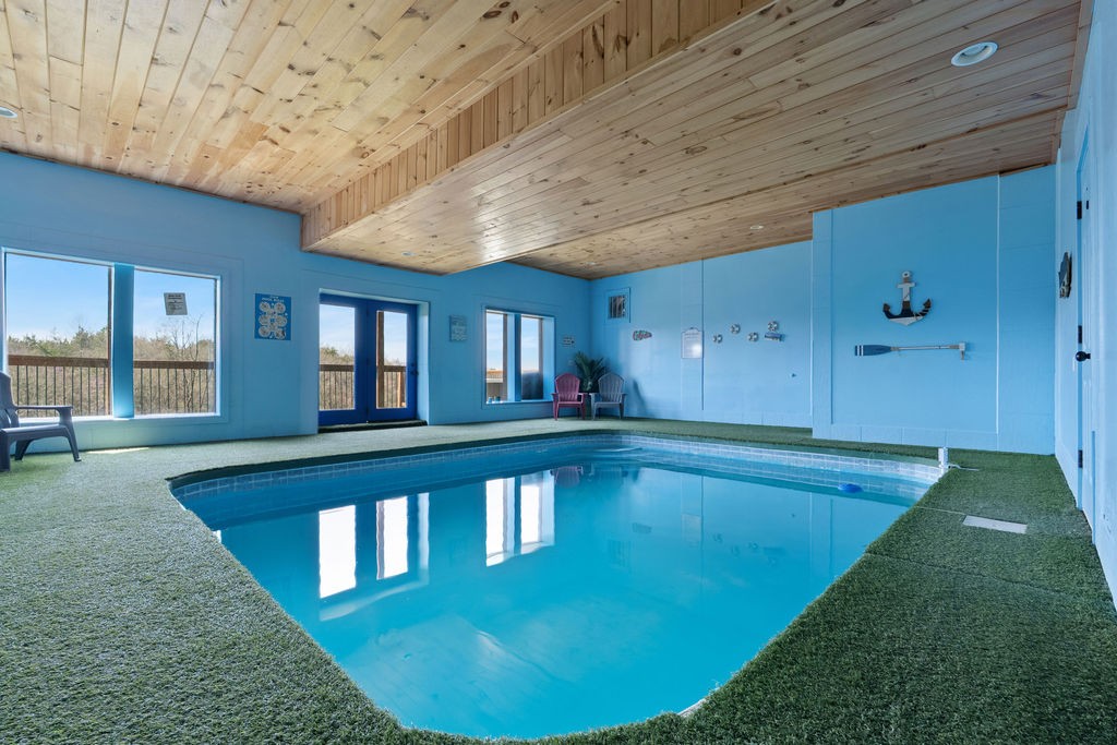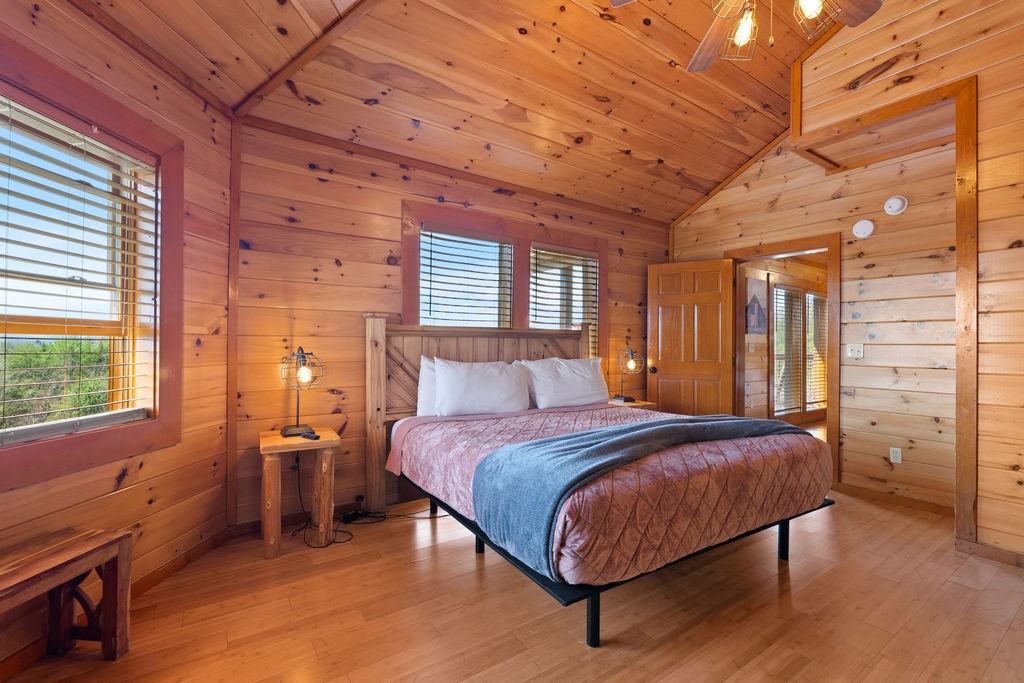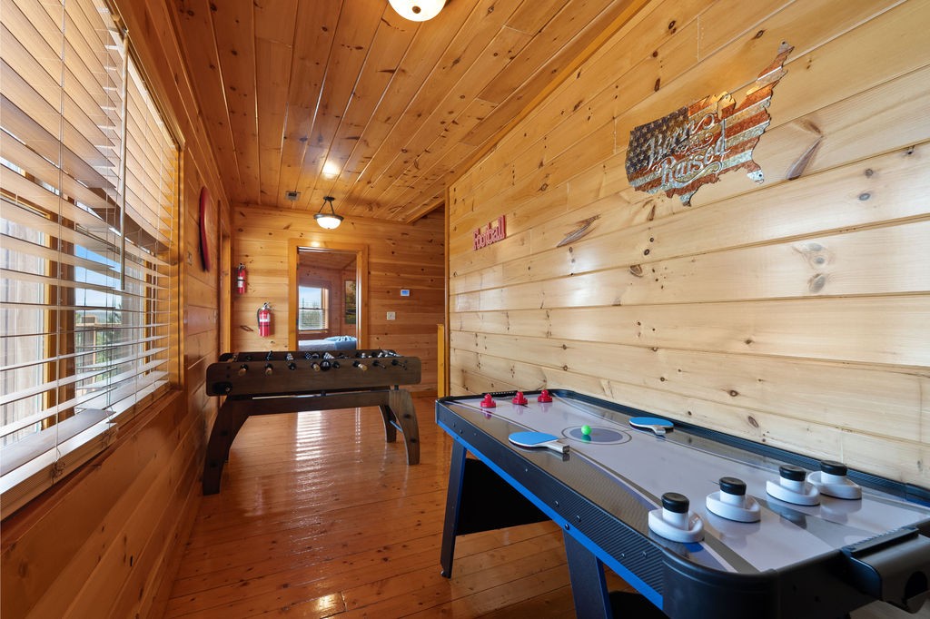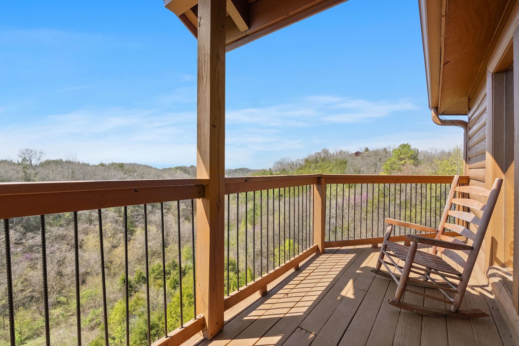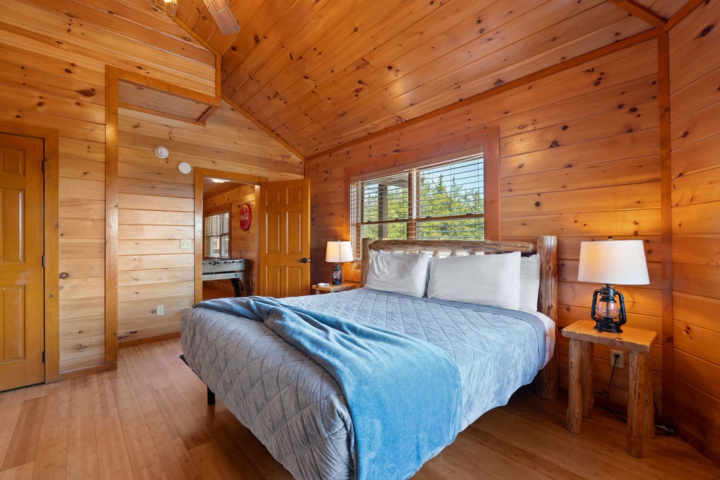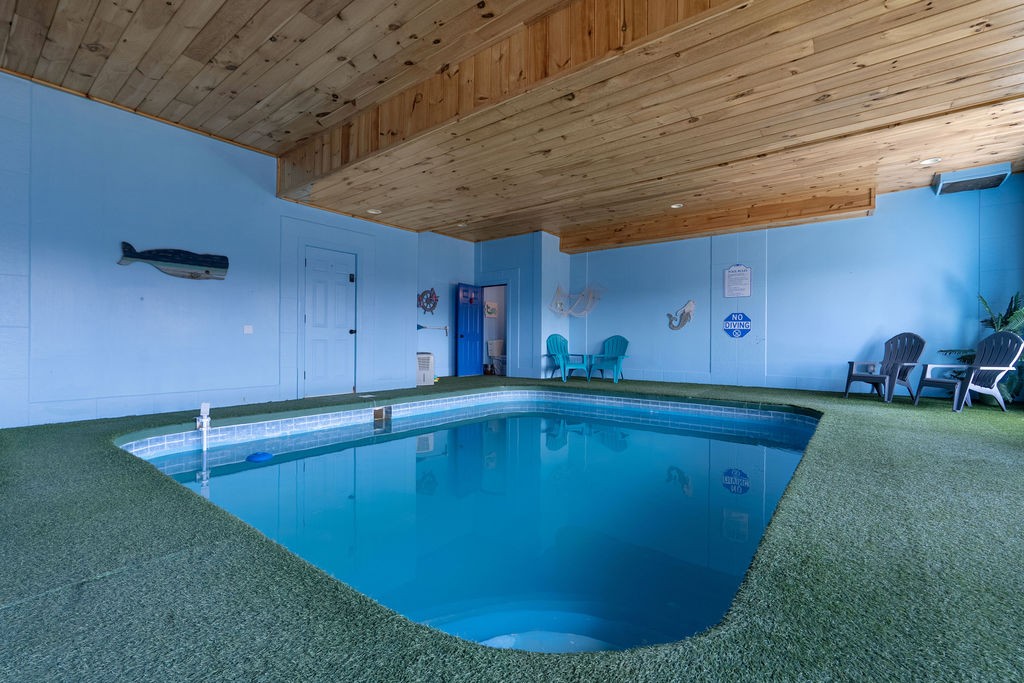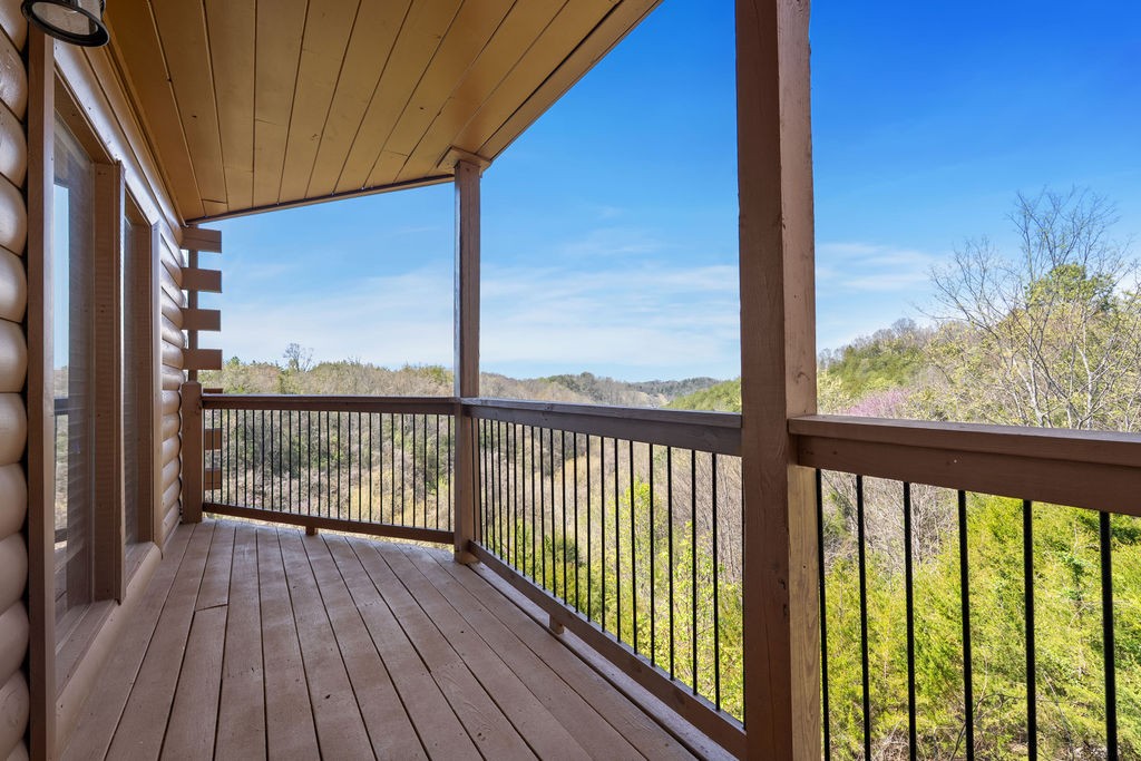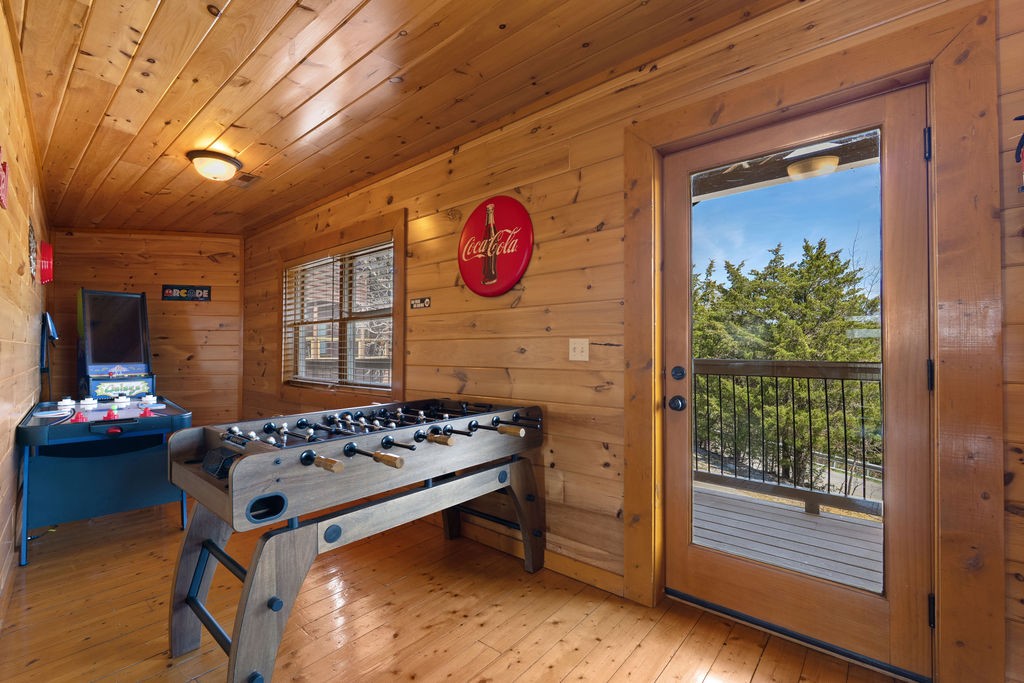 Inside, you’ll find an inviting layout spread across four levels, offering plenty of space for guests to gather or unwind. The home features a private indoor pool, game room, and theater room—ideal for entertaining groups year-round. A top-floor lookout room provides an elevated vantage point to take in the surrounding scenery. Multiple decks extend the living space outdoors, where you can enjoy peaceful wooded surroundings along with mountain and lake views—perfect for morning coffee or relaxed evening gatherings.