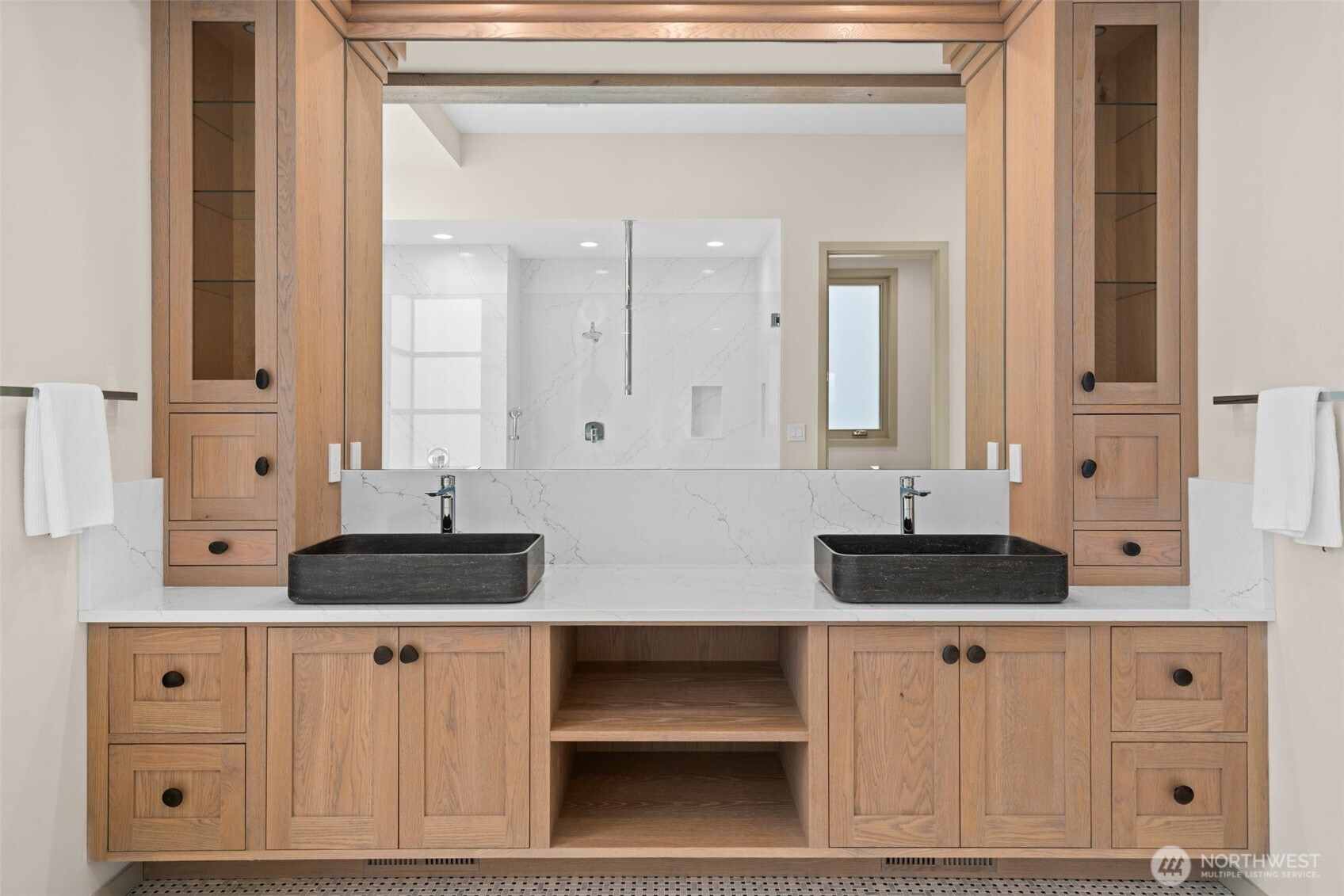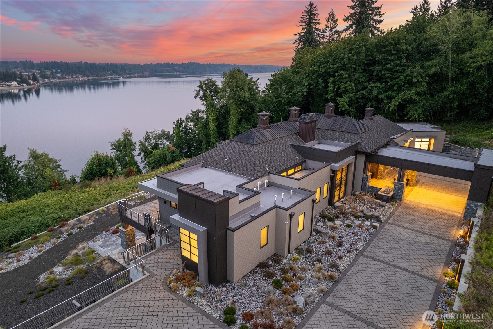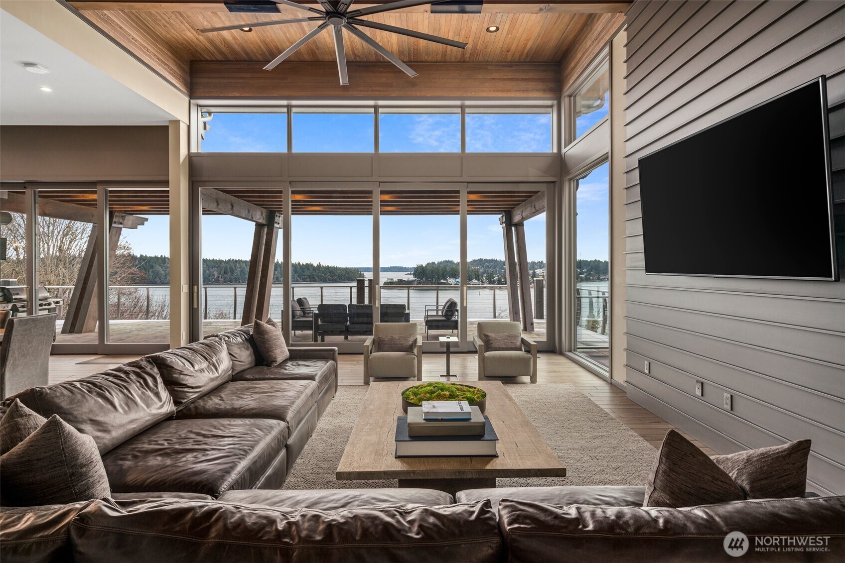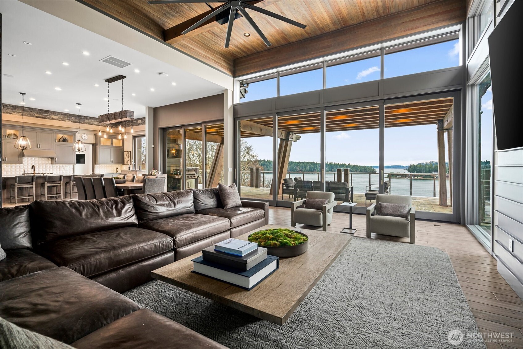 Time seems to pause on this private, gated estate, perfectly perched to capture expansive saltwater views w/ 776+ ft of waterfront + tidelands! A true architectural marvel. Crafted w/ uncompromising quality, 2x6 construction, copper cupolas & gutters, radiant polished concrete flrs, quartz throughout, 16-foot ceilings & 12-foot glass lift-and-slide doors. Highlights include a Valor fireplace, a stunning custom curved glass staircase, distressed oak cabinetry, a wine cellar, & a massive 1,641 sq. ft. garage. Every high-end detail was thoughtfully selected for performance & style, designed to harmonize effortlessly w/ the changing seasons of the PNW. Fully furnished & beyond imagination—this is a place you have to experience to believe.