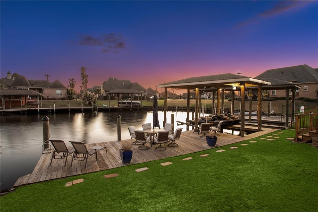 Waterfront living at it's best! This 5 bedroom 2 1/2 home in the gated neighborhood of The Moorings is located just minutes to I10 and minutes to the lake by boat! Upon entering into the foyer, you are greeted by a formal dining area, an open layout, high ceilings, light and bright colors and a den with a gas fireplace and wall of windows. The natural light in the home is amazing! The kitchen opens to the den and breakfast room. It features tall cabinets with lighting on top and underneath, a center island, gas cooktop, a pot rack, gunite sink and granite countertops. The master ensuite has a waterfront view, a glass enclosed walk in shower, soaker tub, double sinks and a large walk in closet. The laundry room includes an oversized storage area in the back. The upstairs 5th bedroom could also be used as an office, gym space or teen hangout area. 2022 Roof, 2023 Water heater, 2021 Boathouse, dock and Bulkhead.