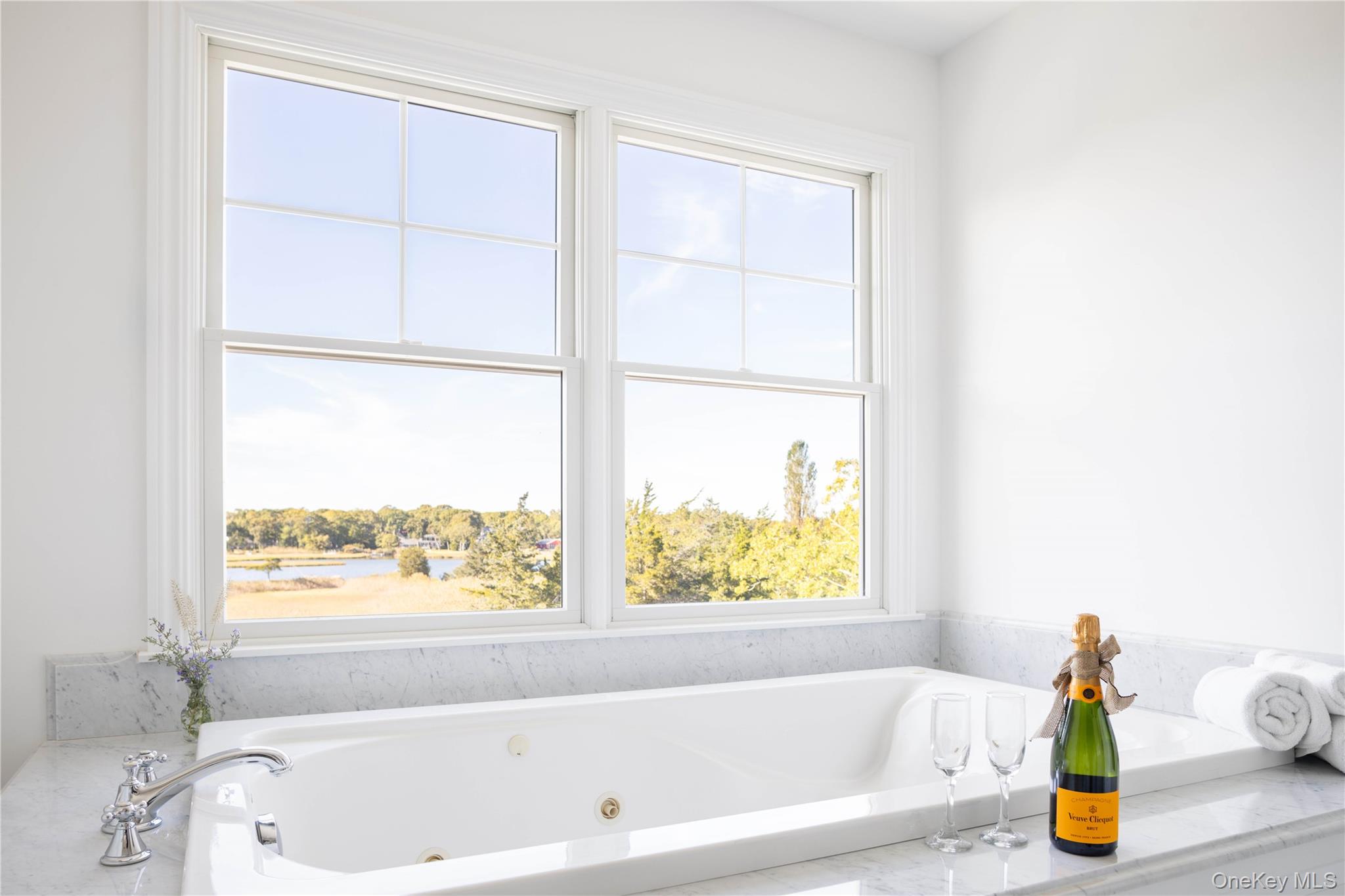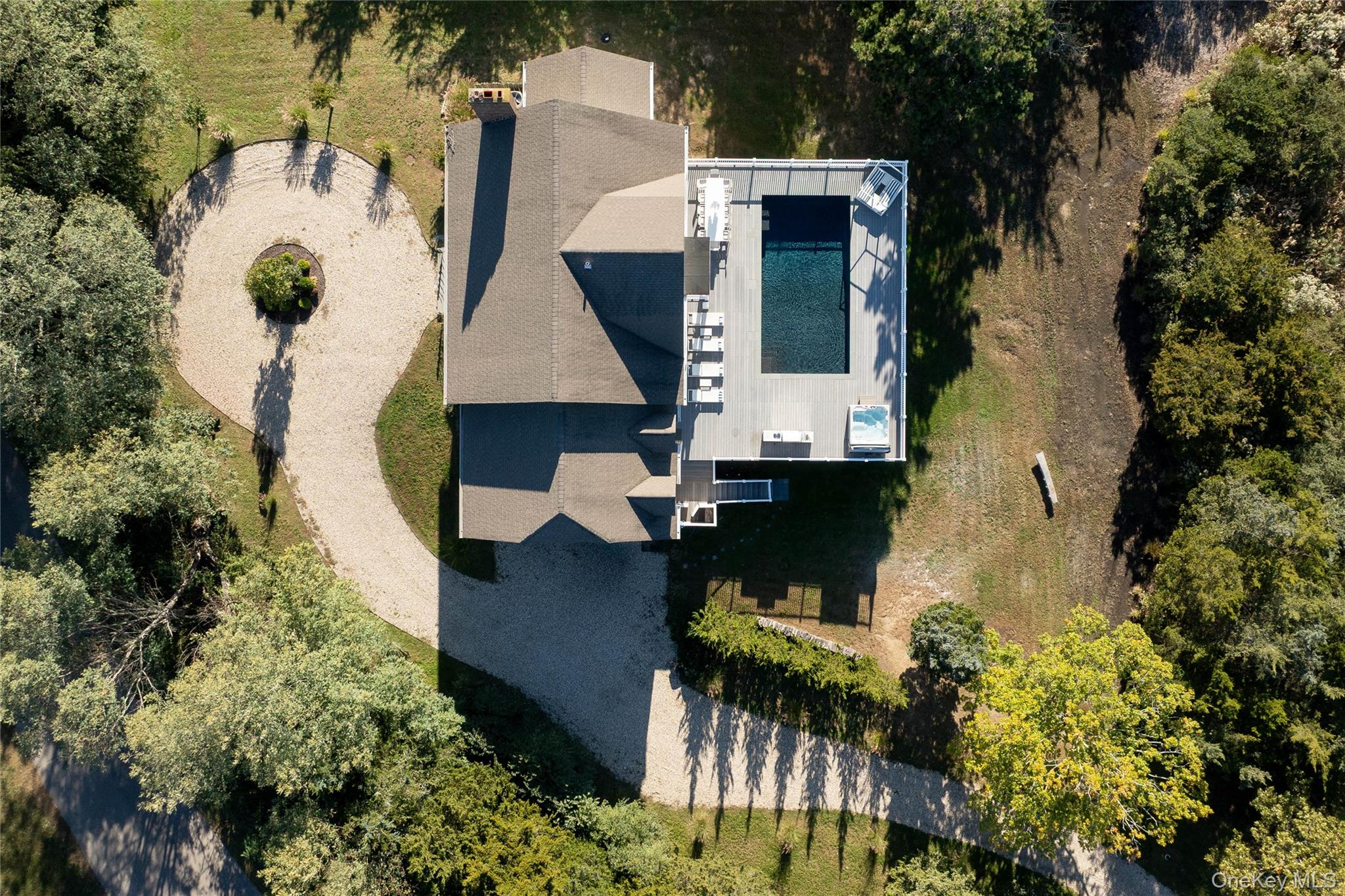 Discover a rare waterfront property where privacy, space, and breathtaking views come together on 6.5 gated acres. Spanning two single-and-separate lots, this refreshed 6-bedroom, 4-bath colonial offers a den/office, bonus room, and sweeping water views from nearly every room. Thoughtfully designed for both comfort and future flexibility, the residence provides substantial expansion potential. The enormous attic, featuring 8.5+ ft ceilings, offers the possibility of a third-floor buildout. The walk-out basement, with 9+ ft ceilings, two egresses, and plumbing in place, adds even more room for customization. Resort-style amenities continue across the grounds: a 16' x 32' heated saltwater gunite pool with electric cover is set into a 2,100 SF deck, a high-end 6-person hot tub and an outdoor shower. A wide path leads to a fire pit area and the private dock, which previously accommodated a 23' Grady-White and provides direct access to the bay. Inside, a chef’s kitchen, wood-burning fireplace, and generous ceiling heights enhance the home’s warm yet refined ambience. Radiant heat warms the eat-in kitchen, all bathrooms, and additional spaces throughout. Recent upgrades include the new pool and hot tub, a newly constructed circular driveway, freshly painted Hardie board siding, all-new interior paint, updated lighting, and modern hardware. A truly exceptional offering of space, serenity, and waterfront luxury—ideal as a full-time residence or a memorable seasonal escape.