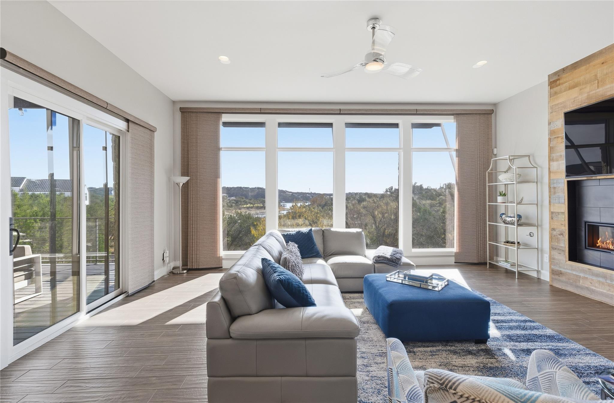 Lake Living Redefined at The Reserve at Lake Travis! Incredible opportunity to own a beautiful FULLY FURNISHED lake view home in this highly desirable lakefront community that was the location for the 2015 Luxury Home Magazine Tour and the 2020 Austin’s Home Builders Association Parade of Homes. Whether it’s your primary residence or secondary home for an escape to the lake, you will fall in love with all this home has to offer. Built for entertaining, there is plenty of room for family and friends and showcasing Texas Hill Country Modern architecture allowing lake and hill country views to come in. This home has 4 bedrooms (3 on main level including casita with private entrance / 1 on second floor) and 4 full baths with a bonus room with built in bunks for additional guests. The beautiful outdoors offer multiple decks for entertaining, outdoor kitchen and dog run. Enjoy the resort style amenities that The Reserve has to offer including an Award Winning 150 Slip Yacht Marina accessible by golf cart, Lazy River Swim Park and Grill, Family Activity Barn Clubhouse, Lakeside Lodge, Tennis Court and Fishing Pond. STR projections for this property are estimated to be around $68,000 per year. Televisions that convey include 50" Samsung in casita, 65" Samsung in master bedroom, 75" Samsung in family room, 43" Samsung in bedroom (main floor), 50" Samsung in upstairs game room, 50" Samsung in upstairs bunk room and 50" Samsung in upstairs bedroom.