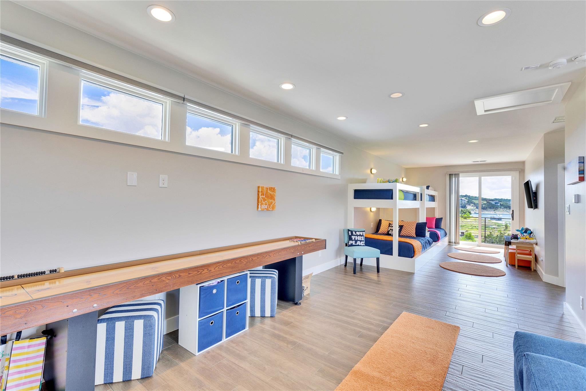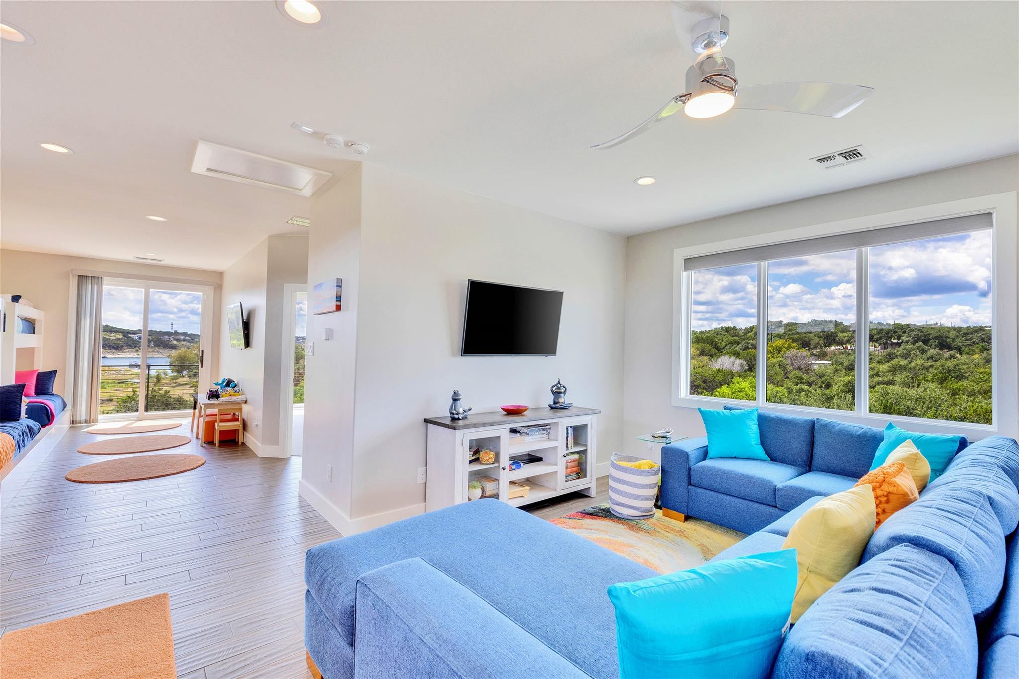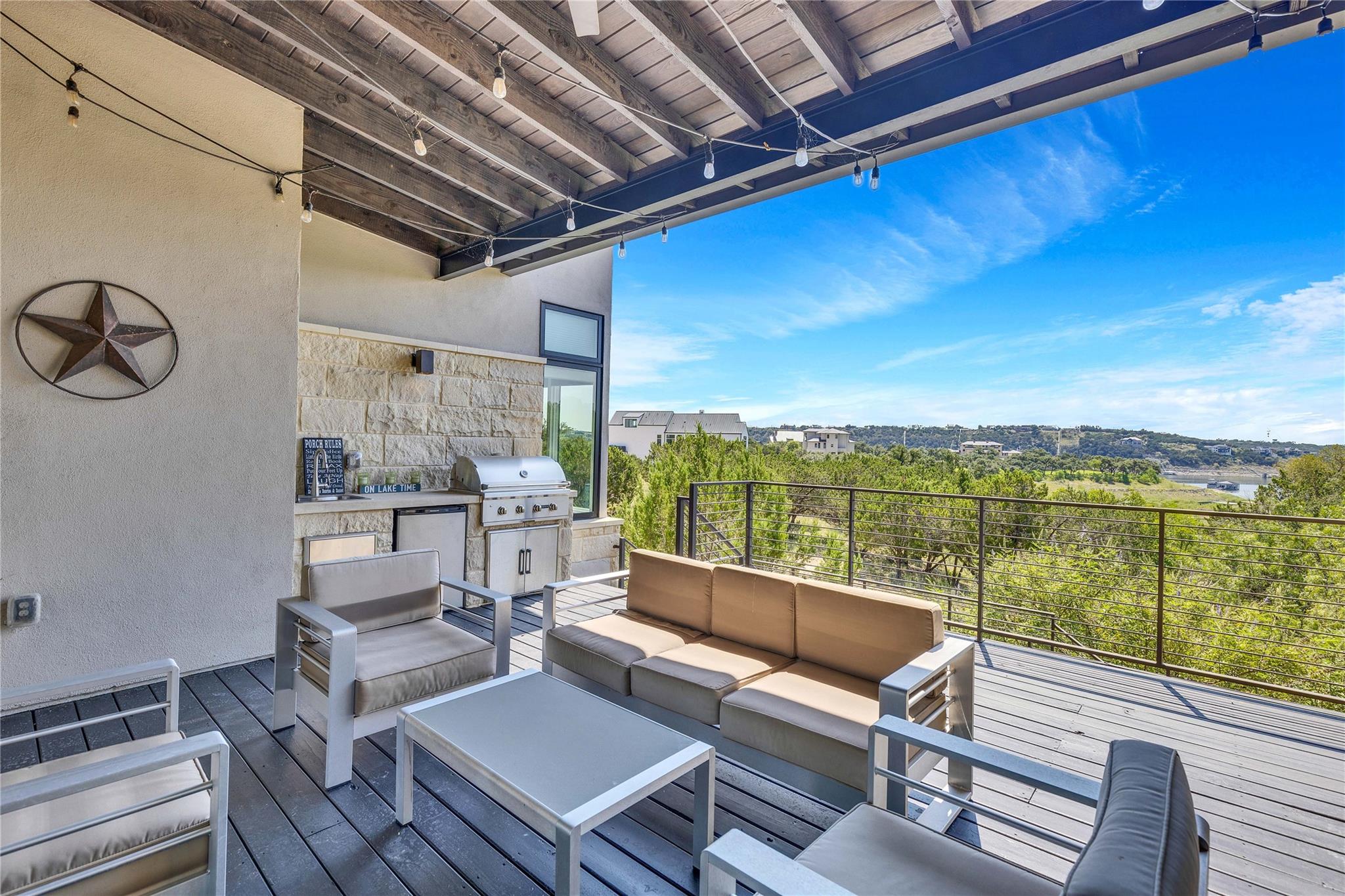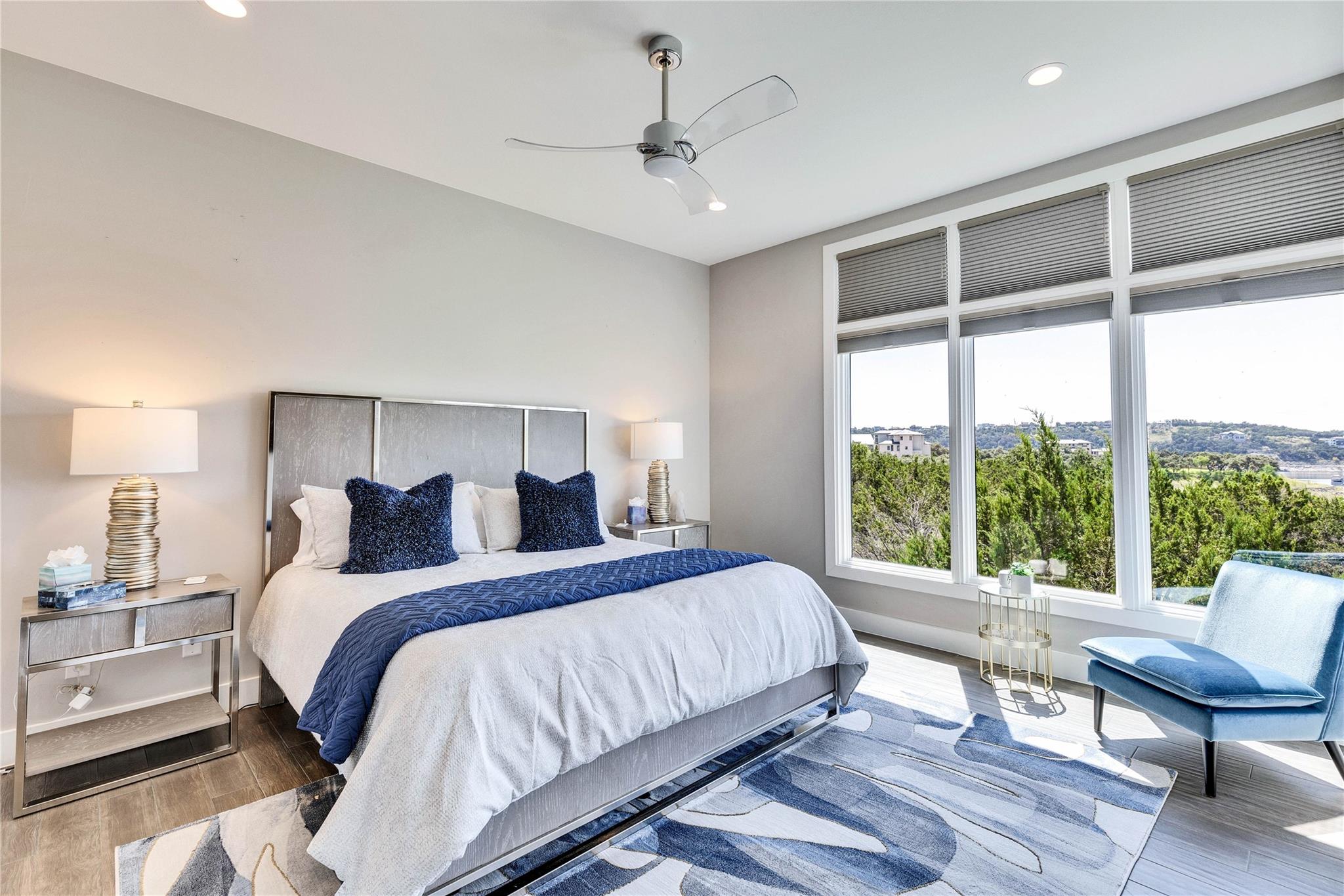 Lake Living Redefined at The Reserve at Lake Travis! Incredible opportunity to own a beautiful FULLY FURNISHED lake view home in this highly desirable lakefront community that was the location for the 2015 Luxury Home Magazine Tour and the 2020 Austin’s Home Builders Association Parade of Homes. Whether it’s your primary residence or secondary home for an escape to the lake, you will fall in love with all this home has to offer. Built for entertaining, there is plenty of room for family and friends and showcasing Texas Hill Country Modern architecture allowing lake and hill country views to come in. This home has 4 bedrooms (3 on main level including casita with private entrance / 1 on second floor) and 4 full baths with a bonus room with built in bunks for additional guests. The beautiful outdoors offer multiple decks for entertaining, outdoor kitchen and dog run. Enjoy the resort style amenities that The Reserve has to offer including an Award Winning 150 Slip Yacht Marina accessible by golf cart, Lazy River Swim Park and Grill, Family Activity Barn Clubhouse, Lakeside Lodge, Tennis Court and Fishing Pond. STR projections for this property are estimated to be around $68,000 per year. Televisions that convey include 50" Samsung in casita, 65" Samsung in master bedroom, 75" Samsung in family room, 43" Samsung in bedroom (main floor), 50" Samsung in upstairs game room, 50" Samsung in upstairs bunk room and 50" Samsung in upstairs bedroom.