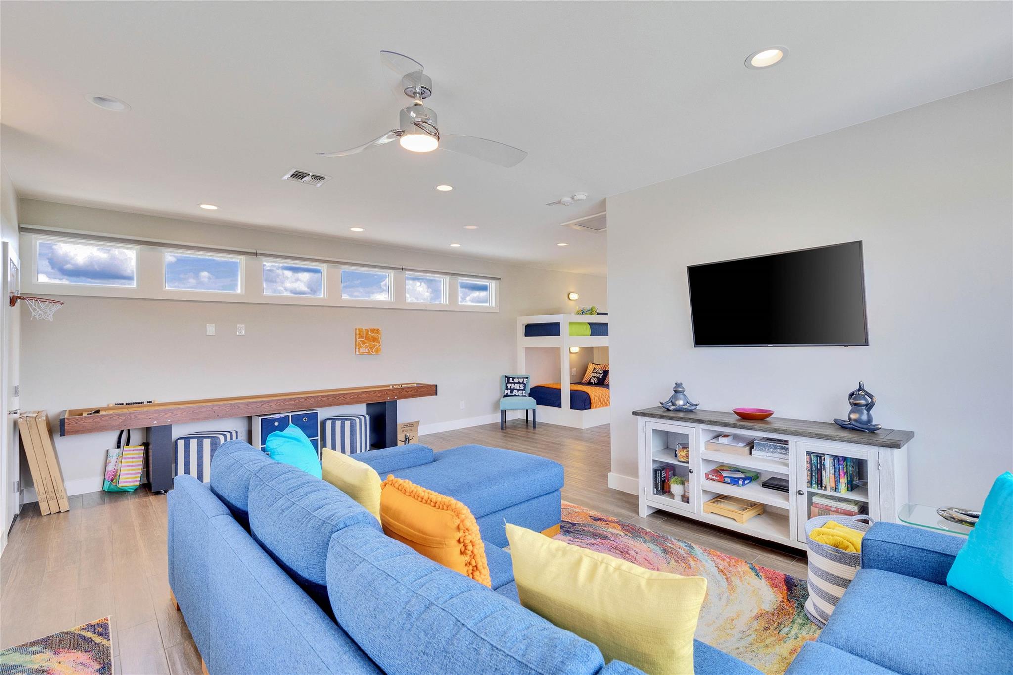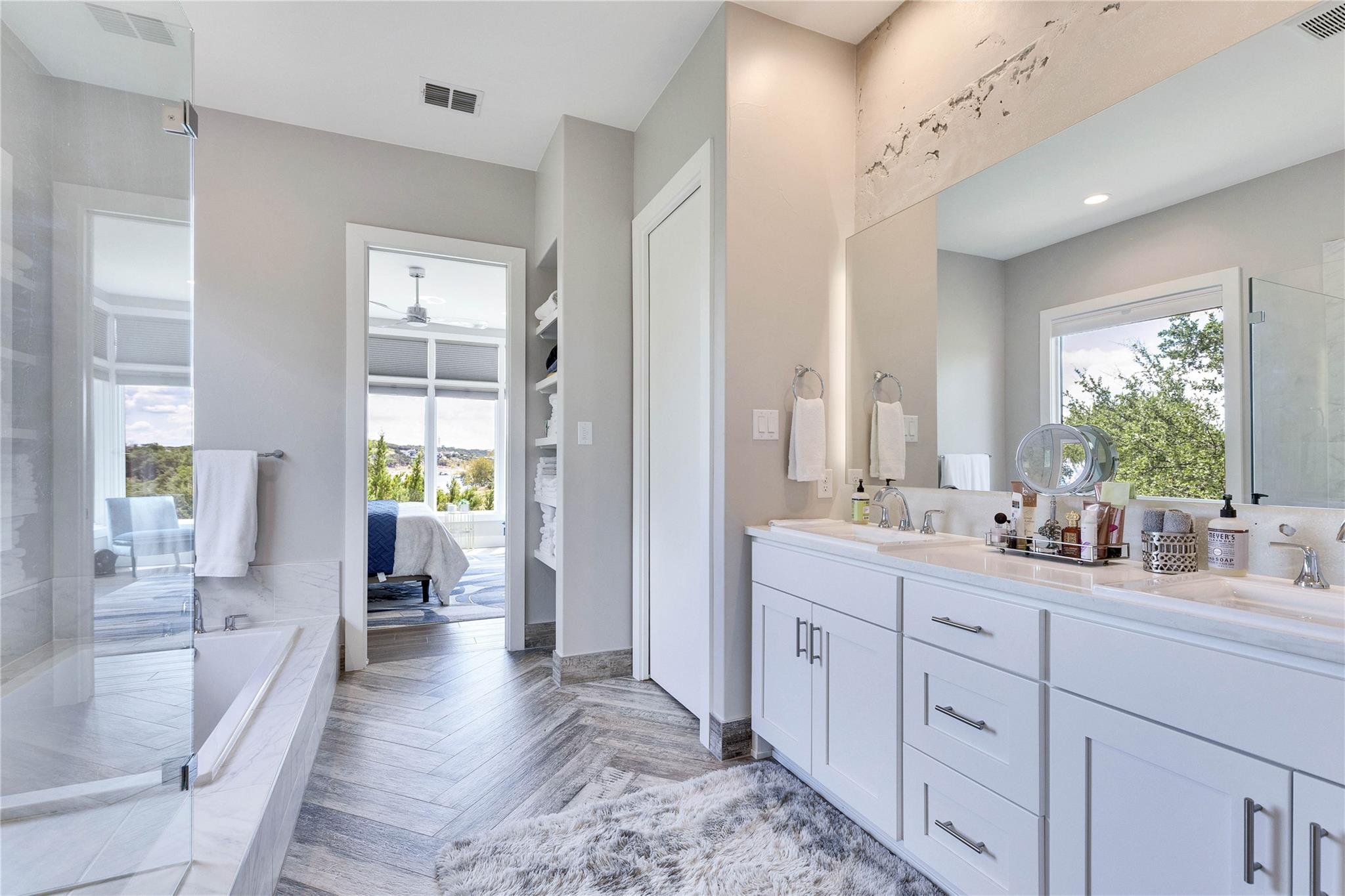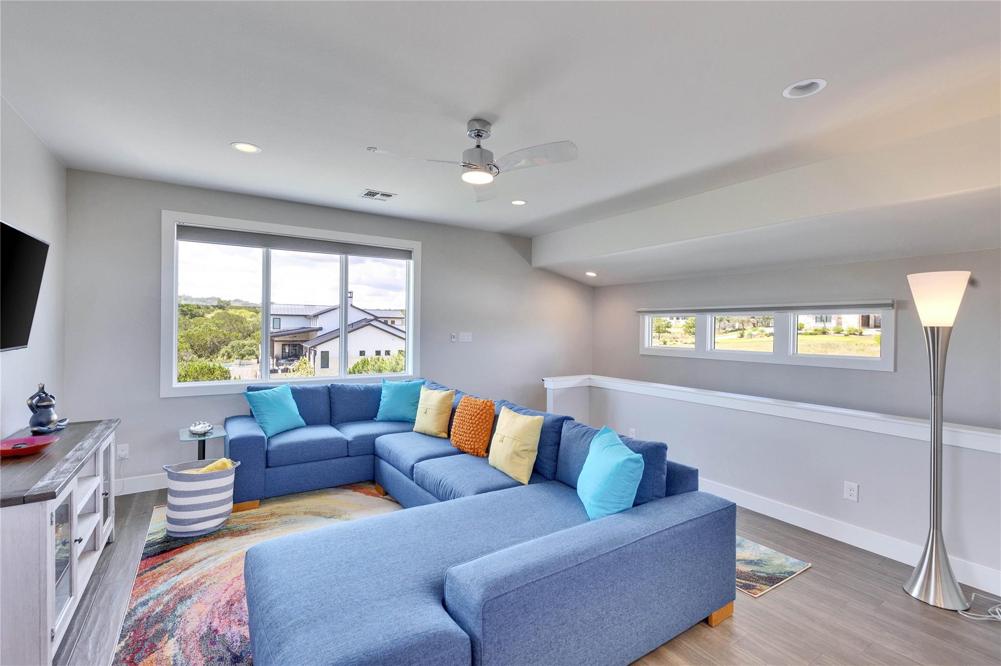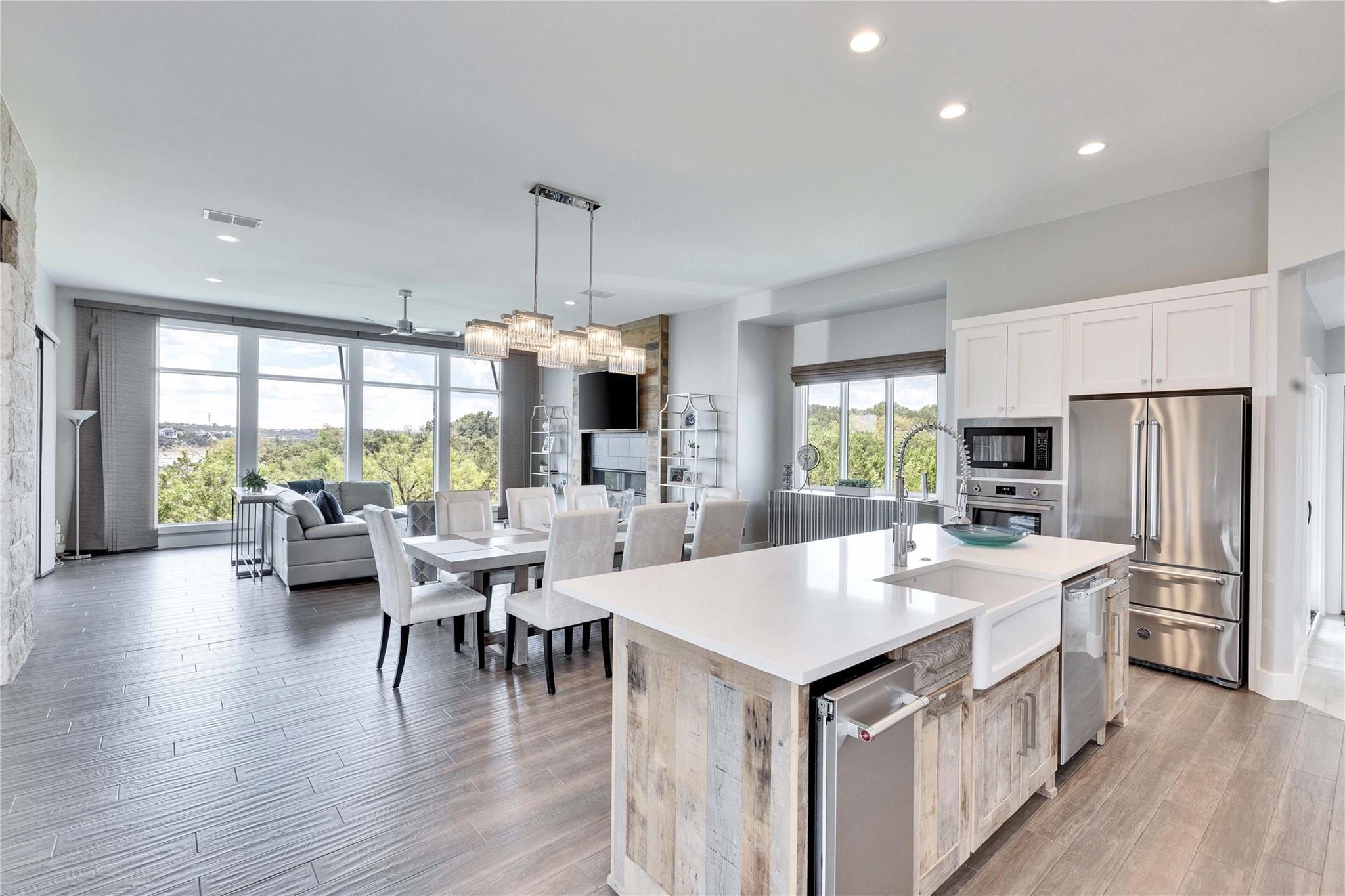 Lake Living Redefined at The Reserve at Lake Travis! Incredible opportunity to own a beautiful FULLY FURNISHED lake view home in this highly desirable lakefront community that was the location for the 2015 Luxury Home Magazine Tour and the 2020 Austin’s Home Builders Association Parade of Homes. Whether it’s your primary residence or secondary home for an escape to the lake, you will fall in love with all this home has to offer. Built for entertaining, there is plenty of room for family and friends and showcasing Texas Hill Country Modern architecture allowing lake and hill country views to come in. This home has 4 bedrooms (3 on main level including casita with private entrance / 1 on second floor) and 4 full baths with a bonus room with built in bunks for additional guests. The beautiful outdoors offer multiple decks for entertaining, outdoor kitchen and dog run. Enjoy the resort style amenities that The Reserve has to offer including an Award Winning 150 Slip Yacht Marina accessible by golf cart, Lazy River Swim Park and Grill, Family Activity Barn Clubhouse, Lakeside Lodge, Tennis Court and Fishing Pond. STR projections for this property are estimated to be around $68,000 per year. Televisions that convey include 50" Samsung in casita, 65" Samsung in master bedroom, 75" Samsung in family room, 43" Samsung in bedroom (main floor), 50" Samsung in upstairs game room, 50" Samsung in upstairs bunk room and 50" Samsung in upstairs bedroom.