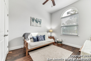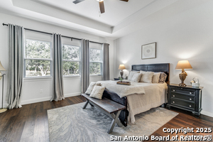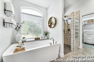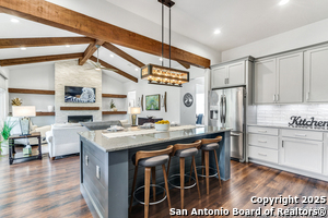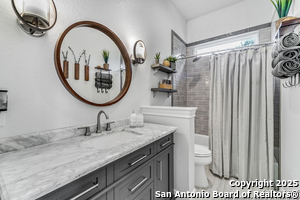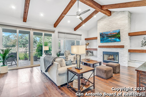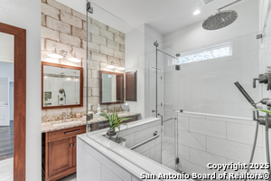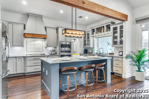Welcome to 155 Brushy Road Cir, a custom-built 2022 masterpiece by Stone Creek Custom Homes in the sought-after Serenity Oaks community. Situated on 1.16 acres, this 4-bedroom, 3.5-bath home boasts 2868 SF of luxurious living. Designed with a Hill Country aesthetic, the exterior features limestone rock, stucco finish, and rustic wood trim, perfectly complementing the scenic surroundings. As you step inside the grand entrance, off the entry, a private home office offers a quiet space for work or study. The inviting open floor plan with a light-filled living area with vaulted ceilings, rustic wood beams, and a stunning floor-to-ceiling limestone fireplace framed by built-in shelving that seamlessly connects the spacious living and kitchen area, perfect for both relaxing and entertaining. The gourmet kitchen is a chef's dream, showcasing stainless steel appliances, a large center island, 36" custom shaker cabinets with glass inlay, an abundance of cabinet storage and counter space, with a large walk-in pantry with a glass sliding barn door. This home offers two master suites, each with en-suite baths (ADA compliant), dual vanities, and walk-in closets-one of the master bathrooms has a large bathtub designed to provide a luxurious bathing experience with ample space and a nestled tiled windowsill, that not only frames the window with a sense of purpose, but it also serves as a practical space for candles, plants, or your favorite bath essentials, effortlessly blending elegance with utility. Just beside the bathtub, a walk-in shower awaits, designed with a minimalist aesthetic to enhance your daily ritual. The other master bath has a walk-in shower boasting a frameless, glass-enclosed design, offering an airy, unobstructed view that enhances the sense of space, with a built-in magnetic lock gun safe. Additional highlights include a mudroom, utility room with custom tile and sink, a 500-gallon propane tank, tankless water heater, salt-water system, and RO System in the kitchen, solar-lit driveway, and a side-entry garage with extra overhead storage. Outdoors, enjoy a covered patio with tongue-in-groove wood ceilings, mature landscaping, and a delightful greenhouse that's ideal for cultivating your favorite plants year-round. Serenity Oaks offers gated access, a Guadalupe River Park, a Junior Olympic pool, a playground, a basketball and pickleball court, and a nearby golf course. The property includes a gravel pad with infrastructure ready for future use. It features a grinder pump tied into the septic system, an electrical line, and a water line with a shut-off valve. A Storage Shed/Workshop with a bathroom with a walk-in shower and a toilet. While the shed has been removed, the infrastructure remains, offering significant value and versatility for the next owner-an estimated $10,000 investment already in place. Located in Comal ISD and close to Canyon Lake, wineries, and outdoor recreation, this home is a must-see!