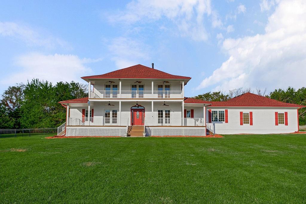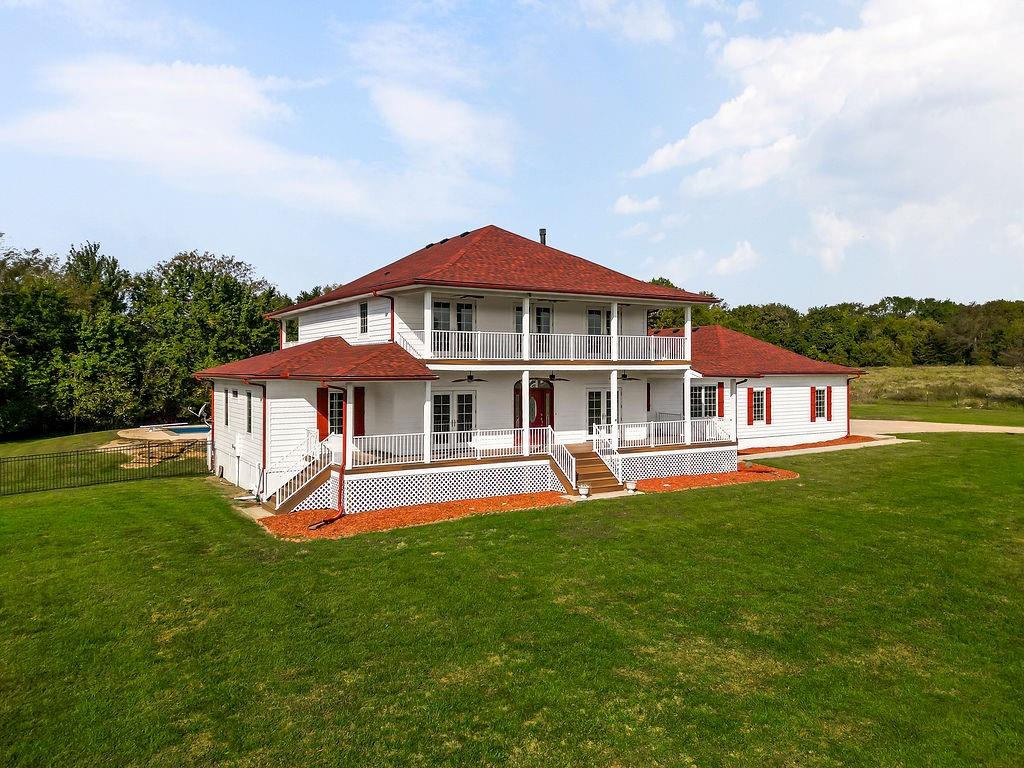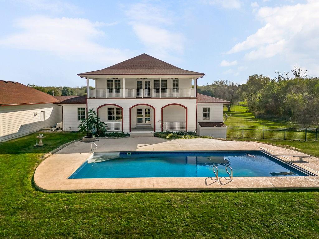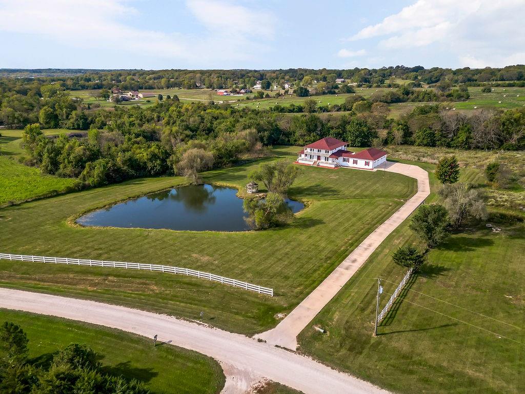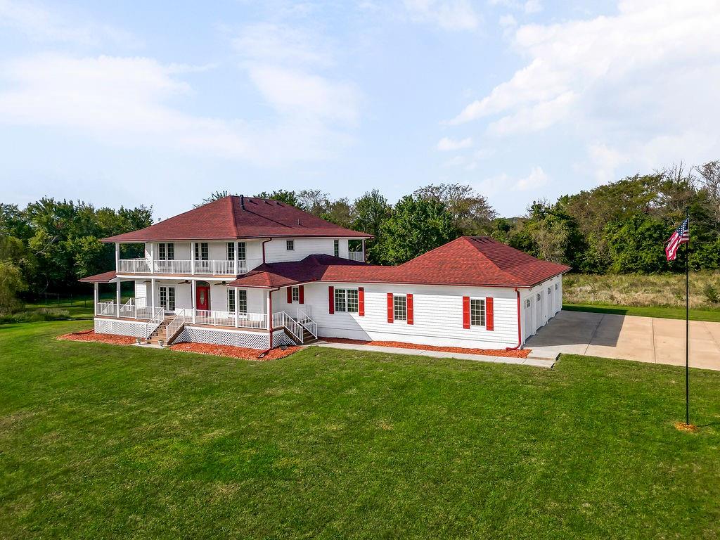 Refined country living with a touch of Americana charm! This custom-built two-story home sits in the heart of 5.48-acres and framed by a classic updated red roof, multiple decks w/white railings, and bold shutters! The open floorplan spans with hardwood floors throughout and designed for both comfort and entertainment, always just steps away from the action. Gourmet kitchen—with custom cabinetry, granite and appliances—serves as the hub for entertainment. Three main-level bedrooms offer flexibility, including one with French doors that’s perfect for a home office or guest room with exterior access. The massive master suite is an absolute dream! Access the newly decked balcony through a multitude of French-doors from either your bedroom or the master bath! Soak your stress away in the oversized tub sitting next to the see-through fireplace or rinse off in the walk-in shower overlooking the front pond! The basement features elevated ceilings, a built-in storm shelter, walk up access and plenty of room to expand for your personal gym, workshop, or additional living space. The garage is super versatile with a walkout; four insulated bays built extra deep for your vehicles and space for everything you need to manicure the property. The refreshed in-ground pool, complete with a new auto cover, updated deck & depths up to 8', is ready for making family memories. The private pond, stocked with a variety of fish species, begs for family fishing competitions! This property sits on a quiet, privately maintained road and offers the lifestyle you've been searching for—peaceful & practical with just the right distance from town, schools, and major highways. Bring the horses, grow your gardens or erect an outbuilding for even more options. Hillsdale Lake is a couple minutes away where there's open access to miles of lakeside equestrian trails, public land, stellar fishing & watersport opportunities. You really don't want this one to get away!