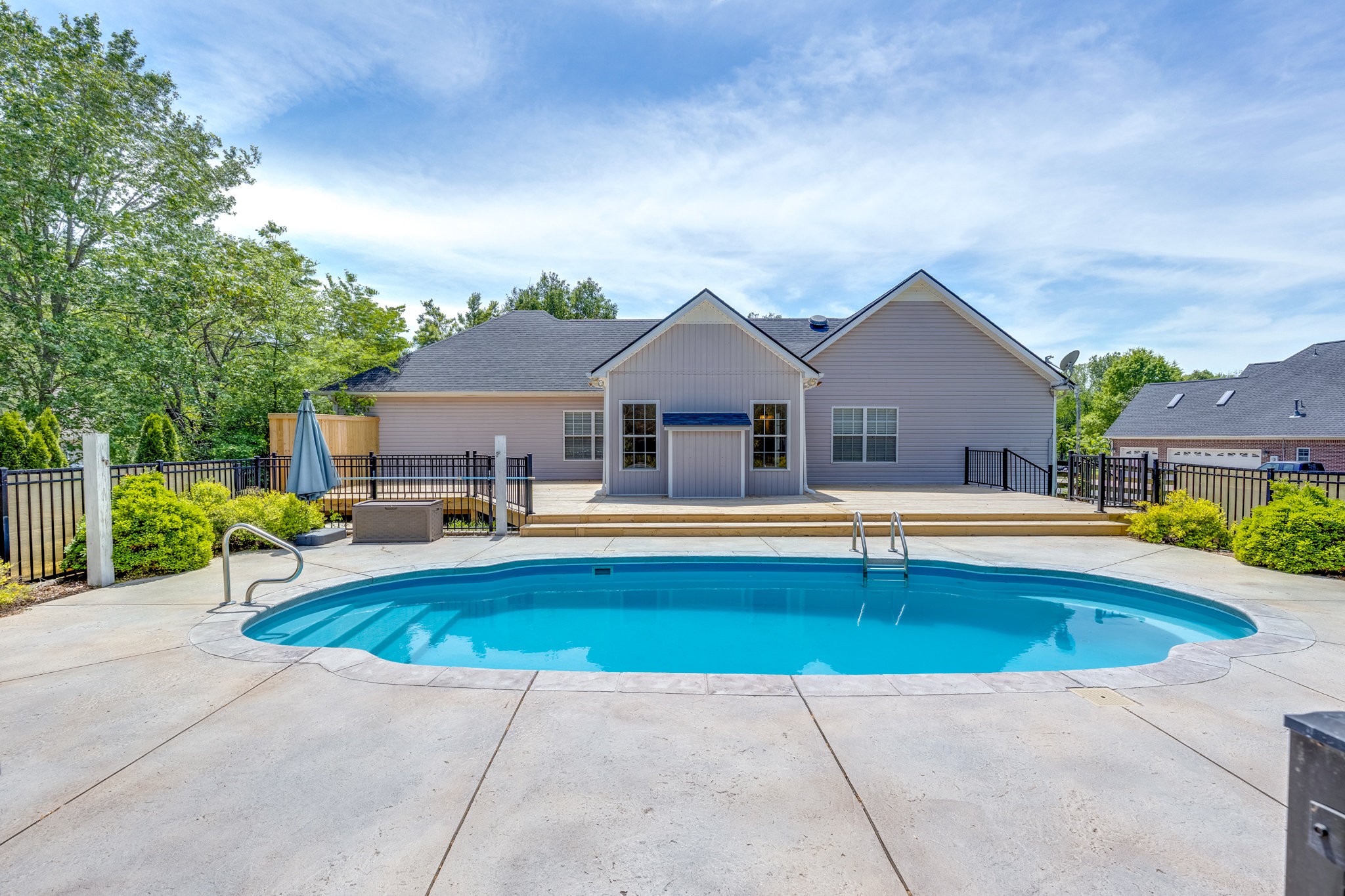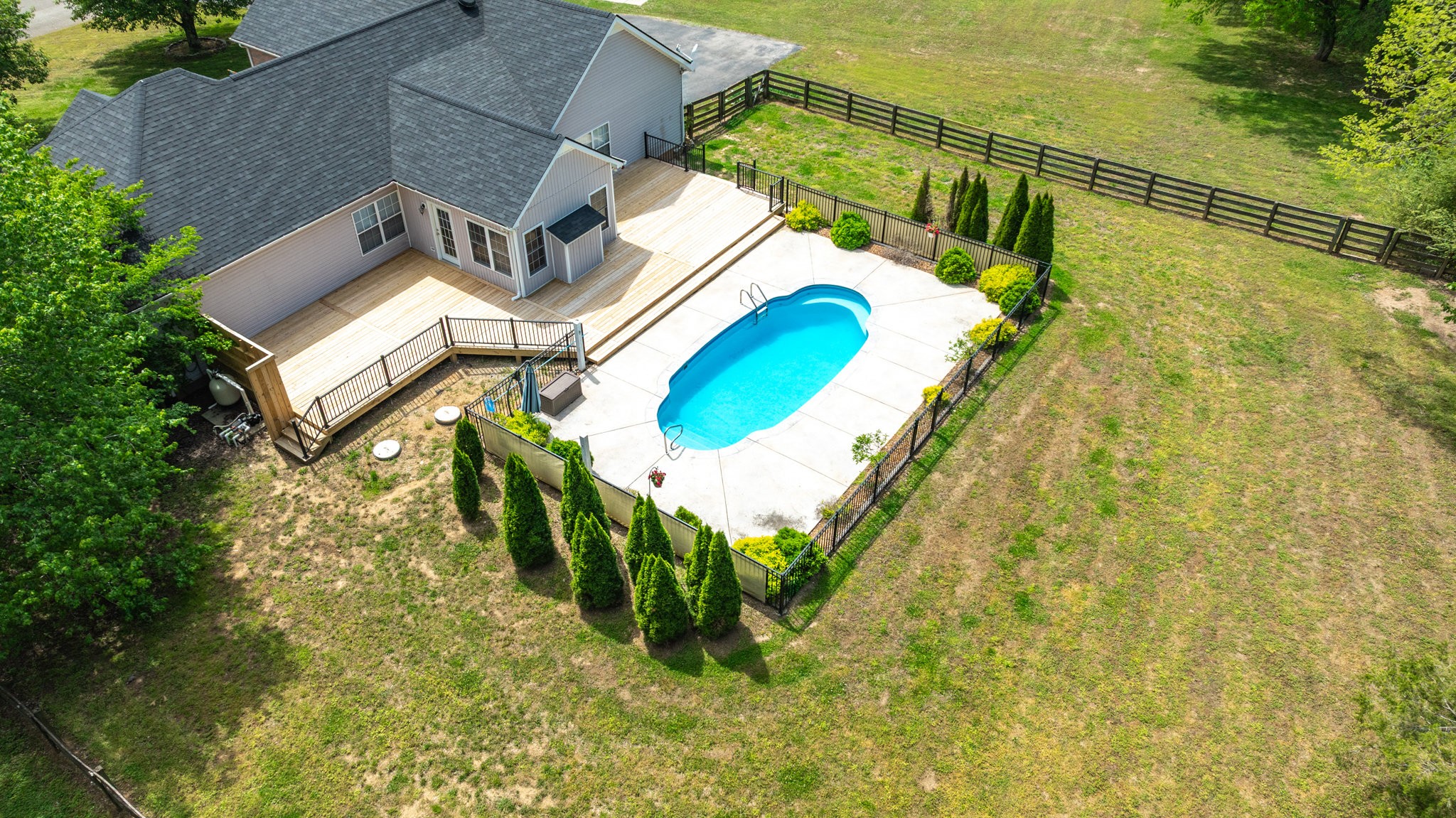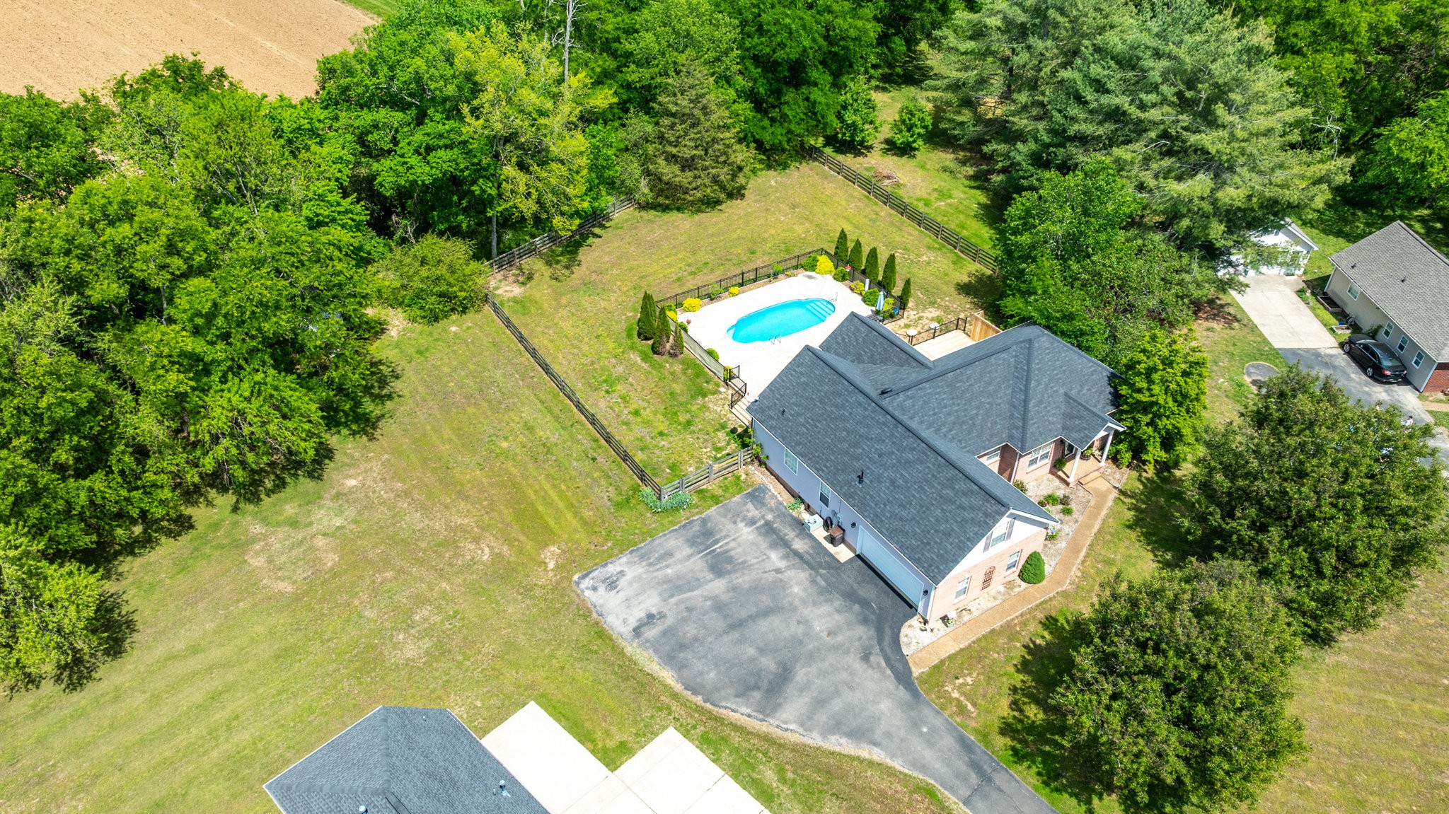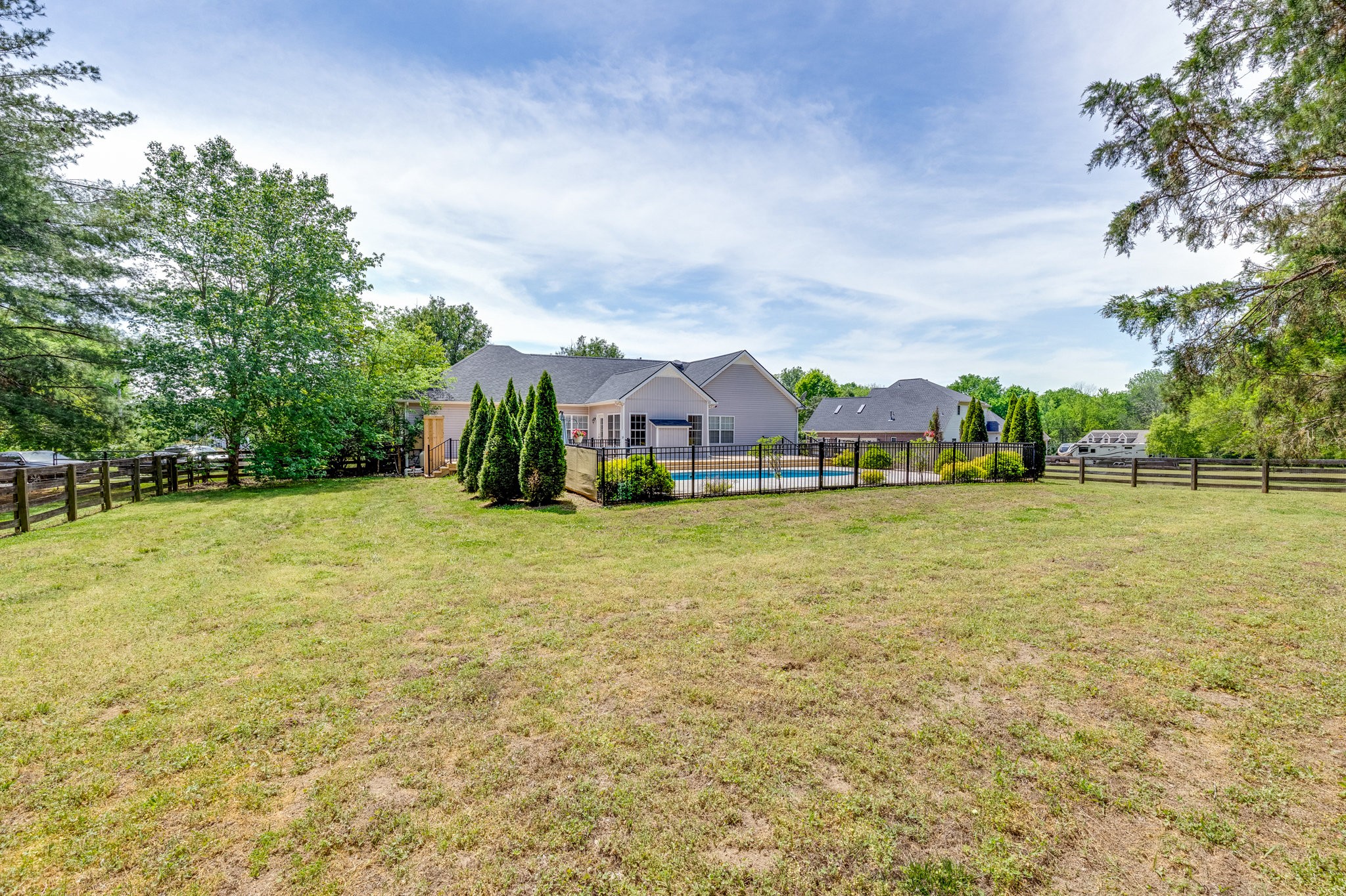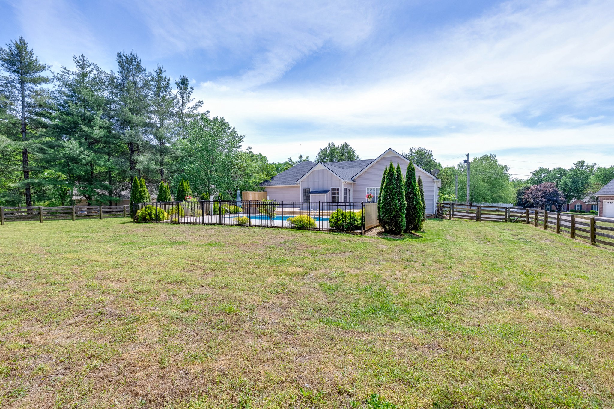 A Great Opportunity in sought after Lakeview Estates where homes rarely go on the market, an established neighborhood where most homes have at least an acre, convenient to I-840 or Saturn Parkway. With the true meaning of Open Concept Living this Ranch Home sits on a quiet Cul-de-Sac. For a Peace of Mind you will find the Following are BRAND NEW 2025 and Never Used: Kitchen Stainless Steel Appliances including Refrigerator-Carpet- Hot Water Heater-- New Board for Panel & Motor for Fiberglass Salt Water Pool-also Brand New 2025 Massive Deck & Aluminum Fence that expands almost the entire backside of Home. Timberline Roofing is 3 Years Old. Entertaining is effortless from the Living Area & Kitchen with Cathedral Ceiling-wrougt iron lighting fixtures-granite counters-where you ease on over to the Sun Room & Gas Fireplace and outside to your Oasis. The Salt Water Pool is surrounded by a beautiful stamp concrete decking with a relaxing sitting area at the deep end and a designated area for a Hammock, Solid Hardwood Oak Floors and Accented Slate Tile Floors in Kichen and Front Entry of home, Accented Walls and Kitchen Island, Large Primary Suite has a nice Walk In Closet from the Primary Bath and is opposite side of home from the 2 other Bedrooms, there is a 4th ROOM with CLOSET can be used as Flex Room, Laundry Room has New 2025 Cortec Flooring, Bonus Room has a heated & cooled side Storage Room, extra wide driveway. Neighborhood has their own stocked Lake that's used for fishing with a john boat, HOAs are extrodinary low, fenced backyard butts up to a large Farm/Venue, a wonderful Rural feeling but you are so convienient to Shopping in nearby The Crossings including Restaurants & Movie Theatre all within 5 mins. Storage Shed & pool equipment conveys. *****Steffen Cushing with OnPoint Mortgage will give $600 towards appraisal as well as $1000 credit towards lender costs for qualified buyer*****
