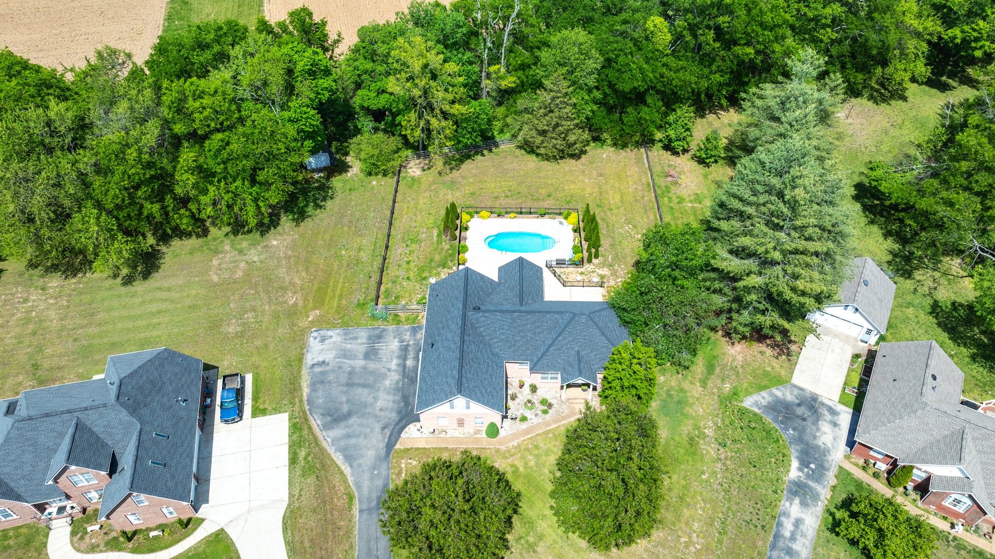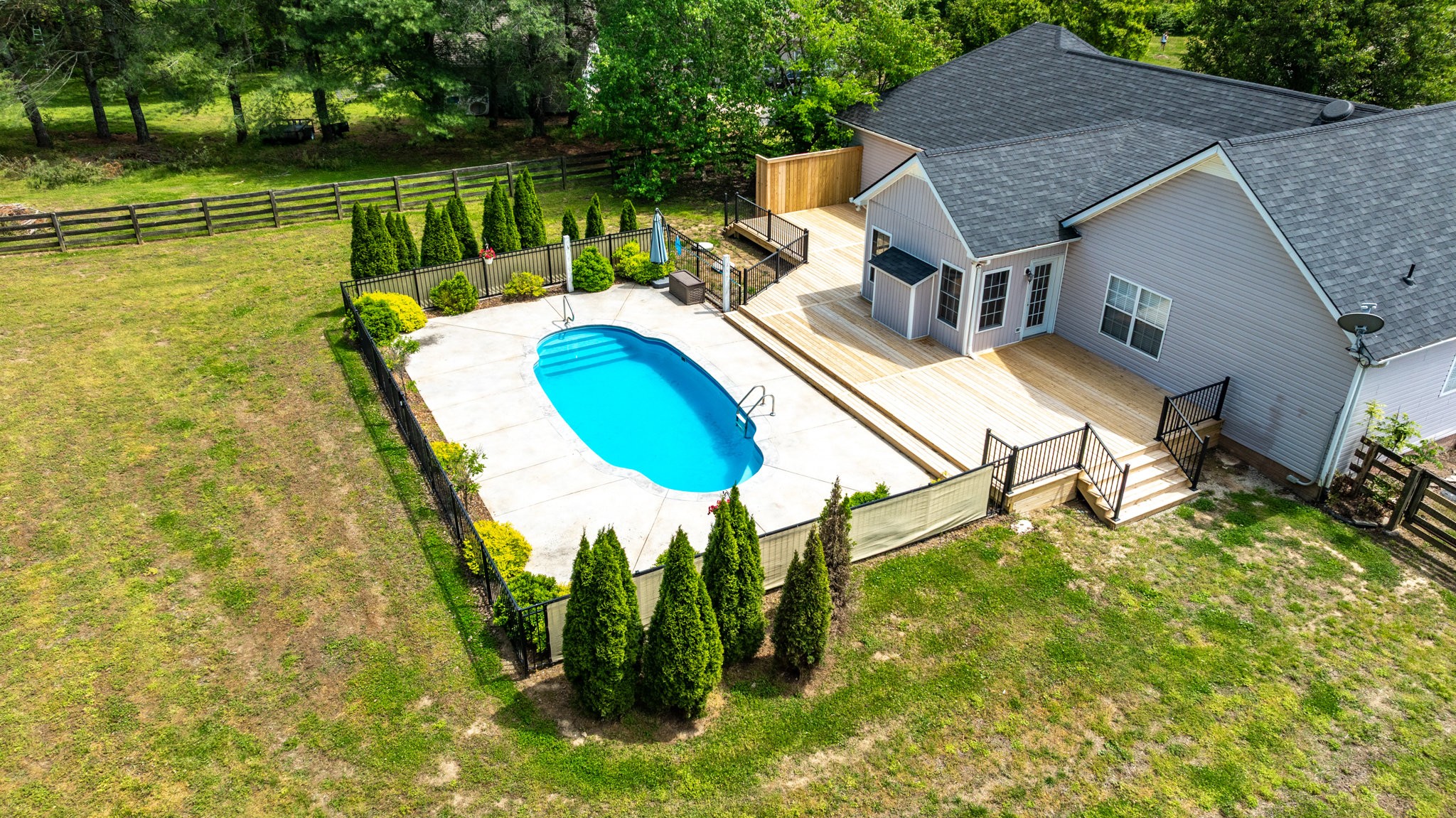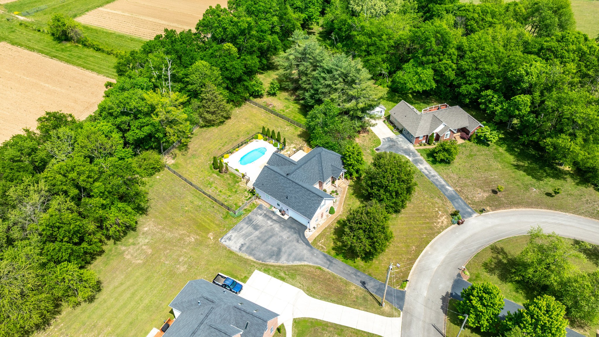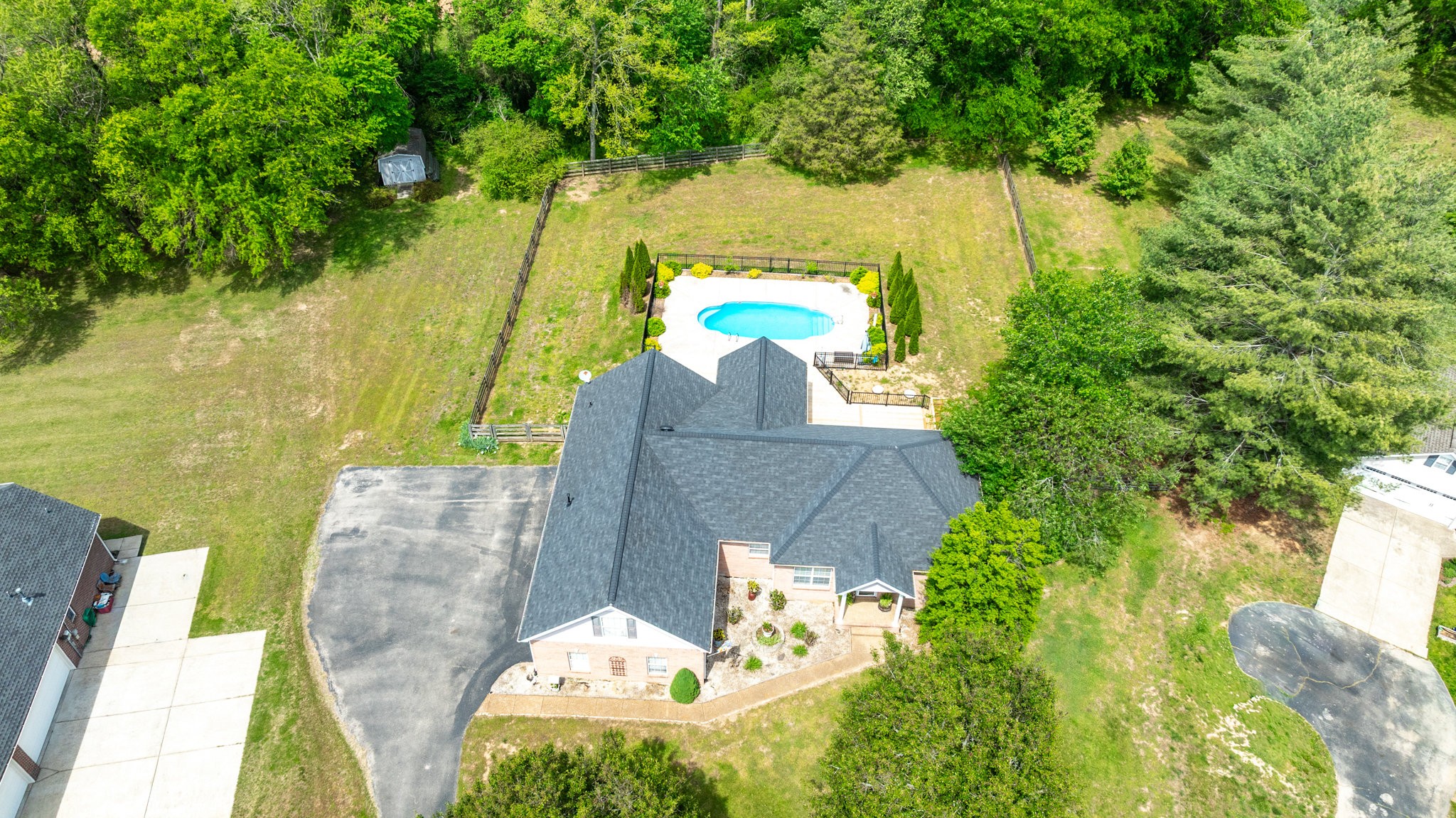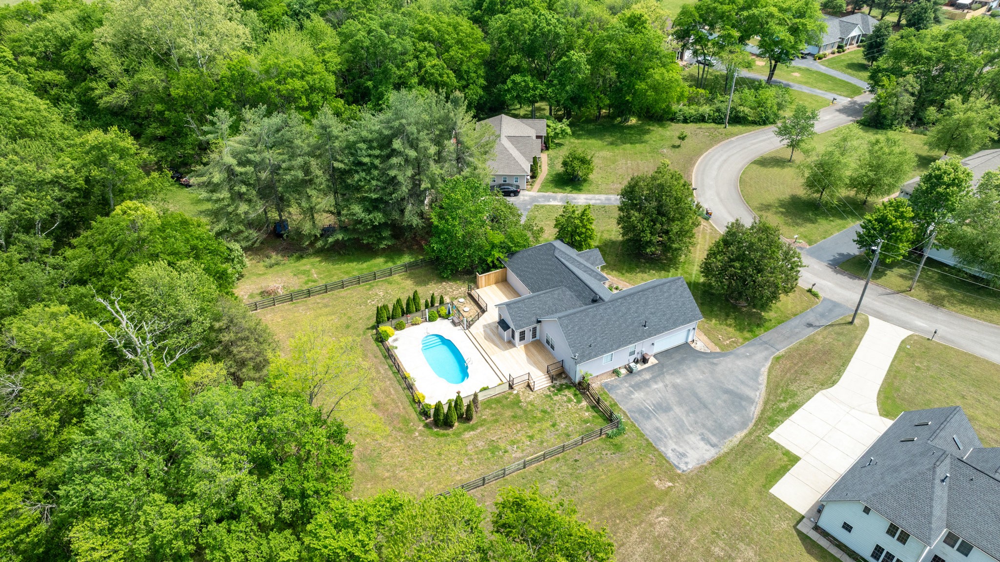 A Great Opportunity in sought after Lakeview Estates where homes rarely go on the market, an established neighborhood where most homes have at least an acre, convenient to I-840 or Saturn Parkway. With the true meaning of Open Concept Living this Ranch Home sits on a quiet Cul-de-Sac. For a Peace of Mind you will find the Following are BRAND NEW 2025 and Never Used: Kitchen Stainless Steel Appliances including Refrigerator-Carpet- Hot Water Heater-- New Board for Panel & Motor for Fiberglass Salt Water Pool-also Brand New 2025 Massive Deck & Aluminum Fence that expands almost the entire backside of Home. Timberline Roofing is 3 Years Old. Entertaining is effortless from the Living Area & Kitchen with Cathedral Ceiling-wrougt iron lighting fixtures-granite counters-where you ease on over to the Sun Room & Gas Fireplace and outside to your Oasis. The Salt Water Pool is surrounded by a beautiful stamp concrete decking with a relaxing sitting area at the deep end and a designated area for a Hammock, Solid Hardwood Oak Floors and Accented Slate Tile Floors in Kichen and Front Entry of home, Accented Walls and Kitchen Island, Large Primary Suite has a nice Walk In Closet from the Primary Bath and is opposite side of home from the 2 other Bedrooms, there is a 4th ROOM with CLOSET can be used as Flex Room, Laundry Room has New 2025 Cortec Flooring, Bonus Room has a heated & cooled side Storage Room, extra wide driveway. Neighborhood has their own stocked Lake that's used for fishing with a john boat, HOAs are extrodinary low, fenced backyard butts up to a large Farm/Venue, a wonderful Rural feeling but you are so convienient to Shopping in nearby The Crossings including Restaurants & Movie Theatre all within 5 mins. Storage Shed & pool equipment conveys. *****Steffen Cushing with OnPoint Mortgage will give $600 towards appraisal as well as $1000 credit towards lender costs for qualified buyer*****