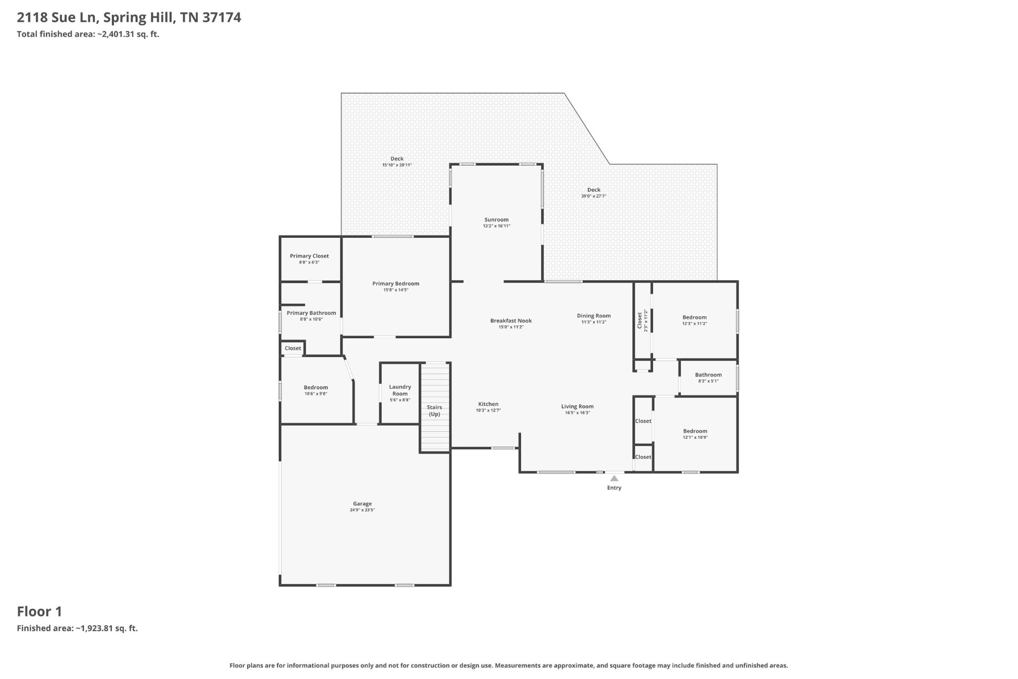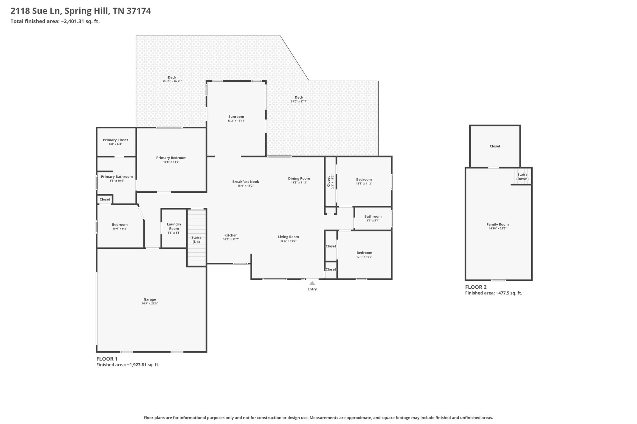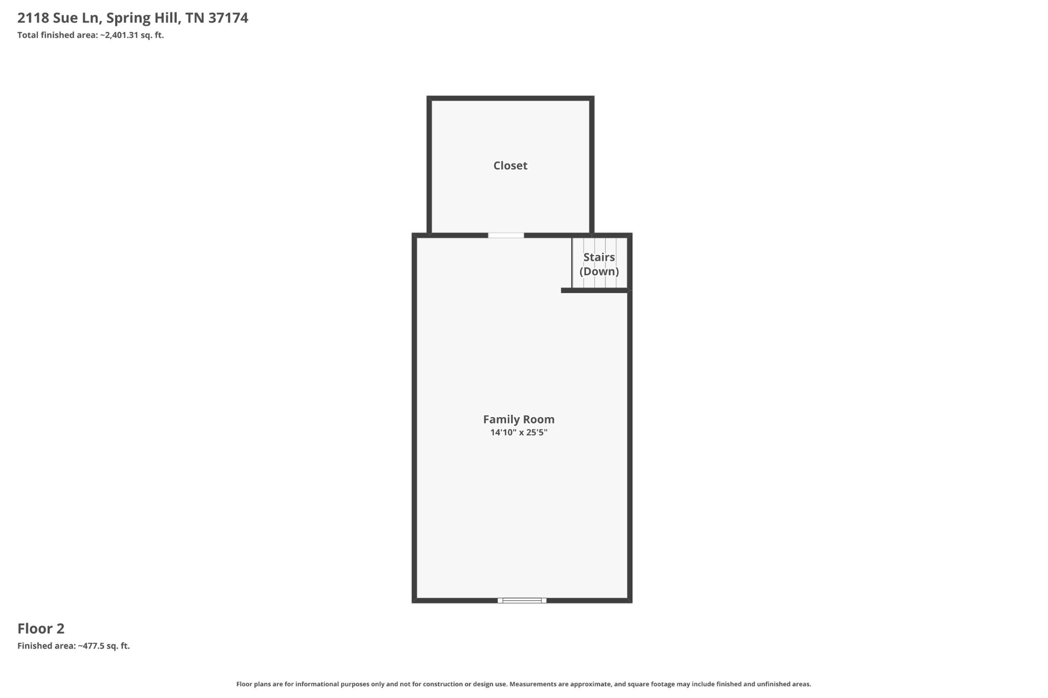 I-65 South and take Exit 74A to I-840, Exit 23 & Turn Left onto Carters Creek Pike, Left on Popes Chapel Rd (behind Huffs Market) go about 1.5 miles to Dr Robinson Rd, Turn Right onto Lakeview Rd, Turn Right onto Sue Lane. Another Route - take Saturn Pkwy