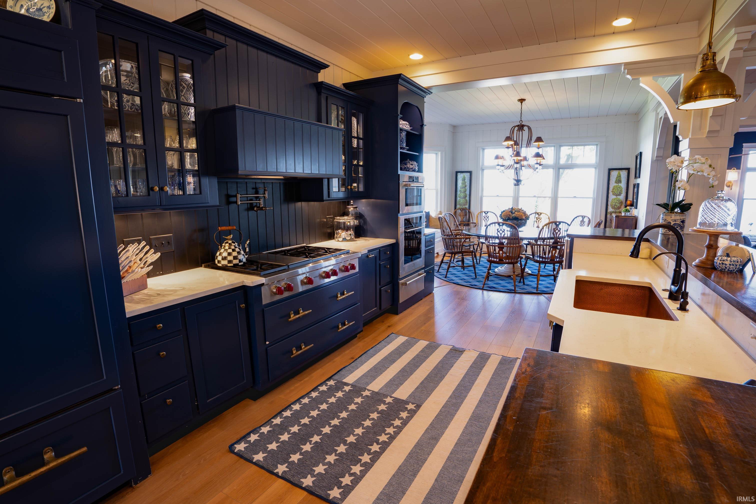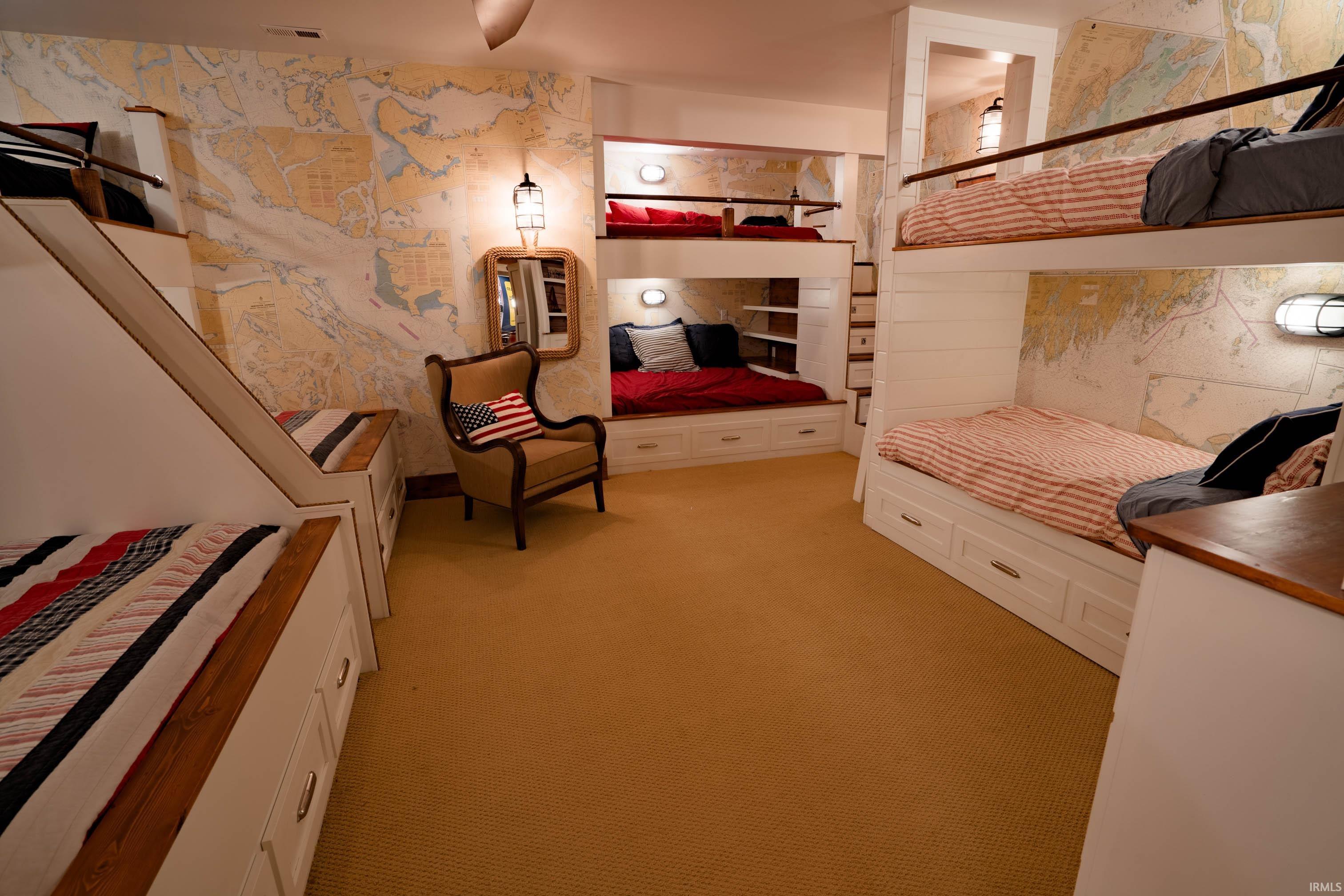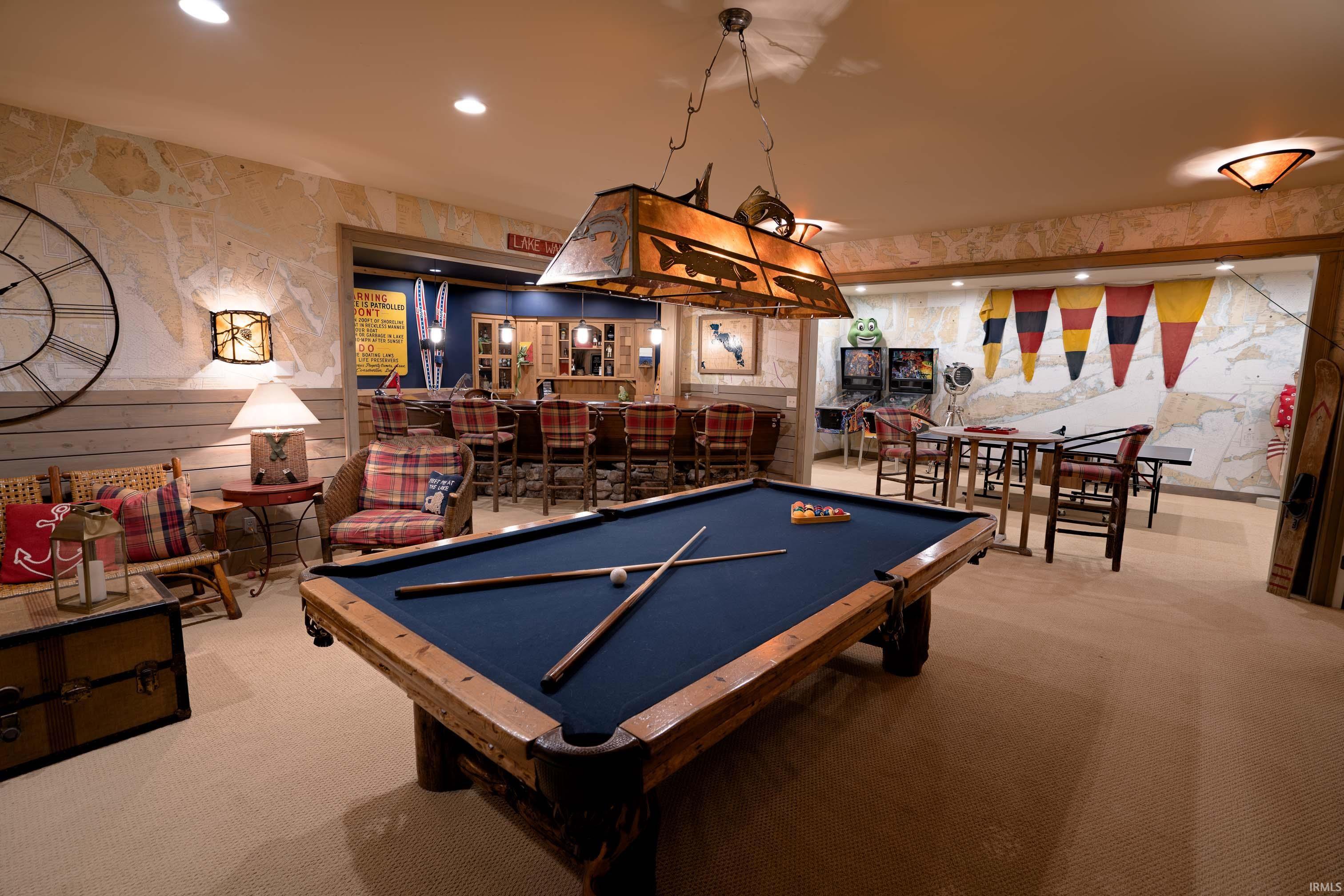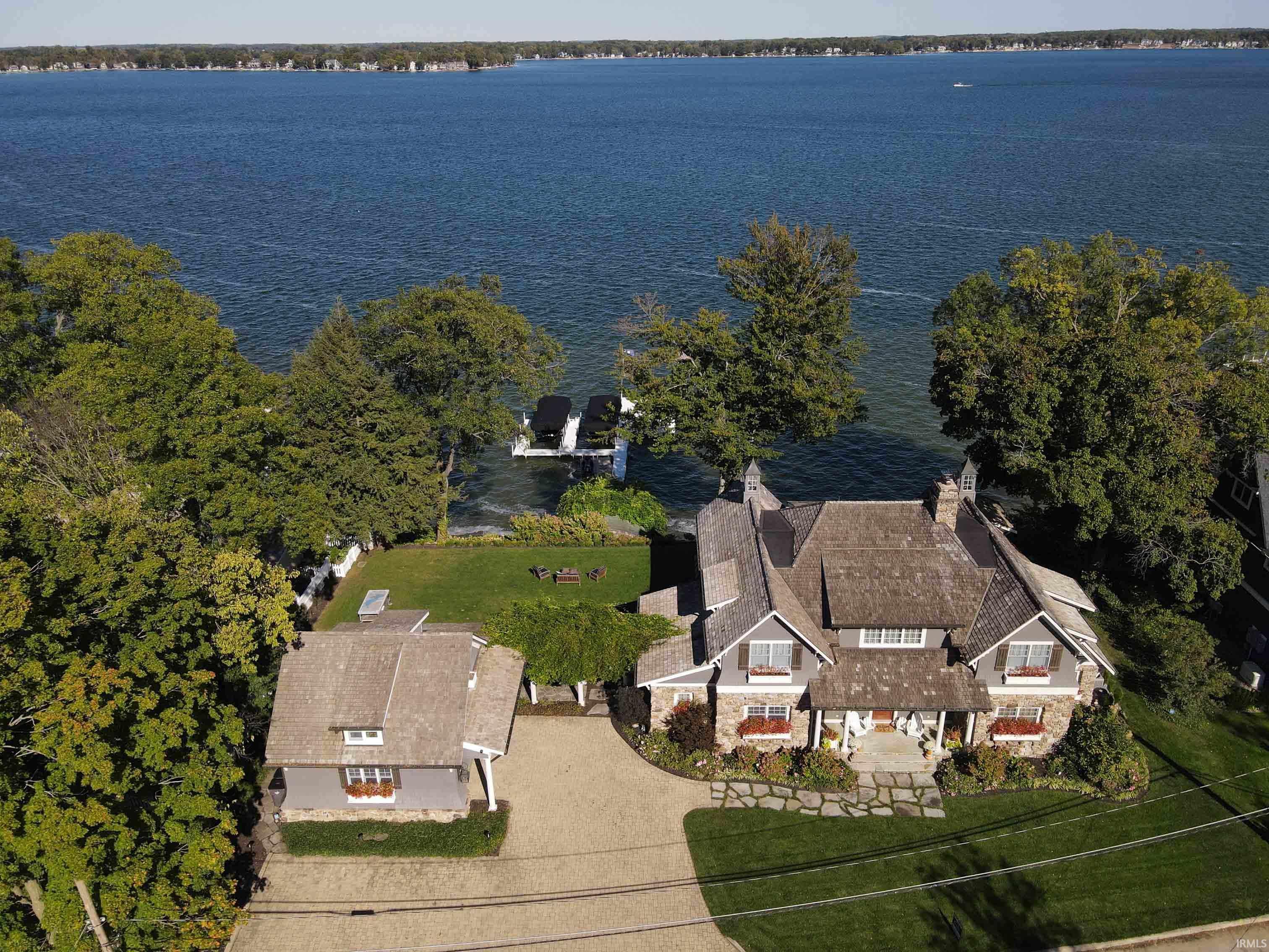 Welcome to Wawasee Pier 501 & 502 on coveted South Shore Drive! This stunning lakefront retreat offers expansive, breathtaking views with 155 feet of pristine shoreline, spanning over nearly 4 lakefront lots. This original Honeywell Estate is brimming with history and perfect for entertaining or relaxing. The home is loaded with high quality premium finishes and is being offered mostly furnished. With over 7,900 square foot plus a charming 3 bedroom, 1,242 square foot guest house, there is room for everyone. The spacious custom kitchen offers 2 Bosch dishwashers, 2 side-by-side custom front Sub Zero refrigerators with drawer freezers, Wolfe 6 burner gas convection stove with griddle and convection oven plus warming drawer and pot filler over the cooktop. The Viking microwave and Scotsman commercial ice maker round out this thoughtfully designed space. The main floor laundry room includes an additional refrigerator and freezer. The gorgeous wood floors, beautiful built-ins, gas and wood burning stone fireplace and multiple living areas are just the beginning. The basement is all kinds of fun with pool table, ping pong table, arcade machines, custom boat bar, including fridge, wine fridge and ice maker, large living room and huge bedroom with multiple built-in bunks. If you have a bit of work to catch up on, settle into the cozy charm of the wood-paneled office—complete with a full-sized safe for peace of mind. The exterior offers incredible views with many areas for entertaining and relaxing, plus a 29 section pier sitting atop beautiful sandy swimming. Don't miss the beautiful lakeside grotto with storage and bathroom. Located just minutes from town, enjoy the best of both worlds with easy access to restaurants, shopping, and local amenities—all while savoring the serenity of lakeside living. Wawasee is Indiana's largest natural, full sport lake offering marinas, restaurants, skiing, fishing, boating and more.