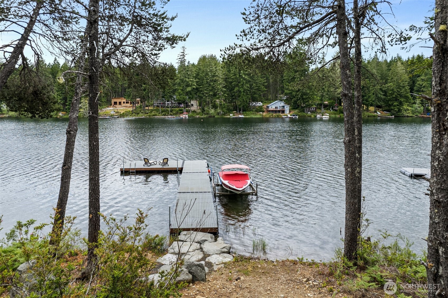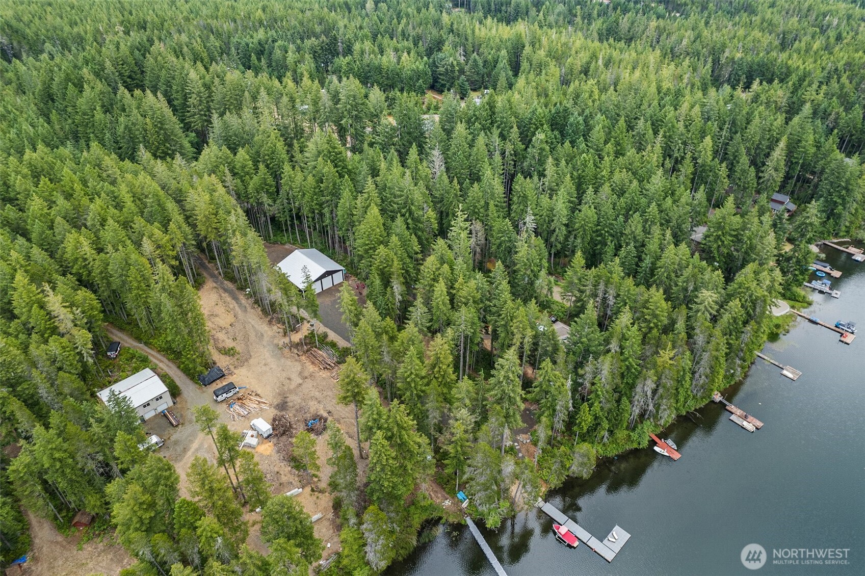 Exceptional Lakefront Property--A Legacy Investment! Embrace the beauty of Tee Lake w/this stunning 1.4 acre lakefront property, perfectly positioned for your dream home w/breathtaking mtn. and lake views. A massive 2,793 sq. ft. garage/shop (49'x57') features 6, 15' drive-thru doors, fiber optics, heaters, security cameras, & dual PUD electrical panels, The septic supports up to a 4 bed home + an ADU in the garage. The expansive 60'x28' dock was built in 2022. The thriving community of full-time residents & newly built homes ensures lasting value. Enjoy boating, water skiing, hiking & more in this outdoor paradise. This property is truly a legacy investment where memories are made. A rare opportunity.