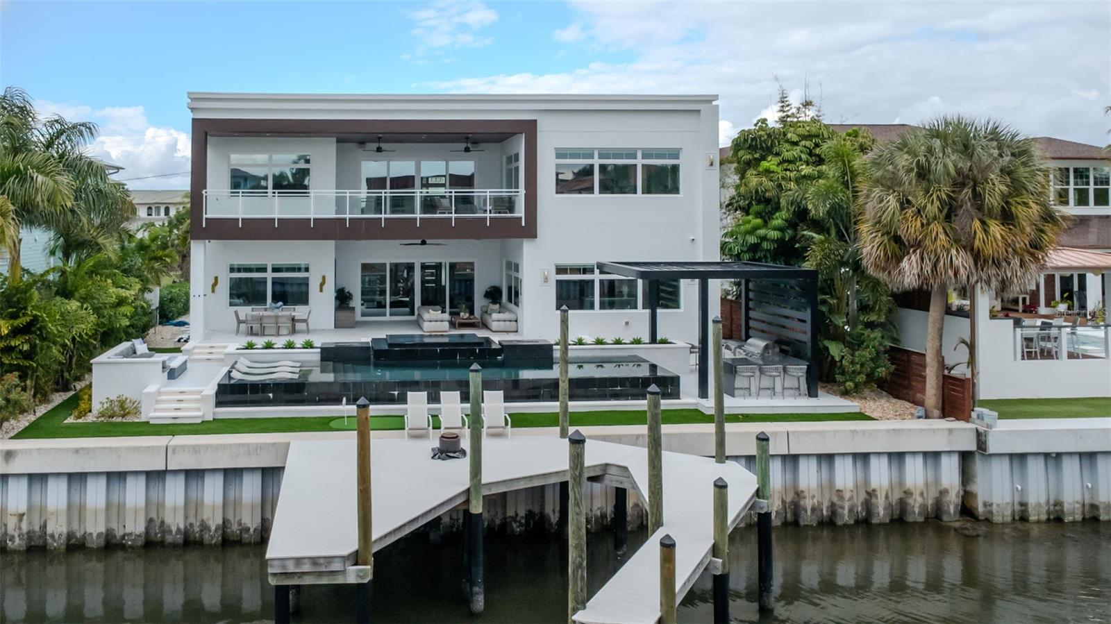 This one-of-a-kind waterfront retreat in South Tampa offers the ultimate blend of modern luxury and thoughtful accessibility. Situated on a .23-acre cul-de-sac lot, this custom 2-story all-block residence is built on pilings with impact windows and doors for peace of mind.